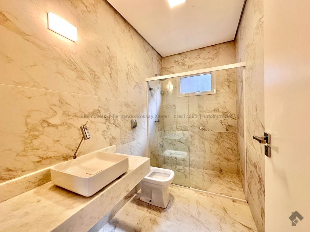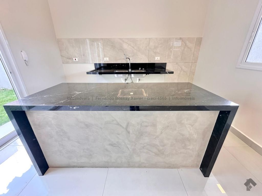 Excelente casa com 1 suíte, 2 quartos, banheiro social, sala 2 ambientes integrada com cozinha, lavabo, ampla área de serviço, varanda gourmet, espaço para piscina e 2 vagas de garagem. Imóvel com fino acabamento, possui pisos em porcelanato, janelas e esquadrias em alumínio da Alumix, louças e metais Deca e Docol.