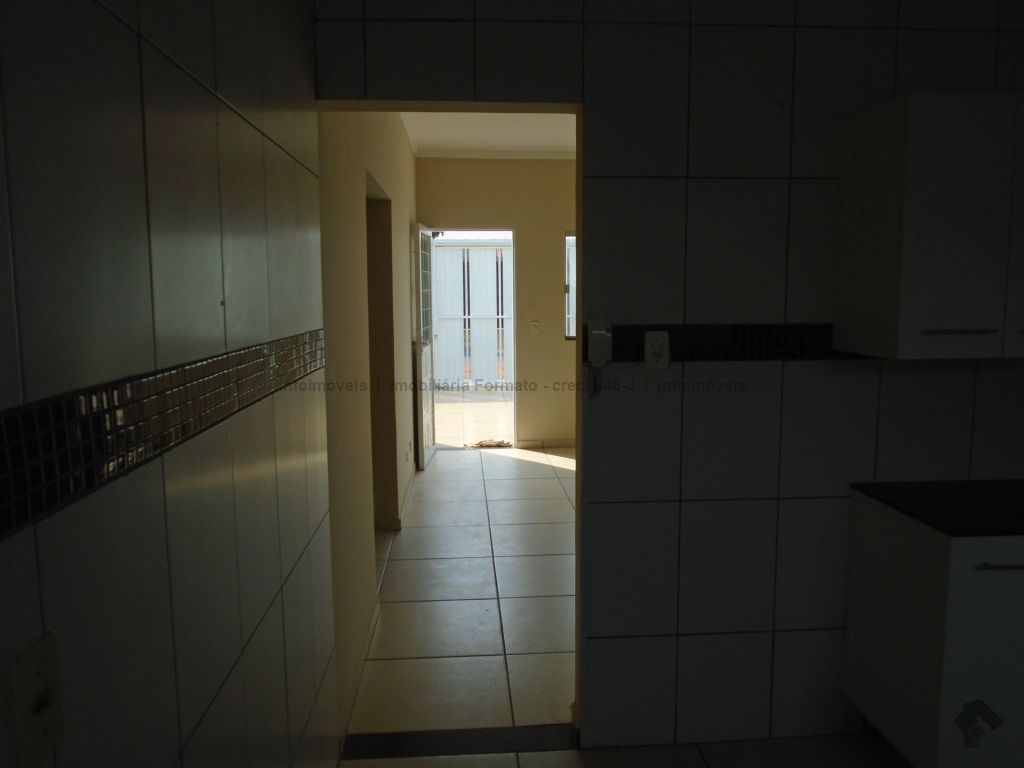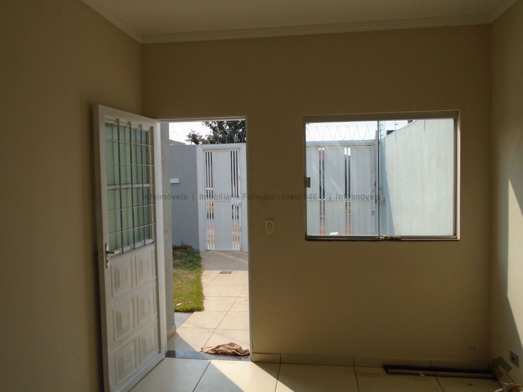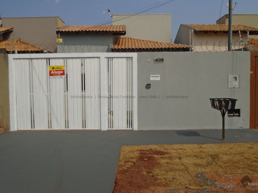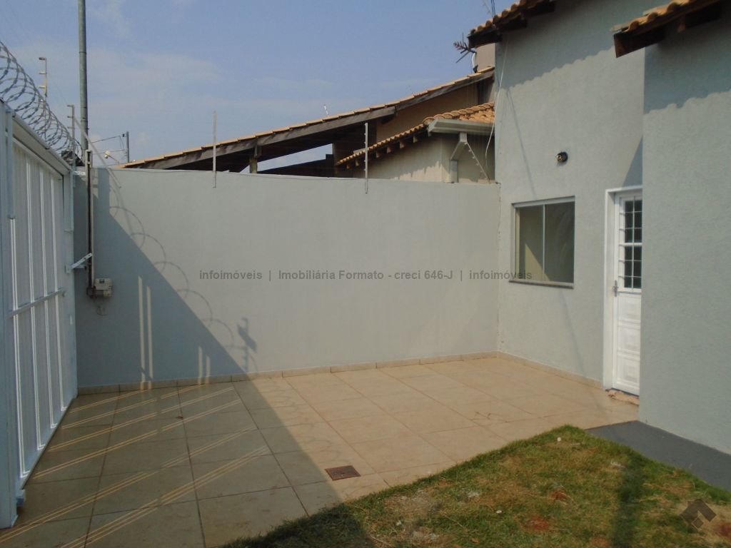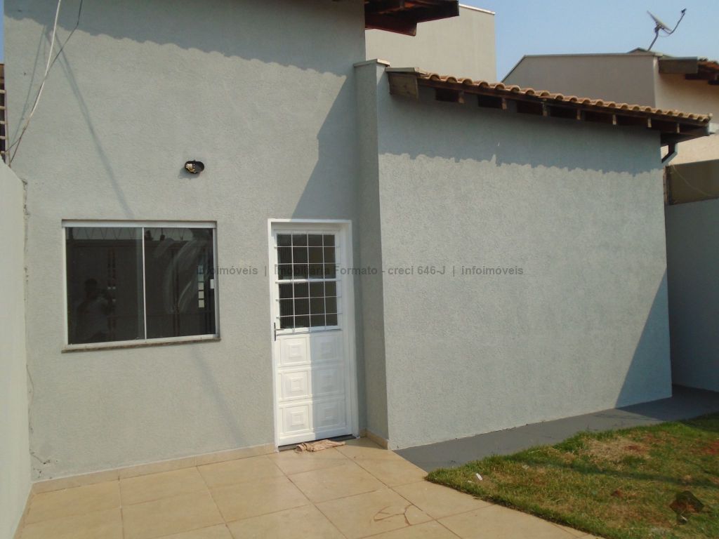 Casa residencial no bairro Rita Vieira. Constituída de sala de estar, 02 dormitórios, cozinha com armários, WC social com box e gabinete, área de serviço sem cobertura, garagem sem cobertura para 01 veículo.