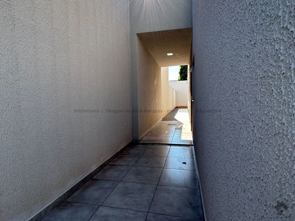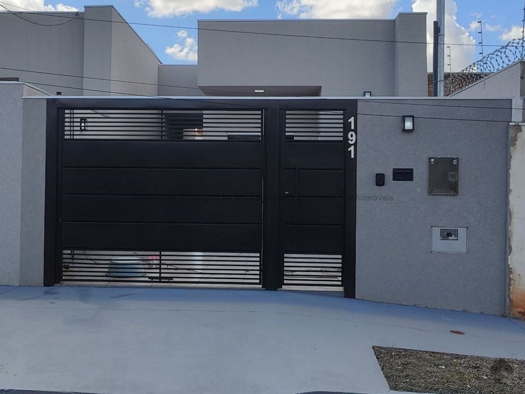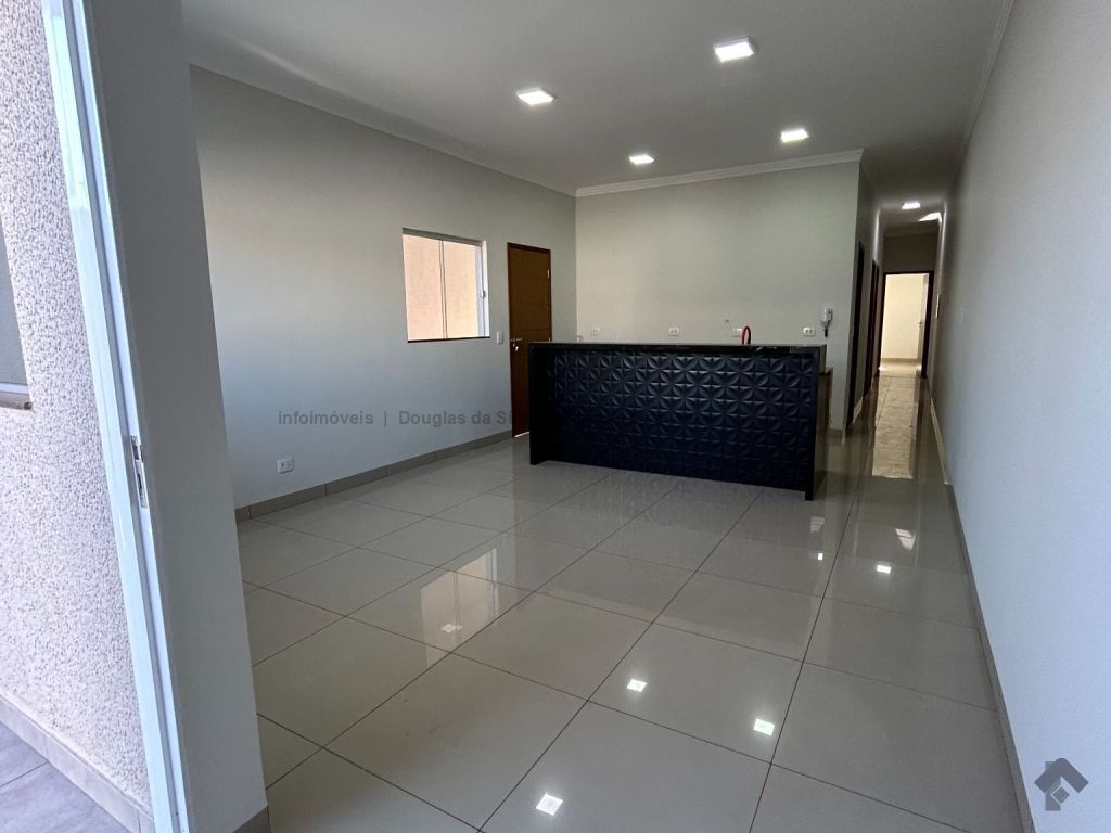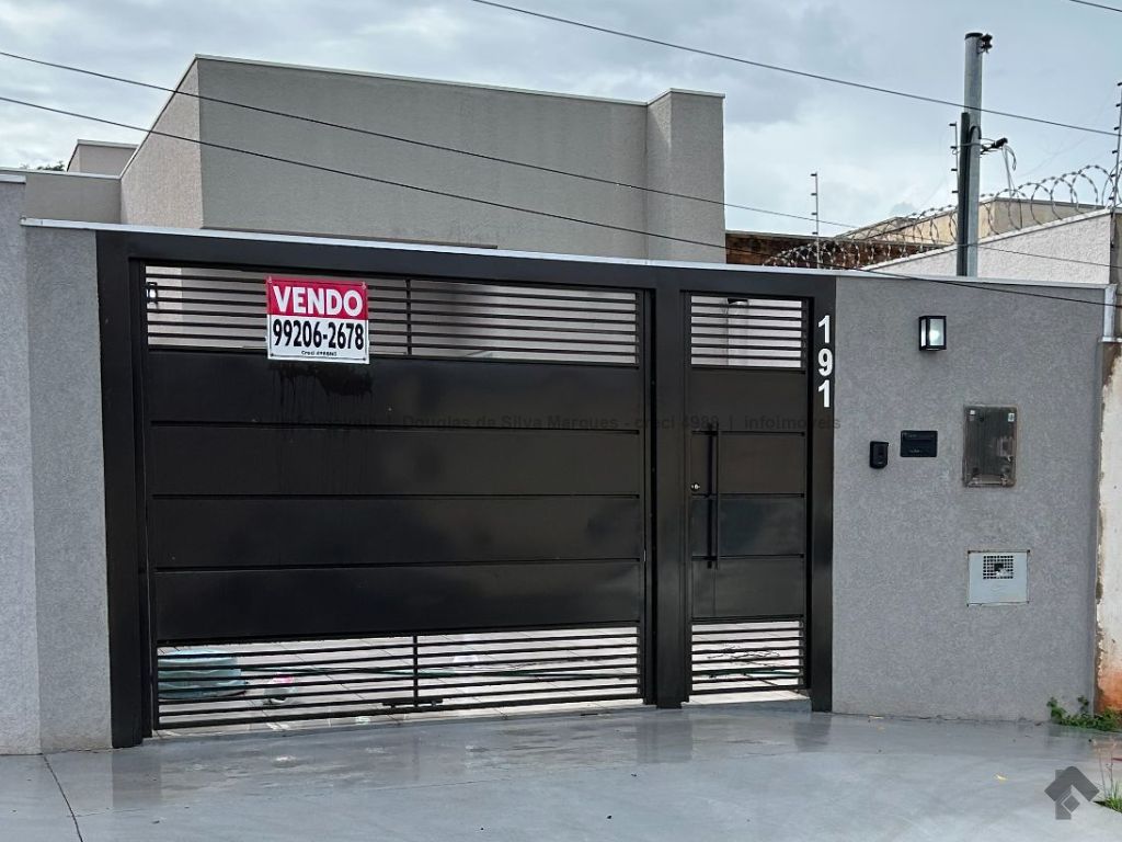 Casa nova, uma suíte mais dois quartos, cozinha americana, portão de elevação, piso porcelanato, laje, pronta para morar.