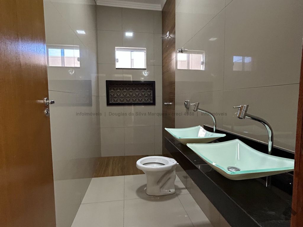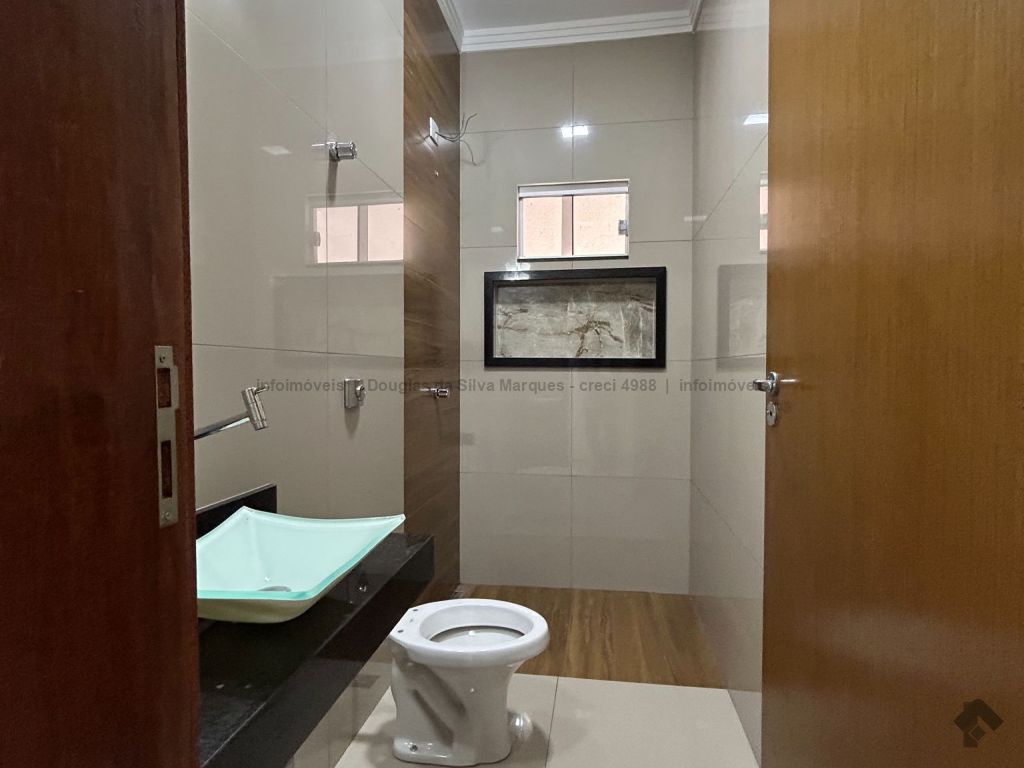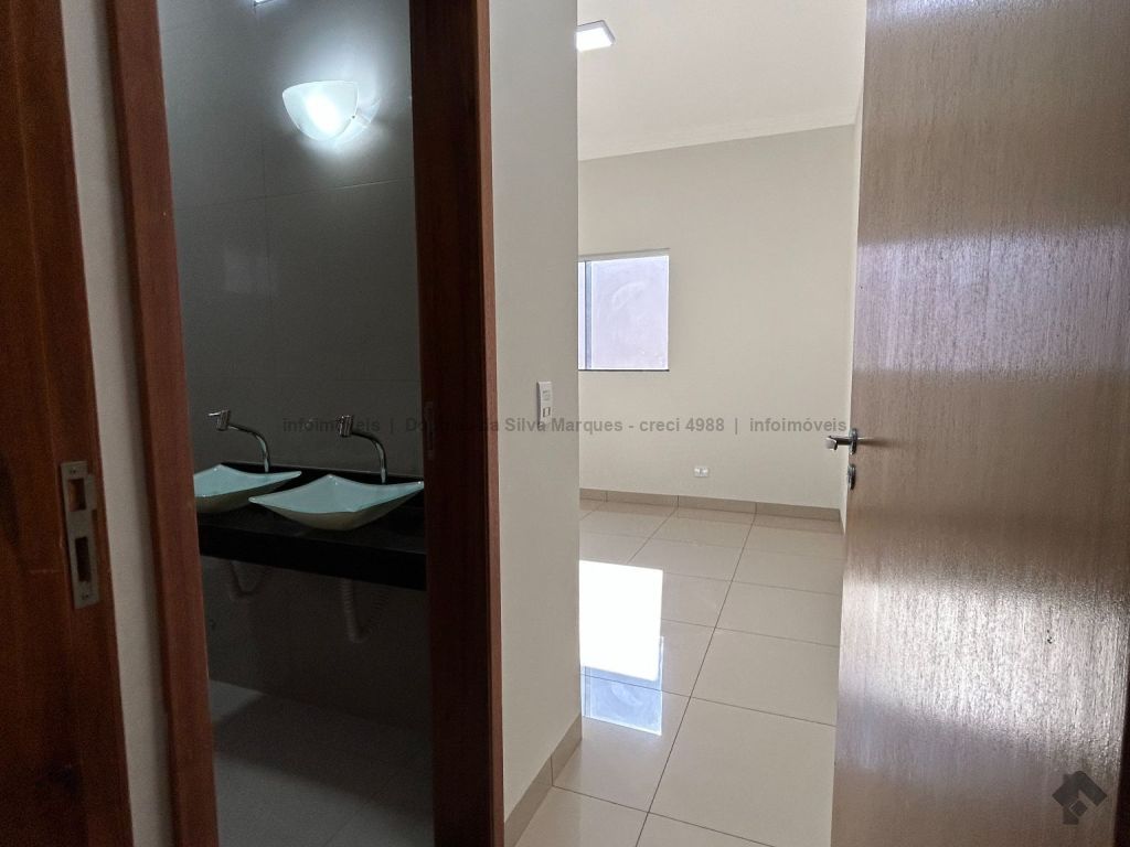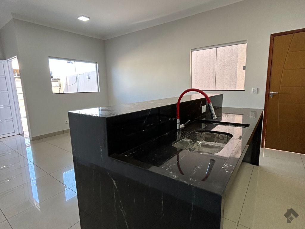 Casa nova, uma suíte mais dois quartos, cozinha americana, portão de elevação, piso porcelanato, laje, pronta para morar.