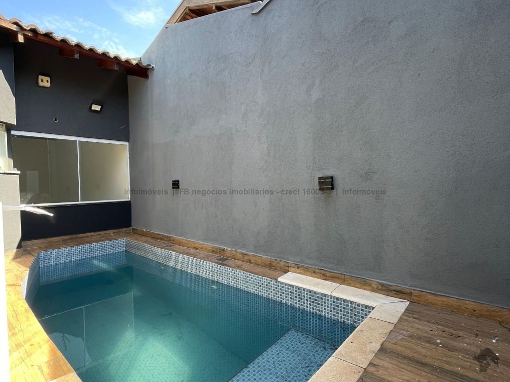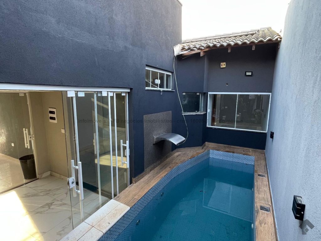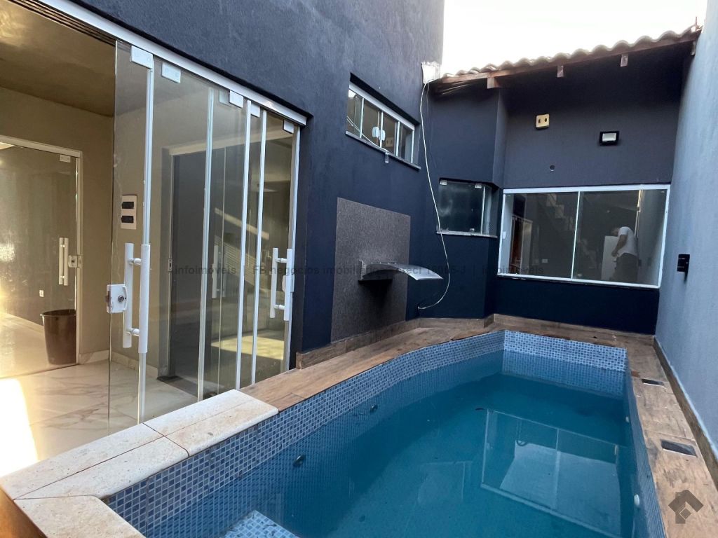 Casa térrea linda com 03 quartos, sendo 01 com suíte, escritório, hall de entrada, sala de estar e TV, cozinha com armários planejados, gourmet com churrasqueira, WC social, piscina aquecida, 01 vaga de garagem, energia fotovoltaica, terraço com vista para o pôr do sol.