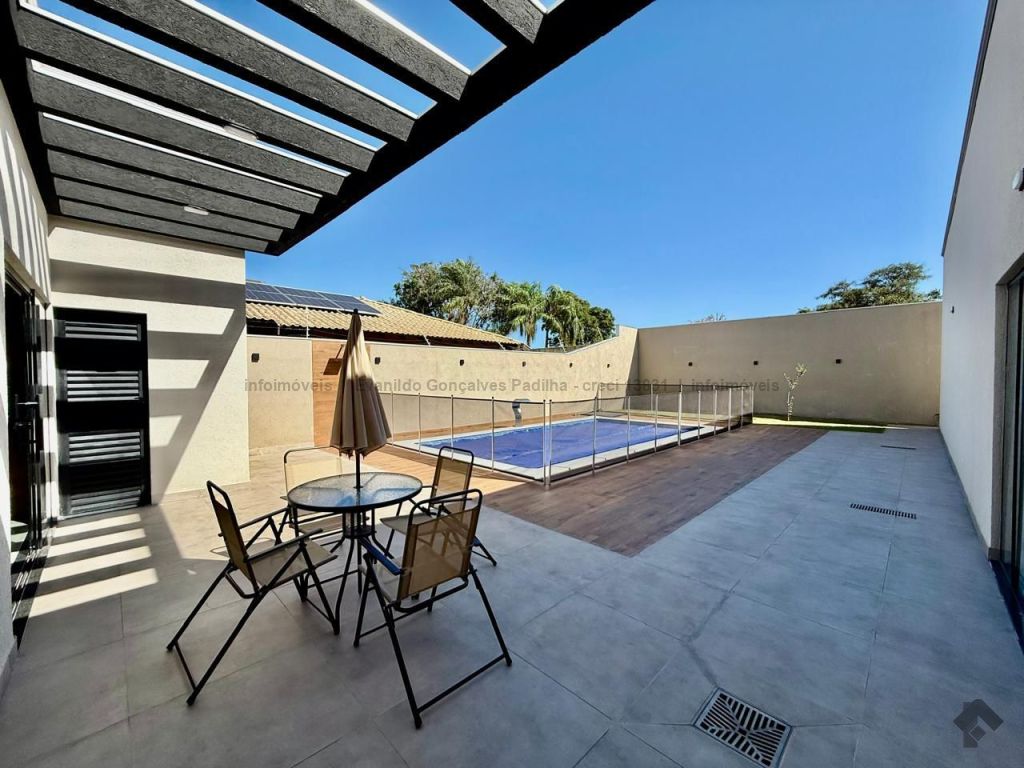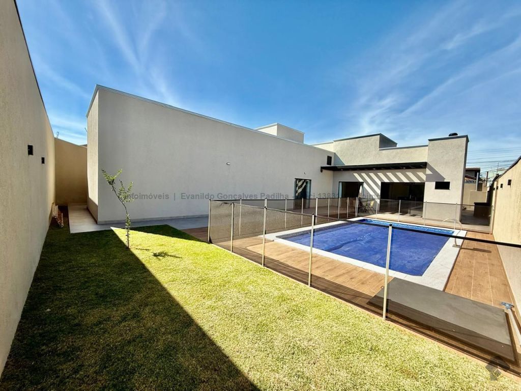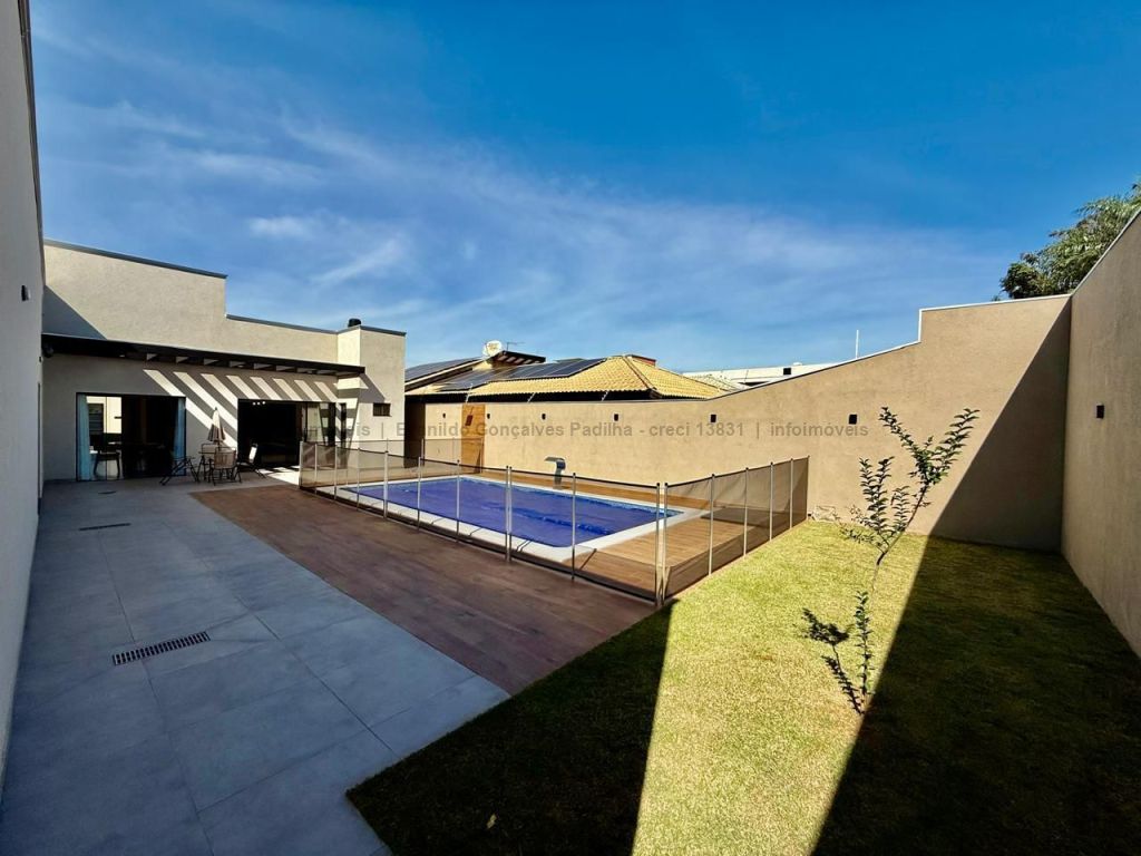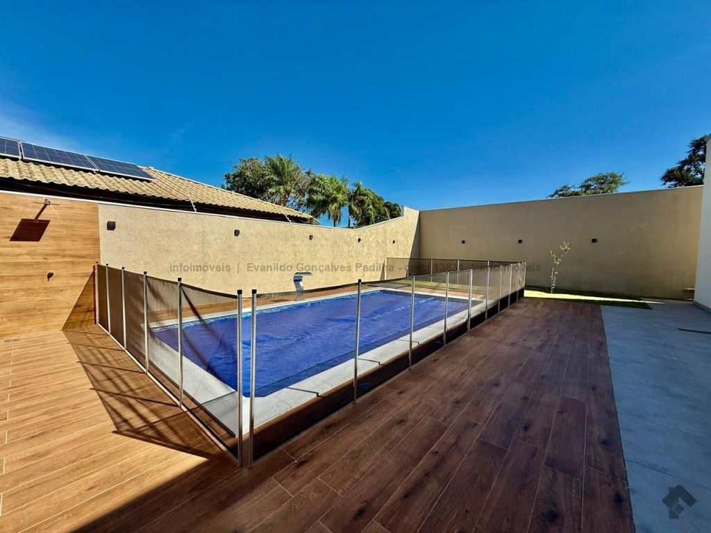 Maravilhosa casa térrea com 3 suítes e piscina no Rita Vieira. Área total de 450 m², área construída de 200 m² e piscina medindo 3,5 x 7 m, totalizando 24,5 m². Descritivo: 3 suítes, incluindo uma com closet espaçoso, escritório, sala de estar ampla com pé direito alto, ideal para 2 ambientes, cozinha gourmet integrada, 2 lavabos, lavanderia fechada e reservada, piscina aquecida e energia fotovoltaica.