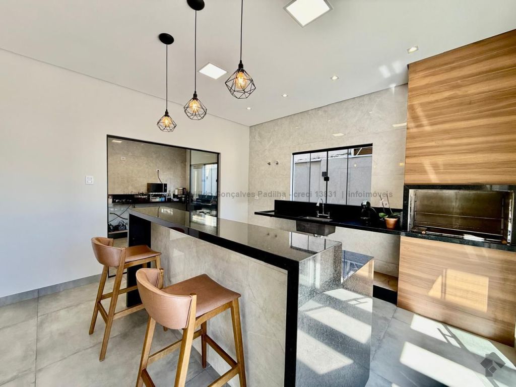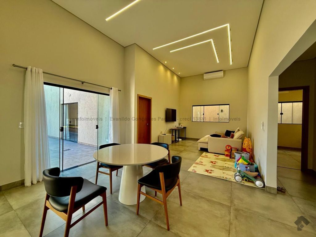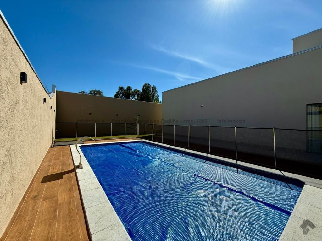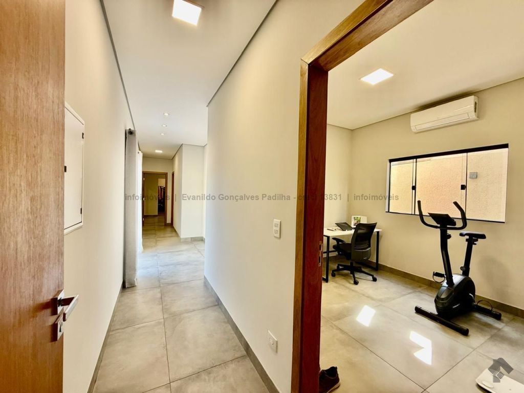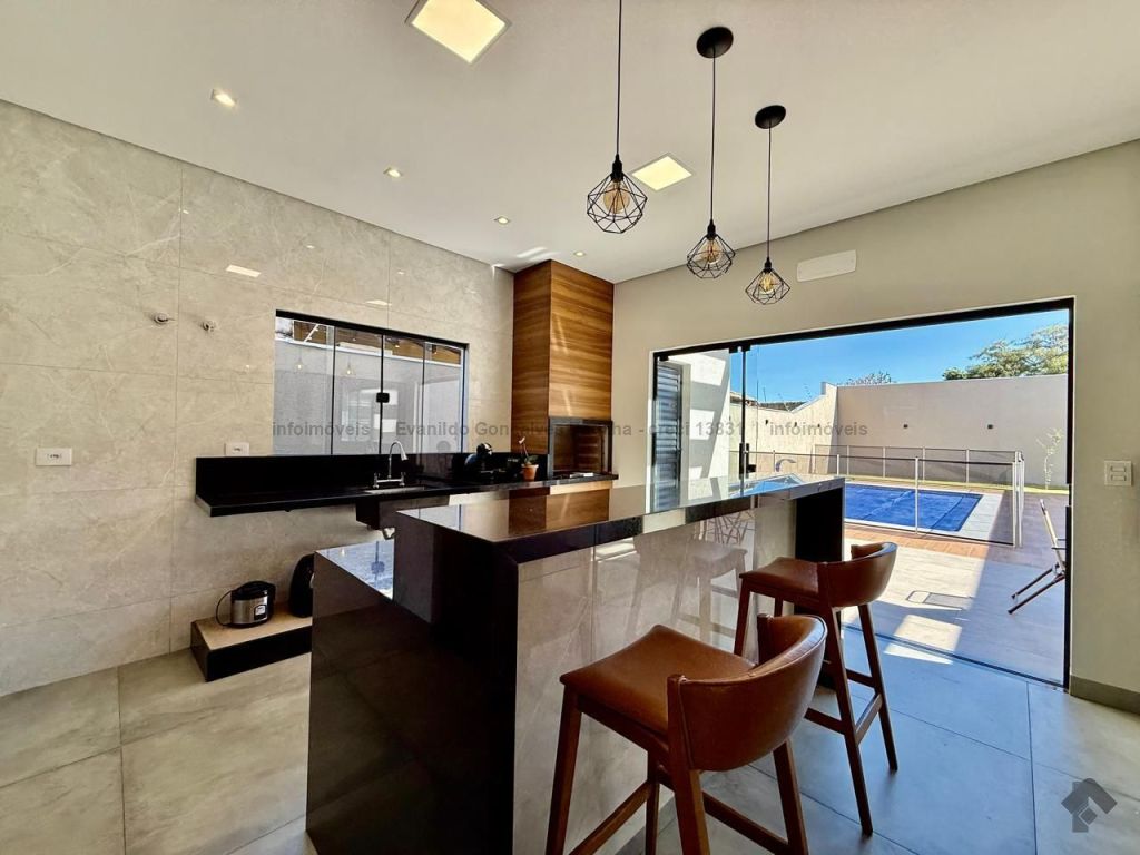 Maravilhosa casa térrea com 3 suítes e piscina no Rita Vieira. Área total de 450 m², área construída de 200 m² e piscina medindo 3,5 x 7 m, totalizando 24,5 m². Descritivo: 3 suítes, incluindo uma com closet espaçoso, escritório, sala de estar ampla com pé direito alto, ideal para 2 ambientes, cozinha gourmet integrada, 2 lavabos, lavanderia fechada e reservada, piscina aquecida e energia fotovoltaica.