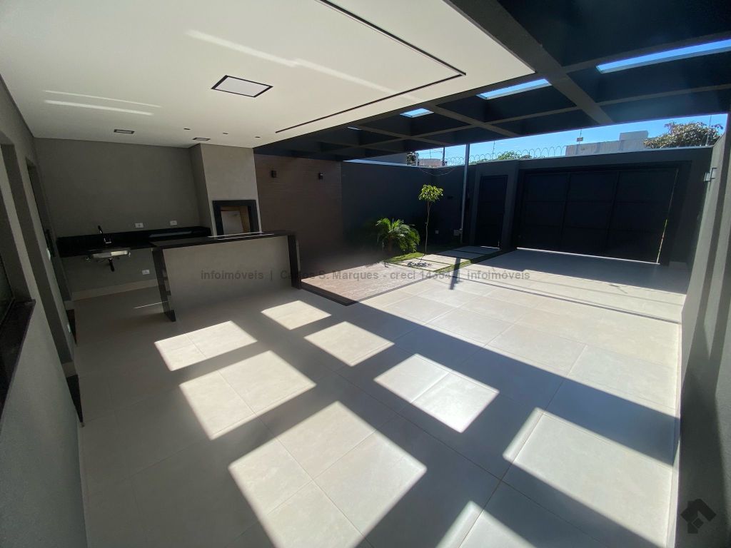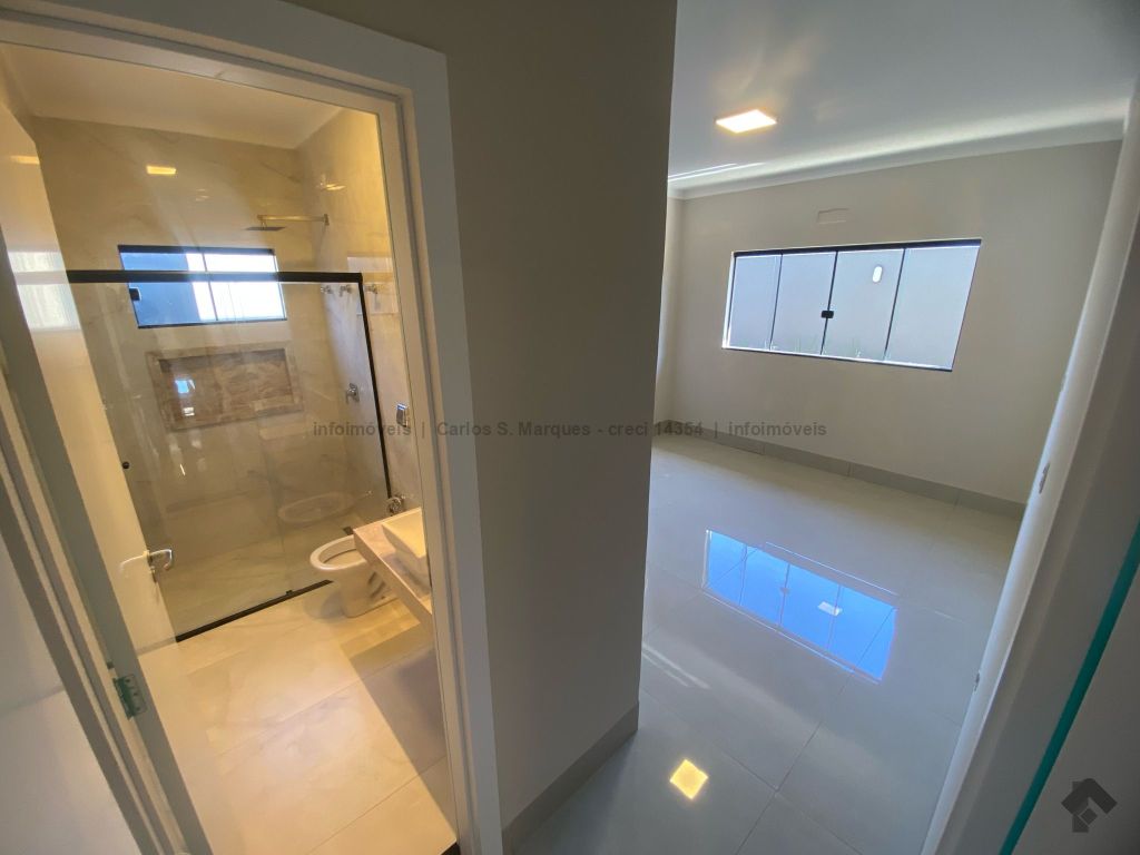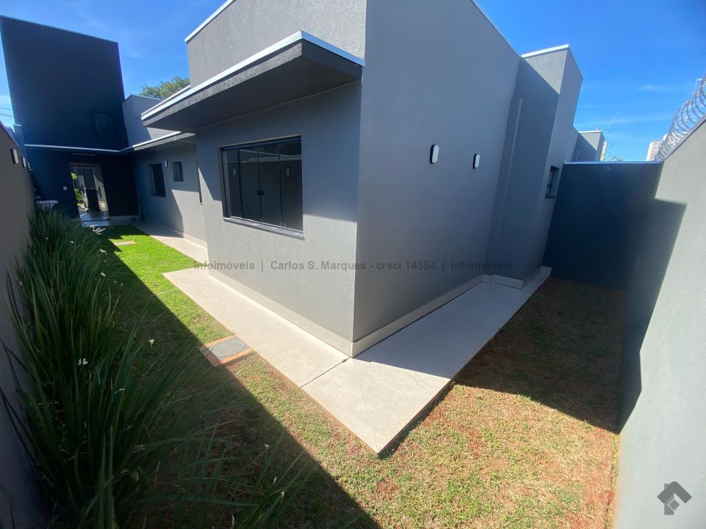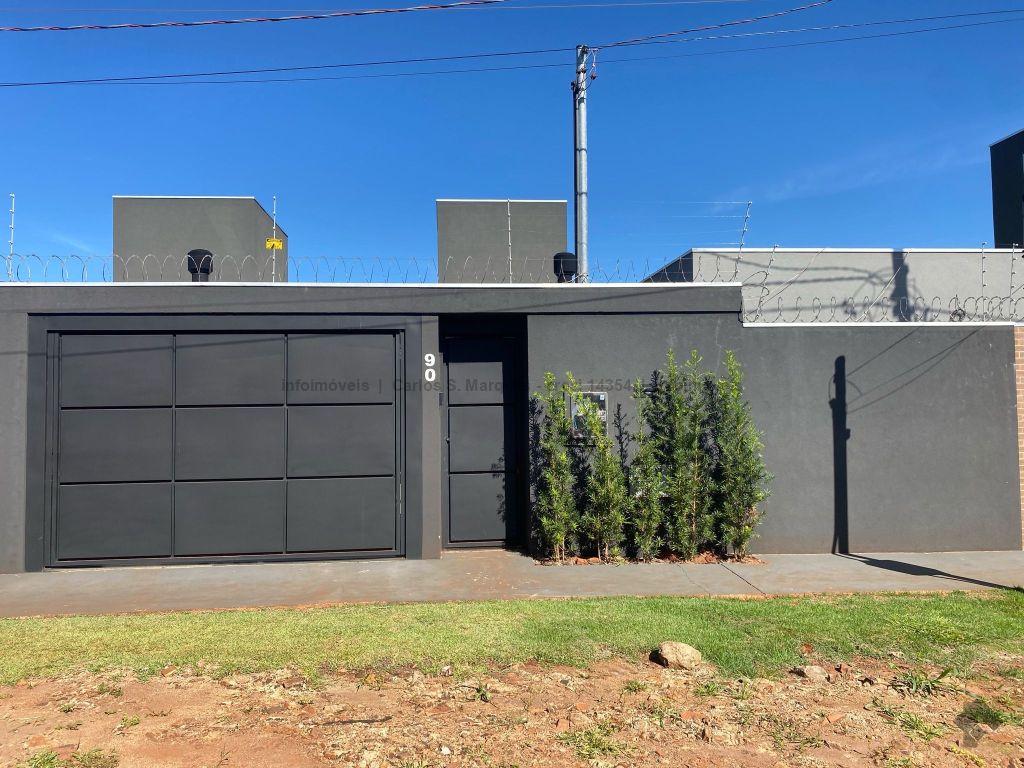 Casa conta com garagem para 3 carros, sala ampla, cozinha, área de serviço coberta, WC social, 2 quartos, 1 suíte. Imóvel rico em porcelanato e detalhes.