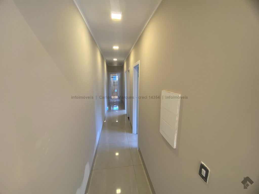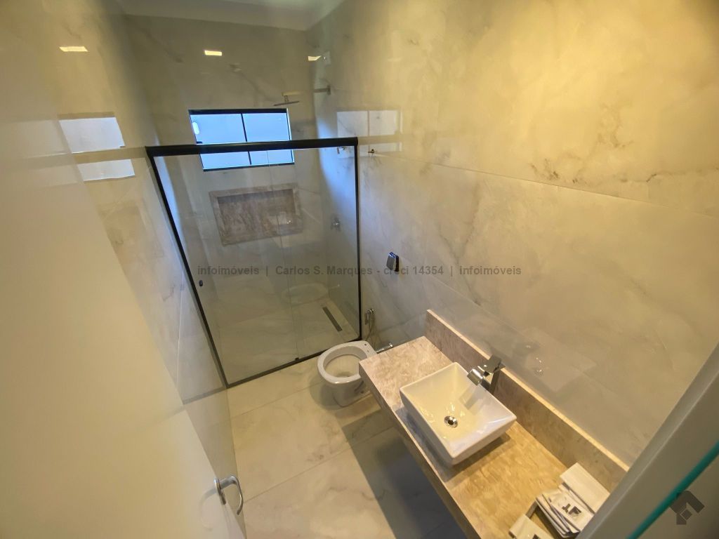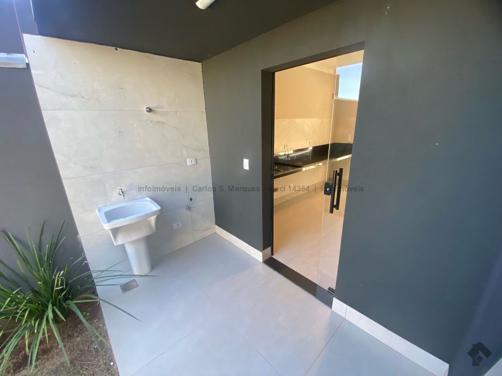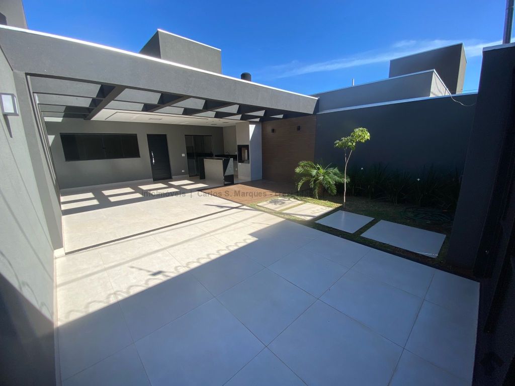 Casa conta com garagem para 3 carros, sala ampla, cozinha, área de serviço coberta, WC social, 2 quartos, 1 suíte. Imóvel rico em porcelanato e detalhes.