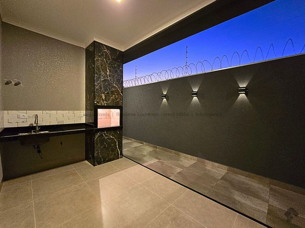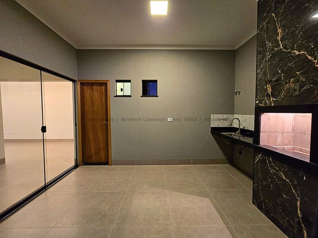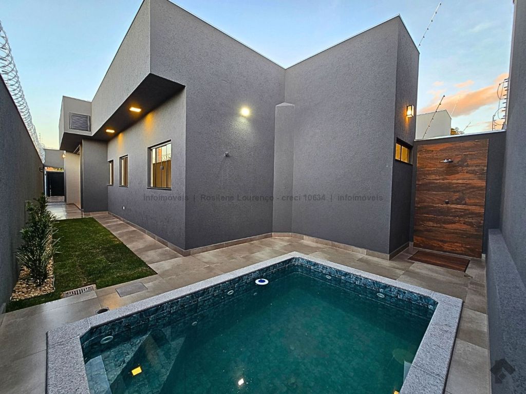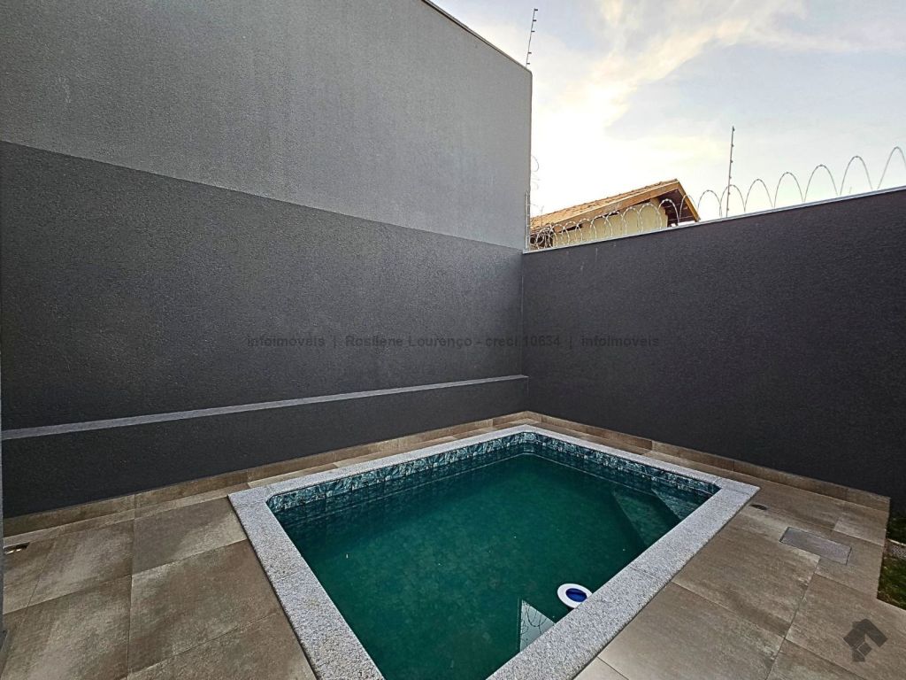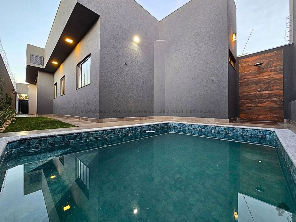 Linda casa térrea de 3 quartos, sendo 1 suíte (banheiro com box), 2 vagas de garagem, banheiro social com box, sala ampla 2 ambientes com pé direito alto e blindex, cozinha revestida com pia em mármore e integração com o gourmet. Espaço gourmet completo com churrasqueira e pia, lavabo externo, piscina com prainha e preparação para aquecimento, lavanderia. Imóvel com preparação para aquecimento nas torneiras e chuveiros.