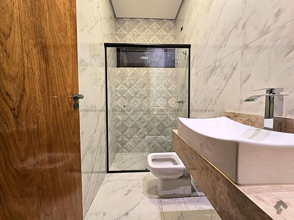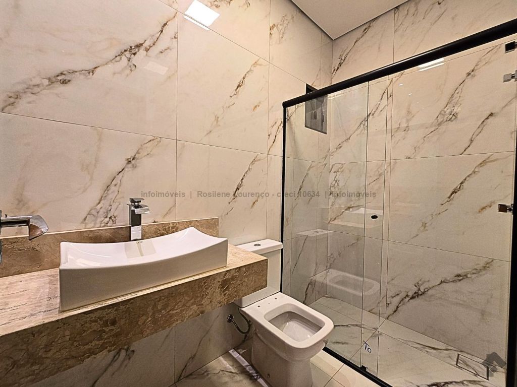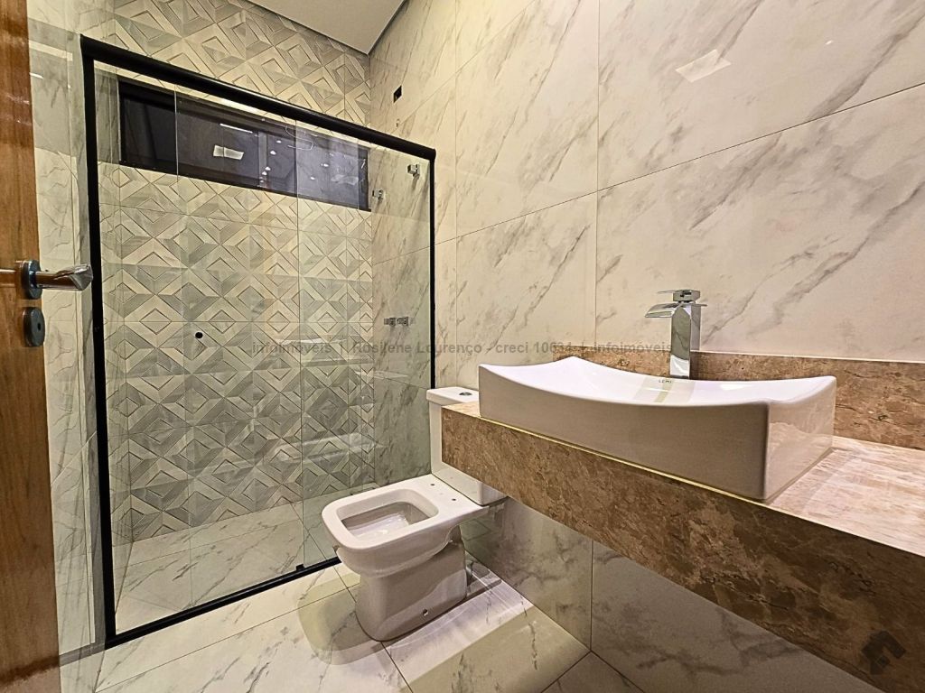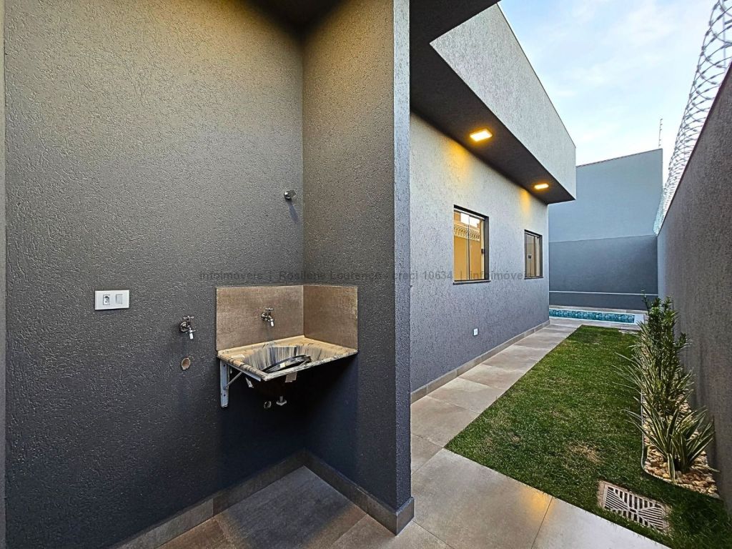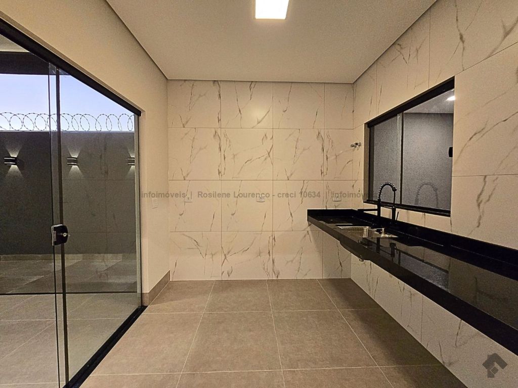Linda casa térrea de 3 quartos, sendo 1 suíte (banheiro com box), 2 vagas de garagem, banheiro social com box, sala ampla 2 ambientes com pé direito alto e blindex, cozinha revestida com pia em mármore e integração com o gourmet. Espaço gourmet completo com churrasqueira e pia, lavabo externo, piscina com prainha e preparação para aquecimento, lavanderia. Imóvel com preparação para aquecimento nas torneiras e chuveiros.