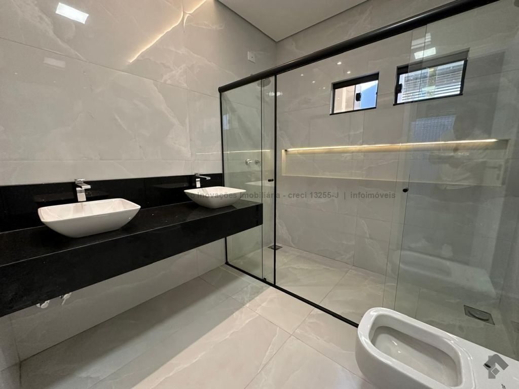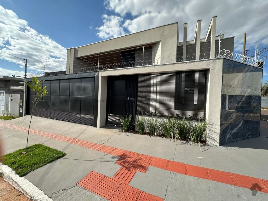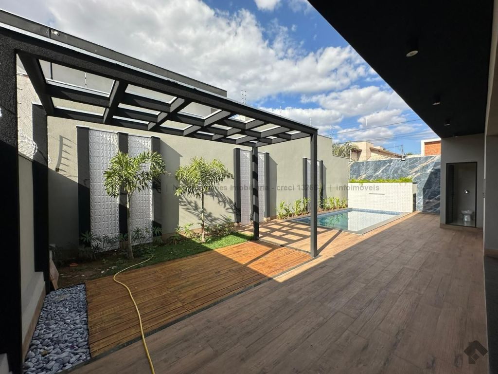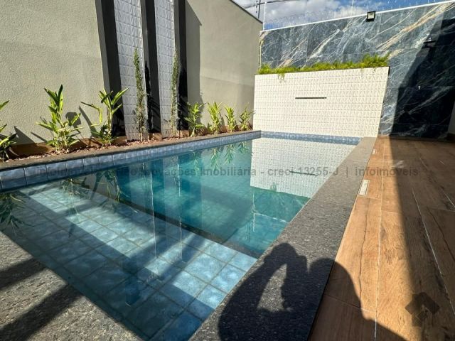 Este imóvel impressiona com uma fachada moderna e imponente, ideal para quem busca conforto, sofisticação e funcionalidade em cada detalhe. O imóvel possui 4 vagas de garagem, sala ampla para até 3 ambientes com pé-direito alto, sanca, revestimento em marmorato e lustre. São 3 suítes, sendo a principal com espaço para closet, banheira de hidromassagem, cuba dupla e ducha dupla. Possui ainda escritório, lavabo interno, cozinha espaçosa com bancada em mármore e revestimento em marmorato, além de um amplo espaço gourmet com pia e ilha em mármore e churrasqueira. Área externa com banheiro, piscina aquecida com cascata, iluminação interna e jatos de hidro. Lavanderia fechada e separada, despensa, projeto completo de paisagismo e iluminação, pergolado e deck.