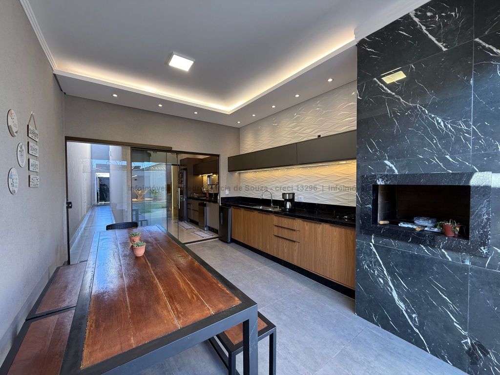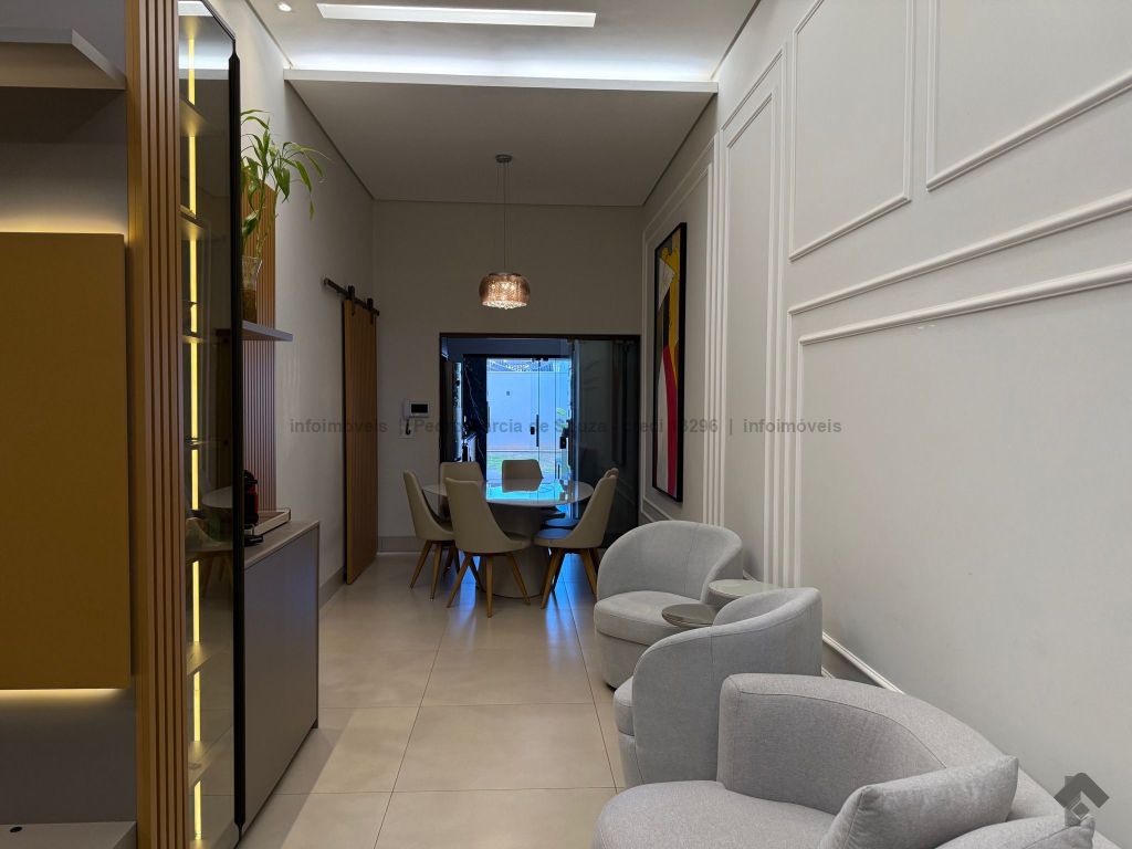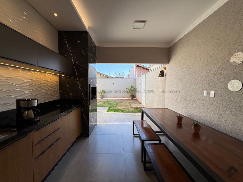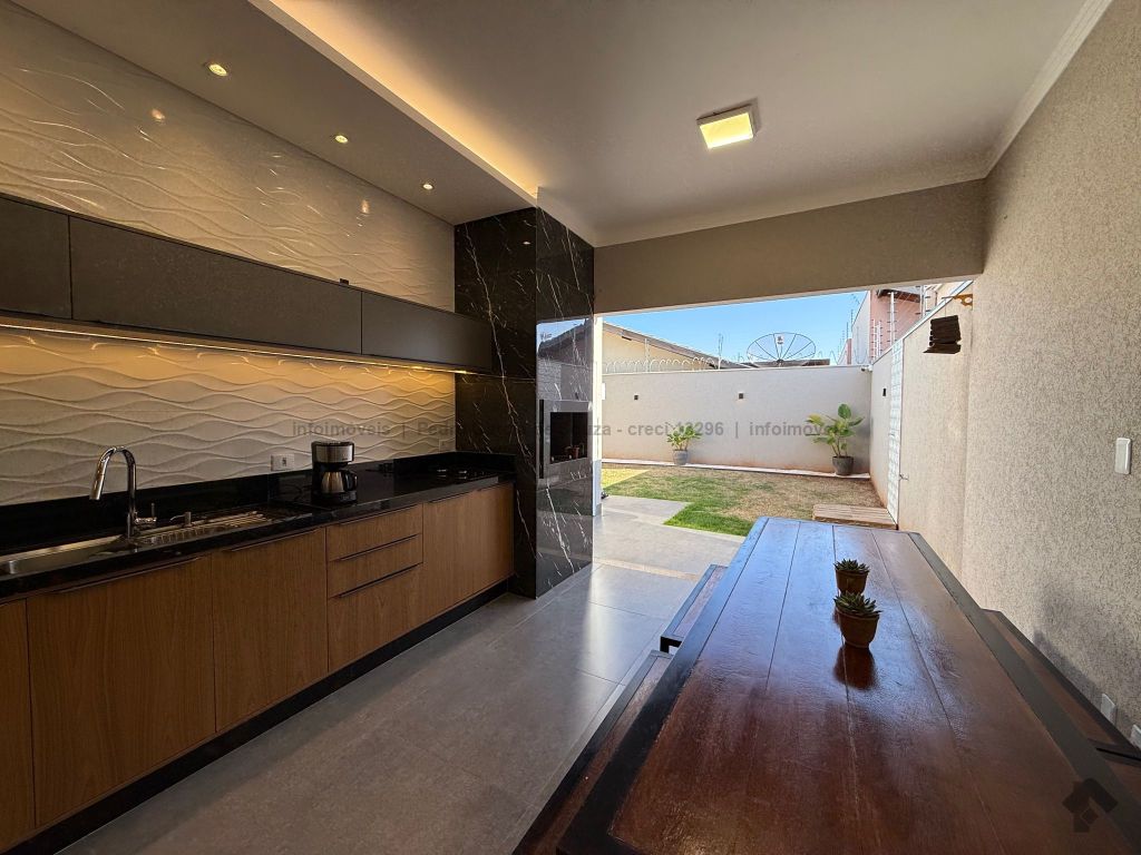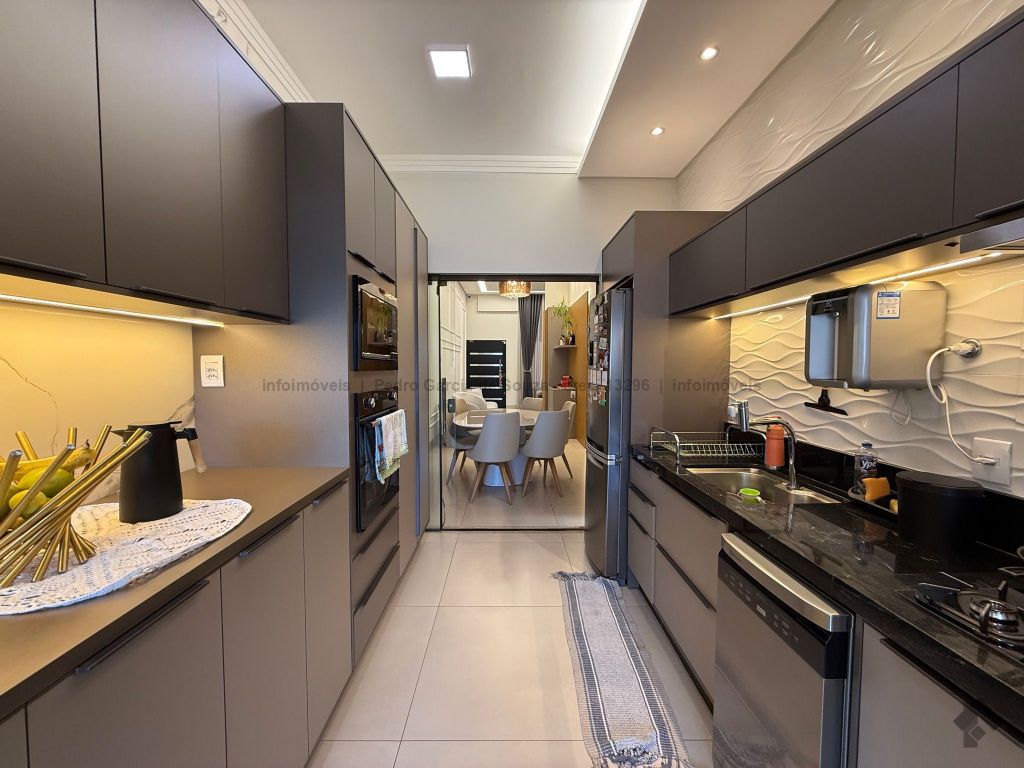 Imóvel com planejados da melhor qualidade, casa térrea com duas vagas de garagem, uma suíte e dois quartos, área gourmet integrada com jardim e cozinha.