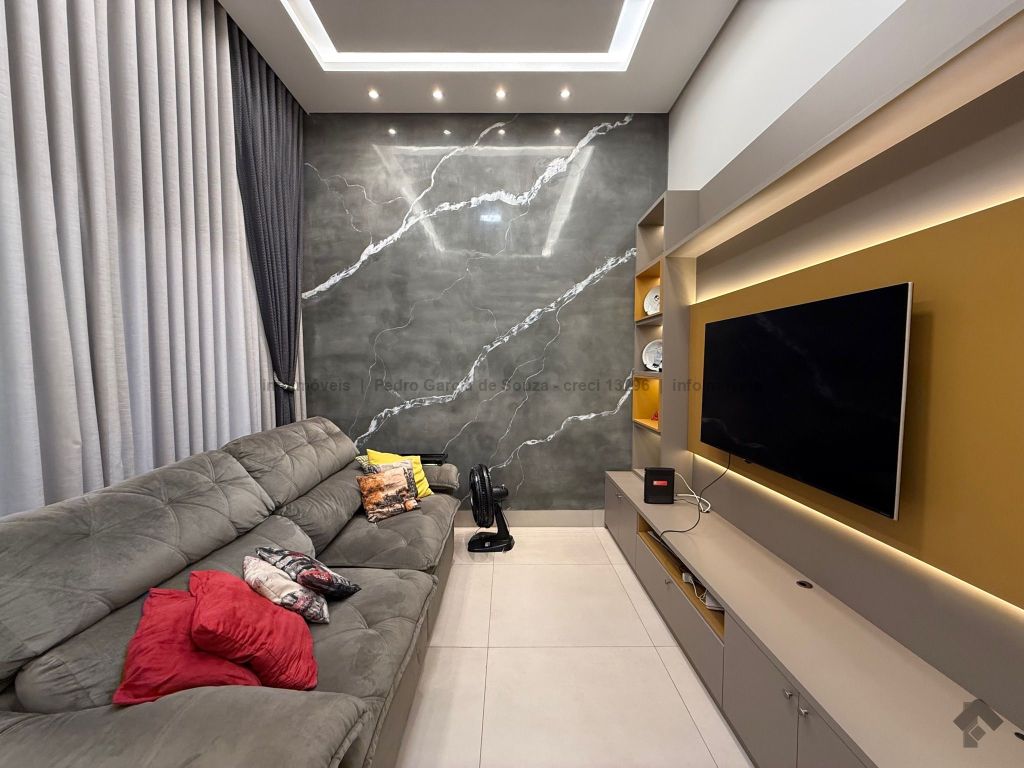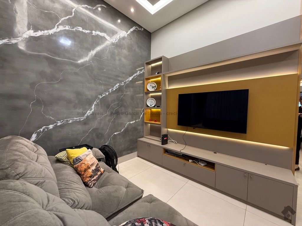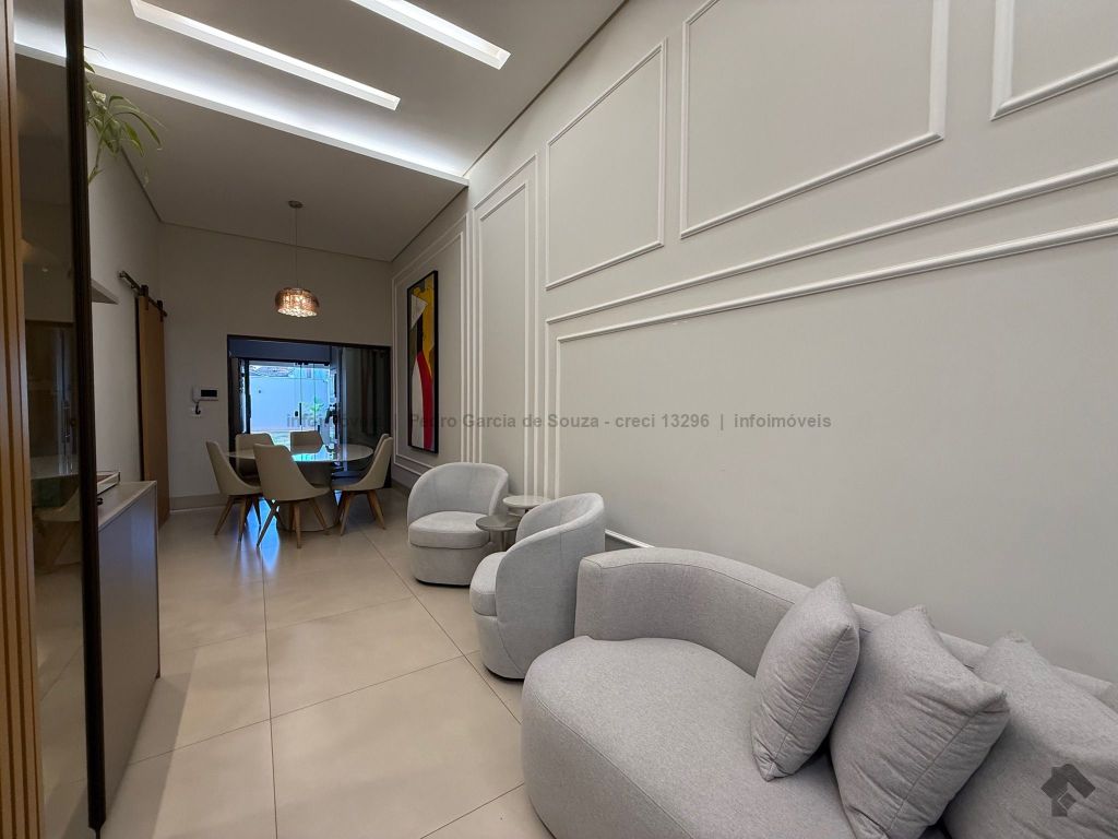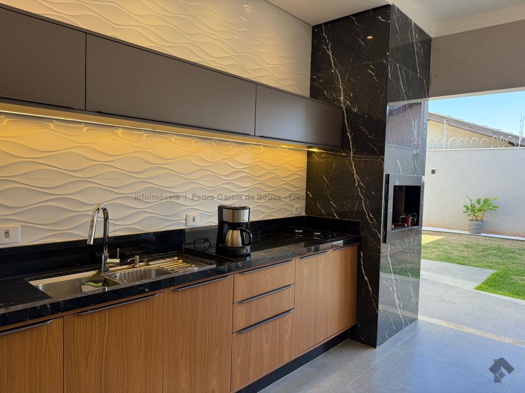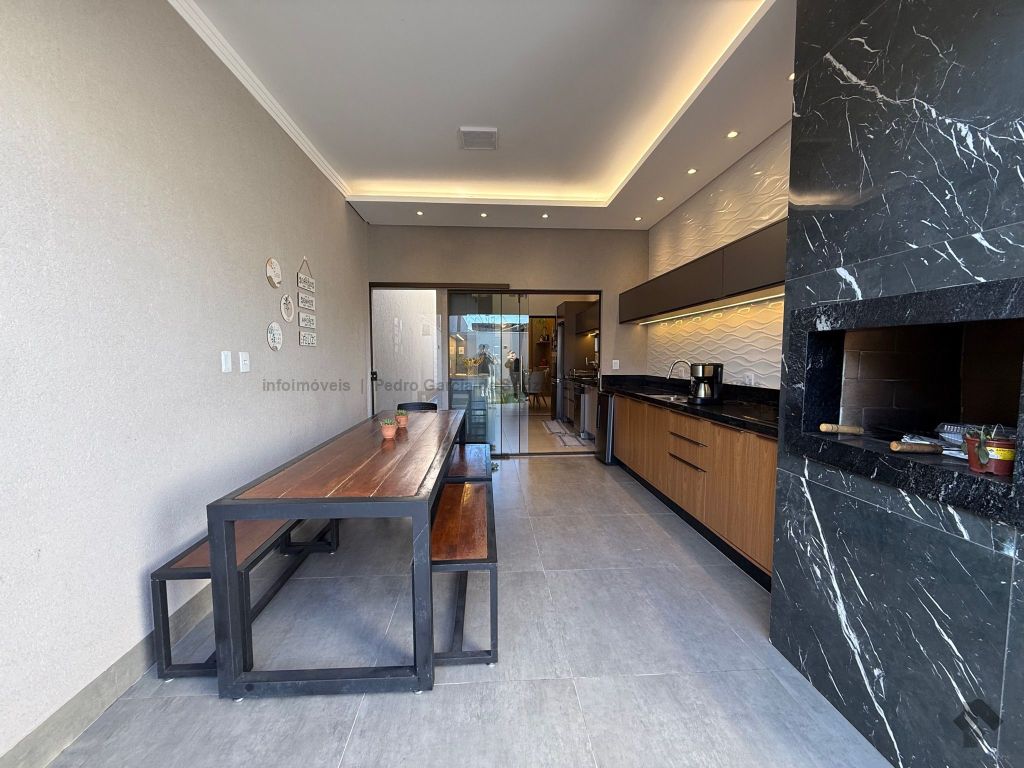Imóvel com planejados da melhor qualidade, casa térrea com duas vagas de garagem, uma suíte e dois quartos, área gourmet integrada com jardim e cozinha.