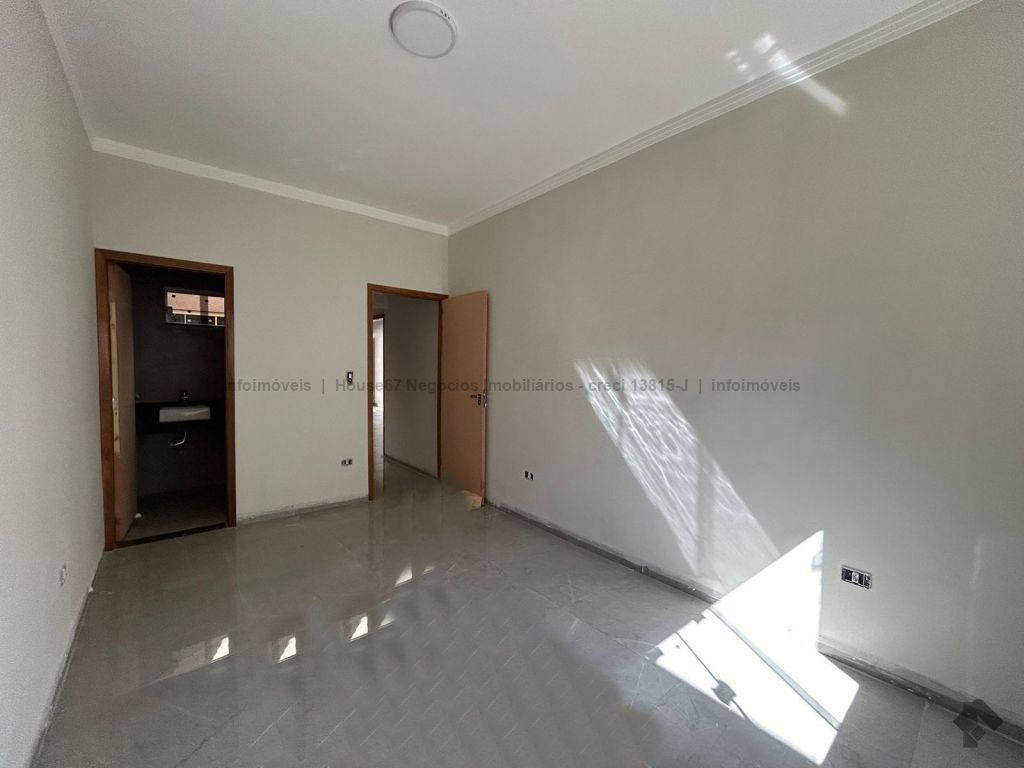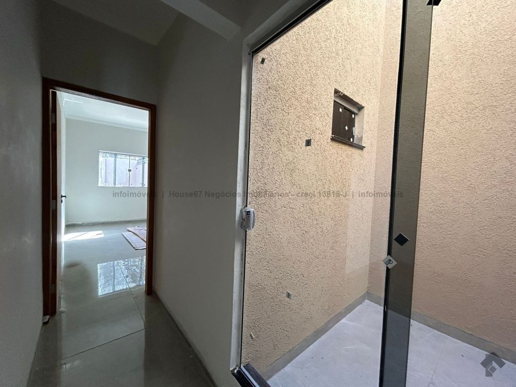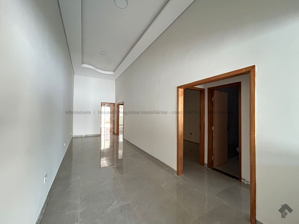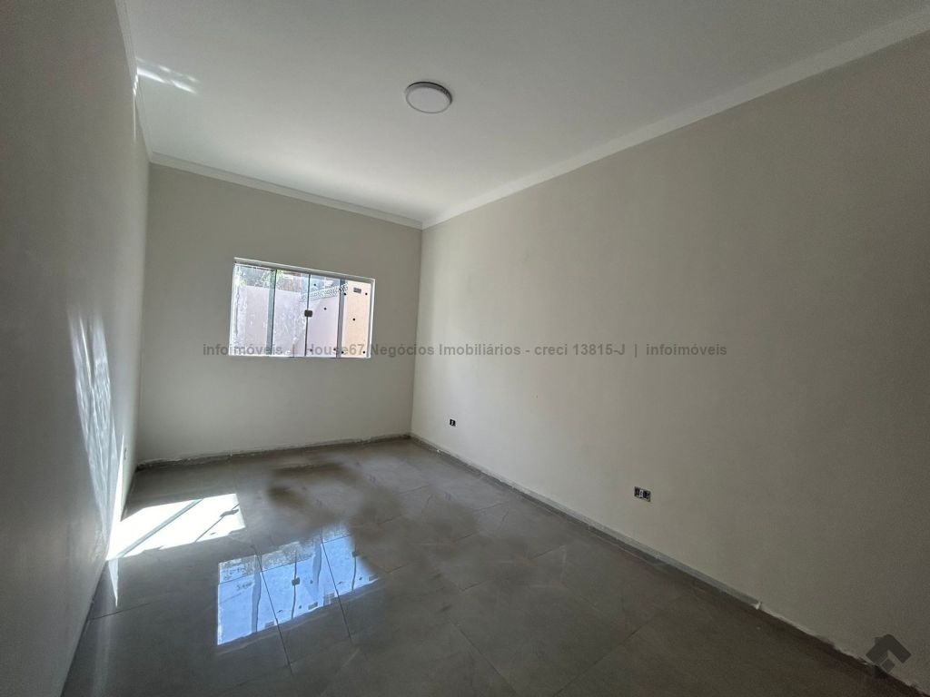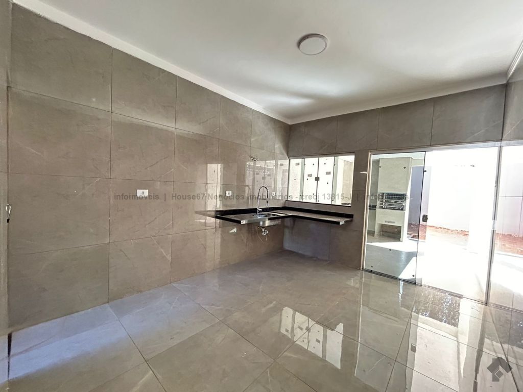 Casa térrea na Rita Vieira, casa com suíte e dois quartos, estar/jantar com pé direito duplo, varanda gourmet, churrasqueira, pia e bancadas em granito, banheiros com pia e nicho em granito, cozinha integrada, área de serviço, duas vagas de garagem, iluminação em LED, quintal, área total de 195 m², área construída de 115 m².