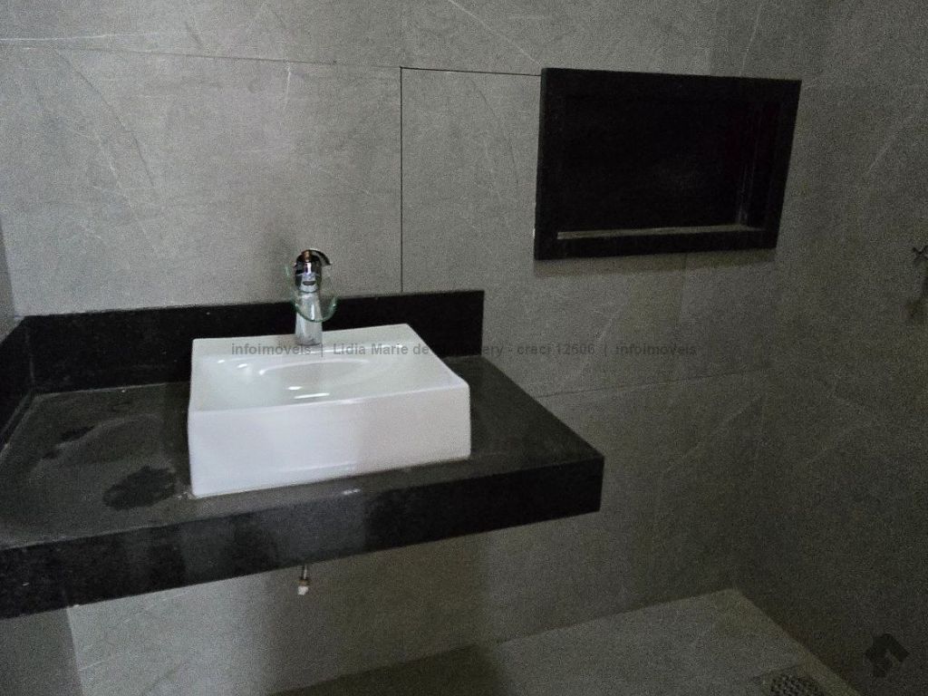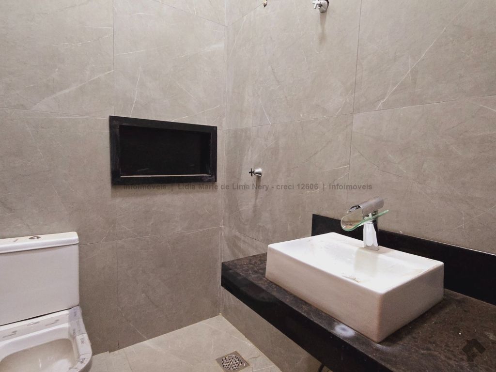 115 m² de construção (terreno de 195 m²). Garagem para 3 carros, 2 quartos e 1 suíte, 1 sala e cozinha grande, 2 lavabos, jardim de inverno, área gourmet com churrasqueira, espaço no fundo para piscina, rede de esgoto.