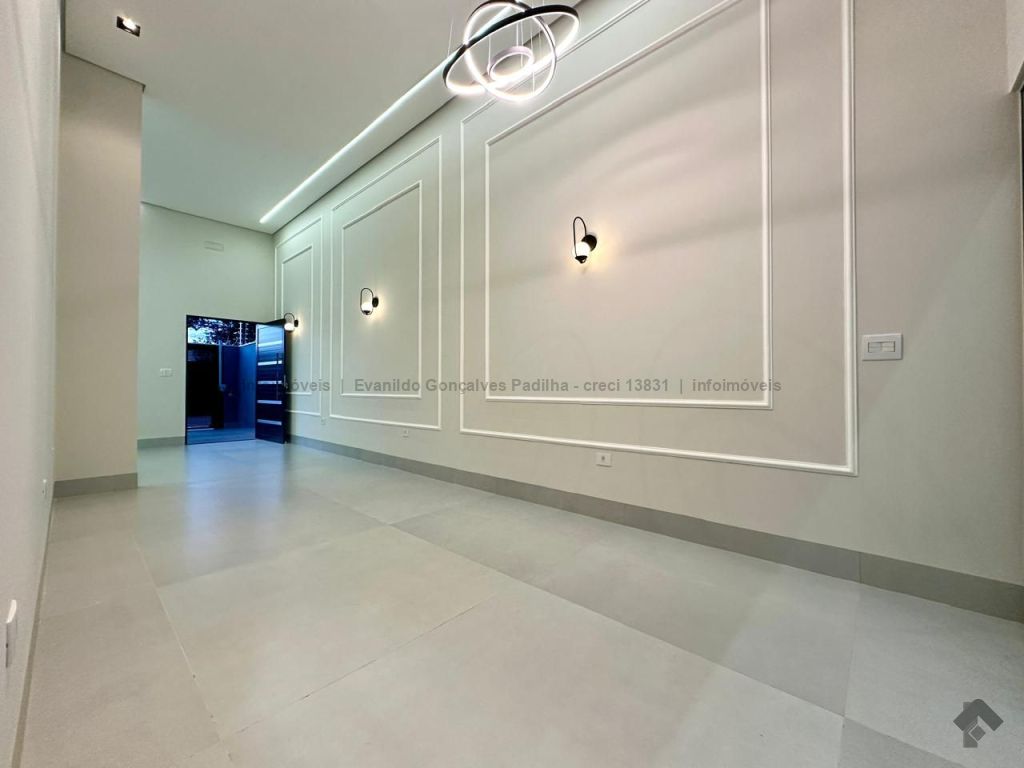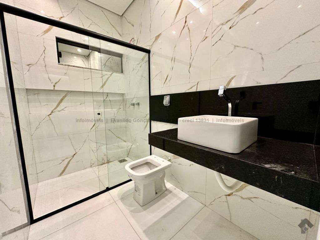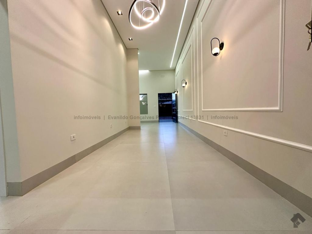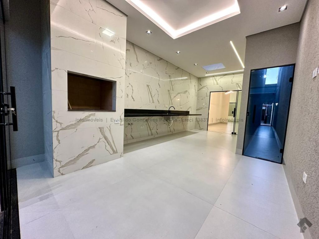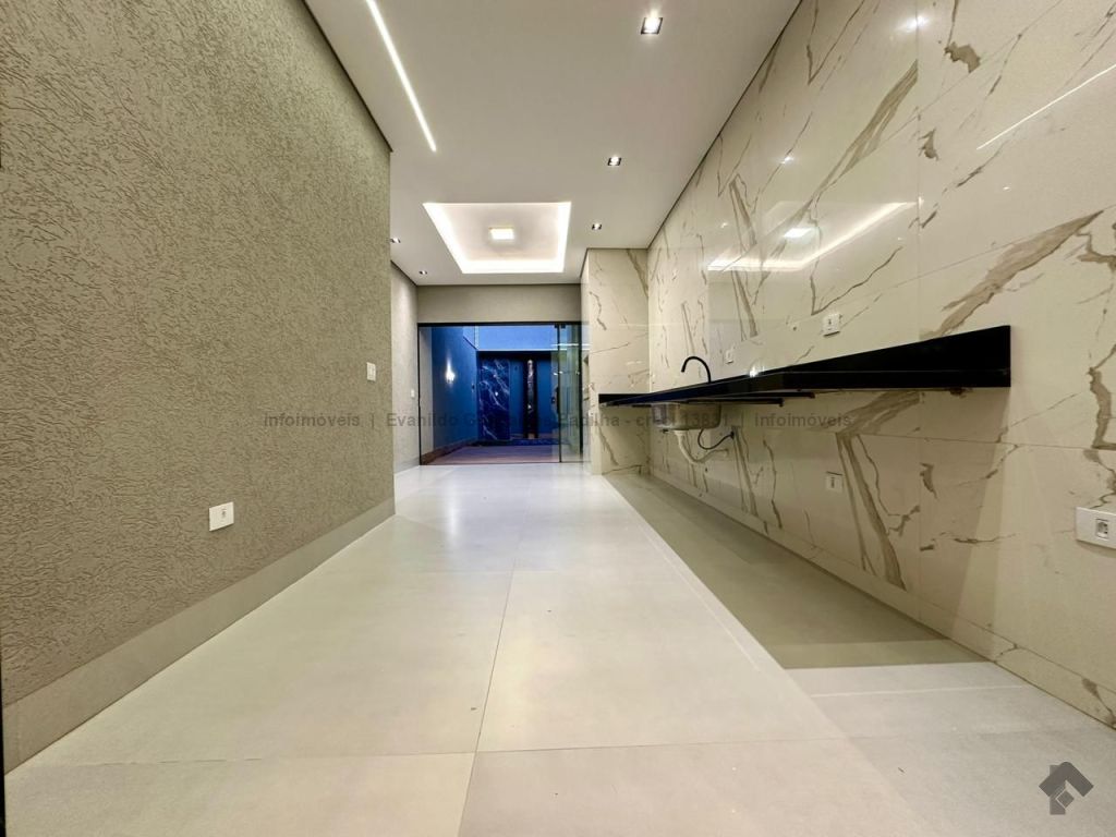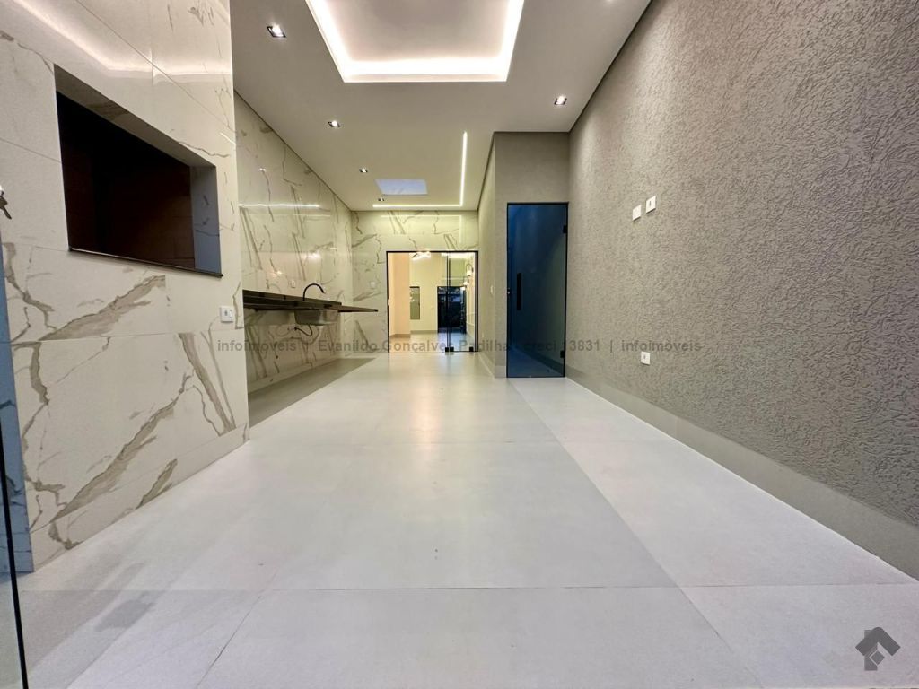 Casa térrea e nova com alto padrão de acabamento no Rita Vieira. 225 m² de área total, 135 m² de área construída, fachada imponente, 3 suítes, sendo a principal bem ampla, jardim de inverno, sala ampla para até 3 ambientes com pé direito alto, cozinha gourmet bem ampla, lavabo para área gourmet, lavanderia ampla, coberta e fechada, piscina ampla de 16 m² em "L", com cascata, jatos de hidro, iluminação e já aquecida, corredor lateral, 3 vagas de garagem cobertas.