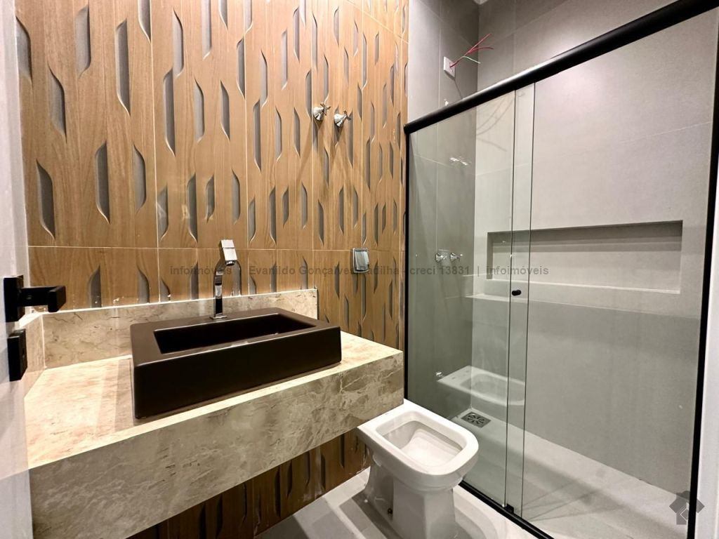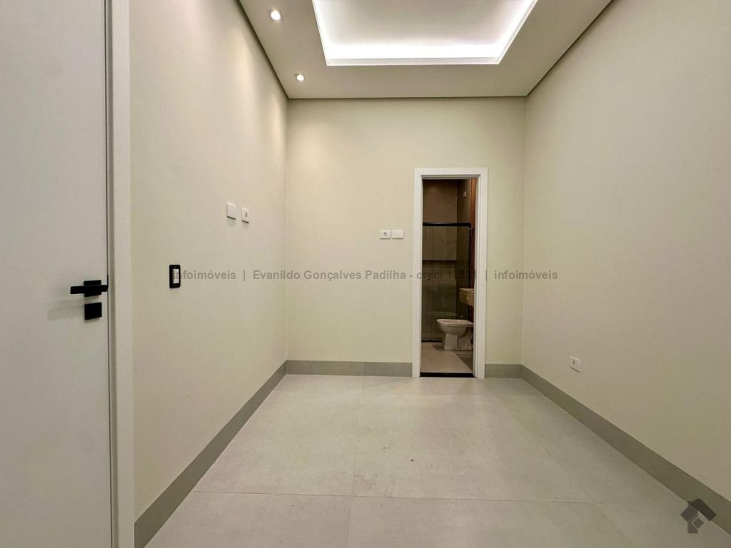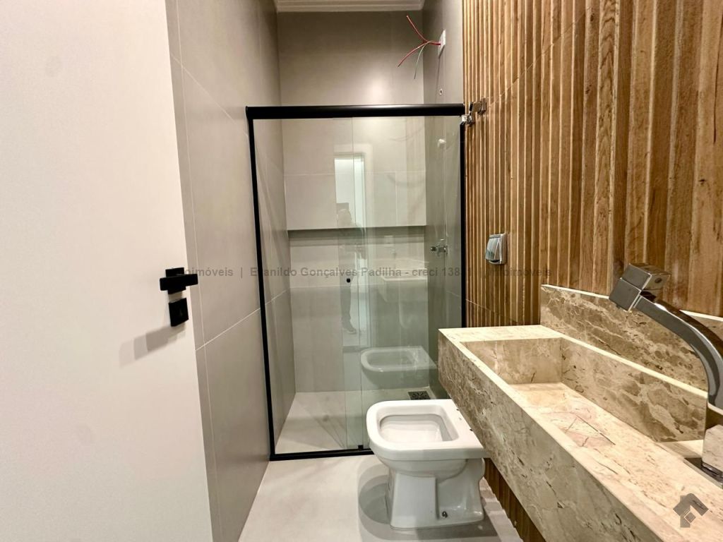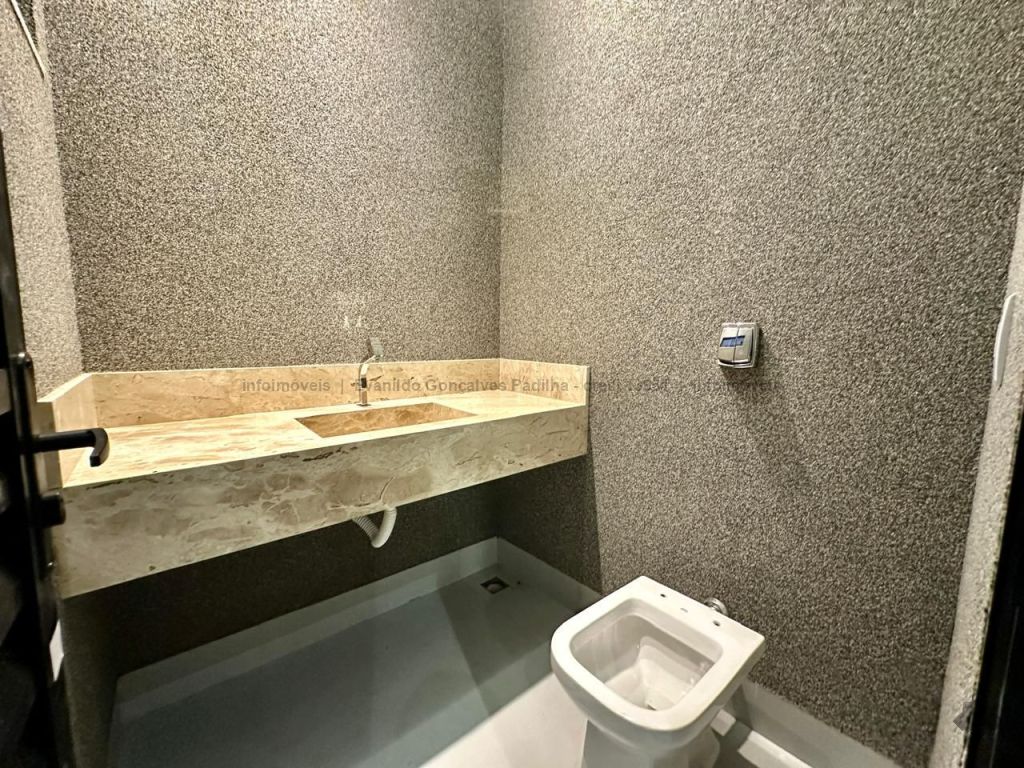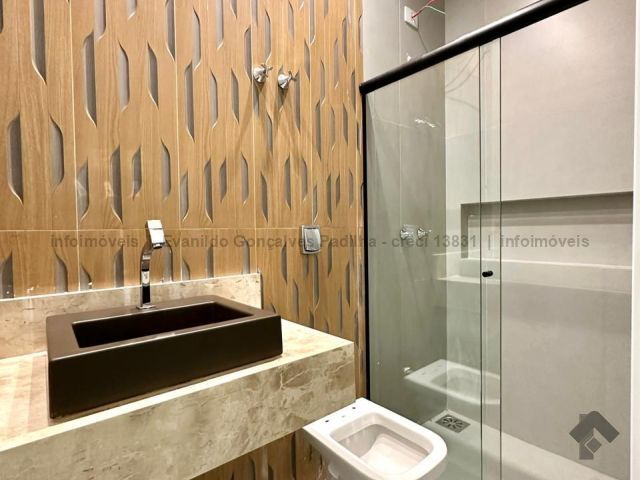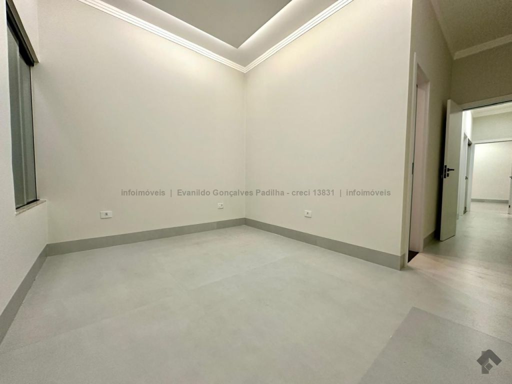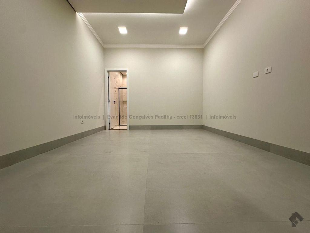 Casa térrea e nova com alto padrão de acabamento no Rita Vieira. 225 m² de área total, 135 m² de área construída, fachada imponente, 3 suítes, sendo a principal bem ampla, jardim de inverno, sala ampla para até 3 ambientes com pé direito alto, cozinha gourmet bem ampla, lavabo para área gourmet, lavanderia ampla, coberta e fechada, piscina ampla de 16 m² em "L", com cascata, jatos de hidro, iluminação e já aquecida, corredor lateral, 3 vagas de garagem cobertas.