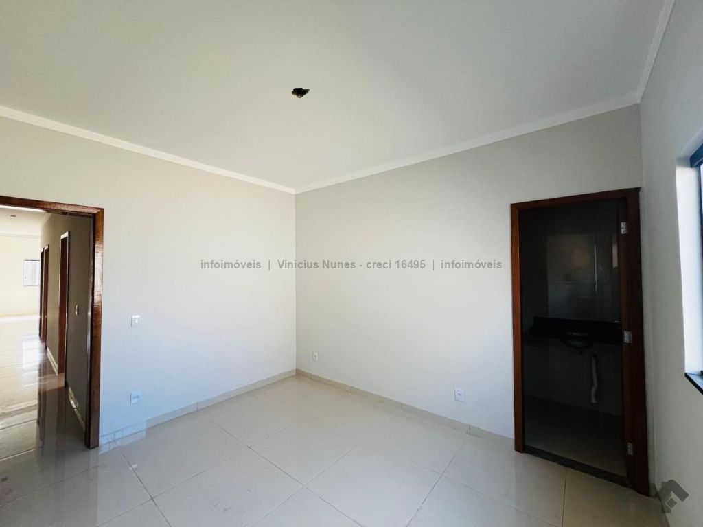 3 vagas de garagem, sala com pé direito alto, cozinha integrada toda revestida, banheiro social, 3 quartos, 1 suíte espaçosa, lavanderia coberta, espaço gourmet, churrasqueira, pia, lavabo, sobra de quintal, corredor lateral amplo, toda em porcelanato, rodapé embutido.