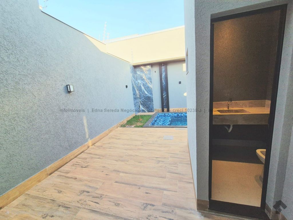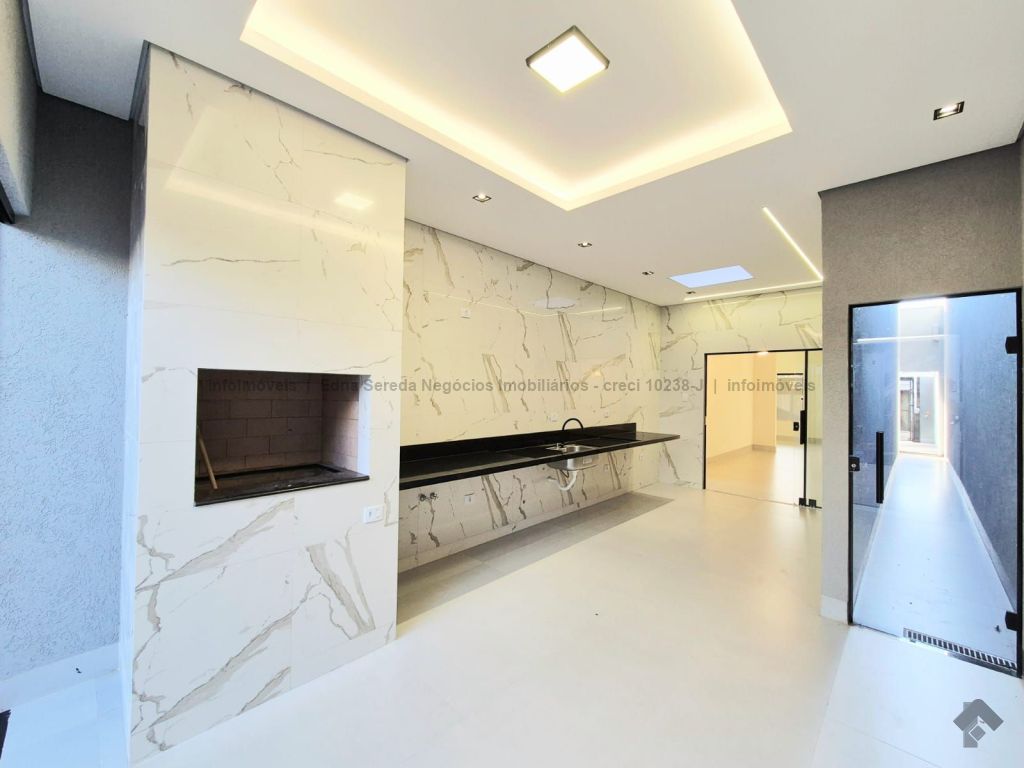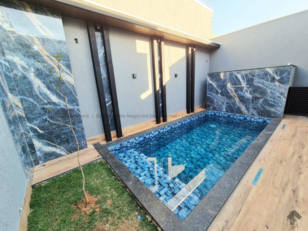 Linda casa com ampla sala 03 ambientes com pé direito alto, cozinha e área gourmet integradas com churrasqueira, 03 suítes, jardim de inverno, banheiro social, lavanderia, projeto luminotécnico por toda a casa e área externa, piscina com cascata, prainha com hidromassagem aquecida, corredor lateral, 03 vagas de garagem cobertas.