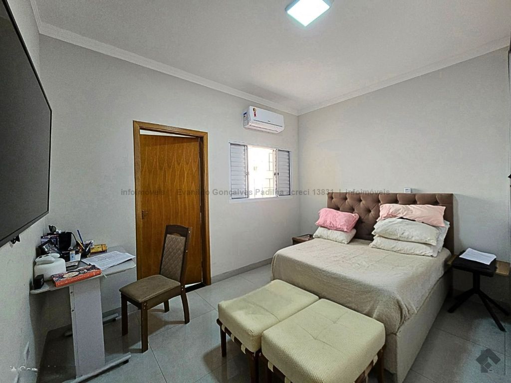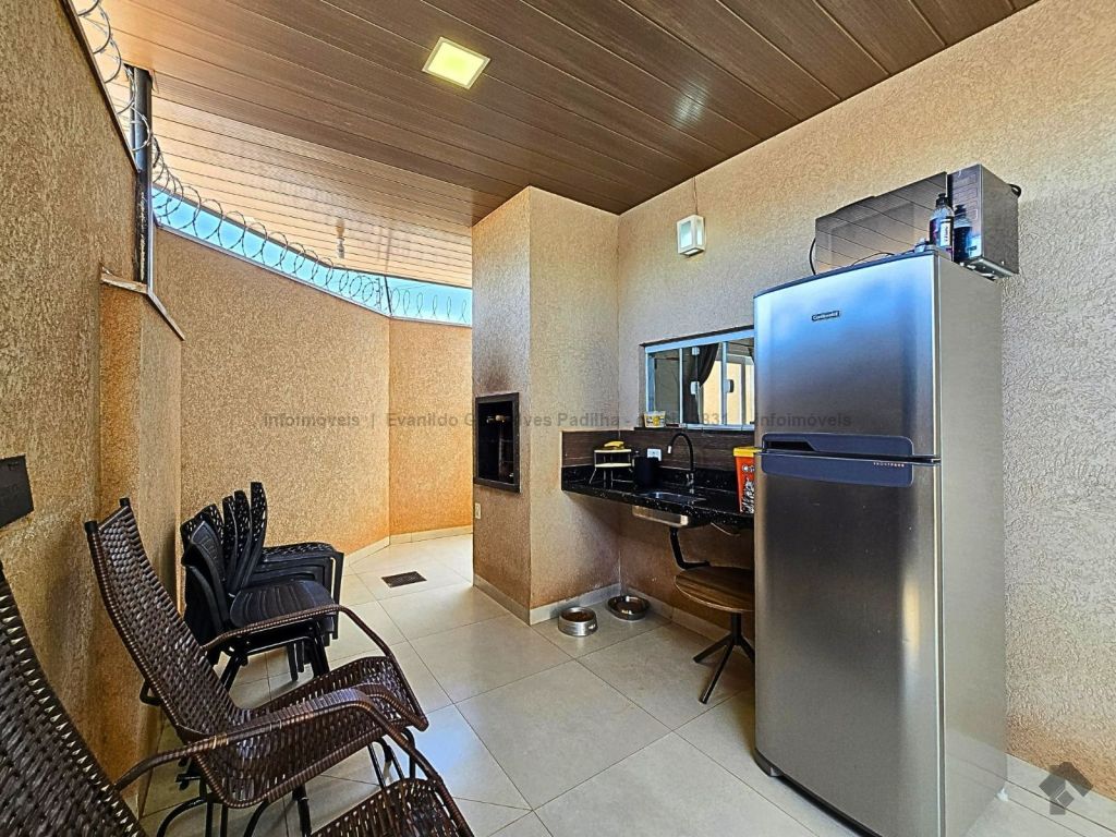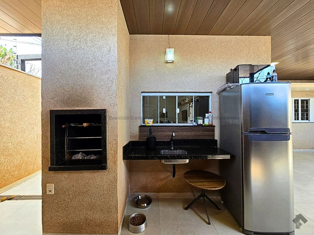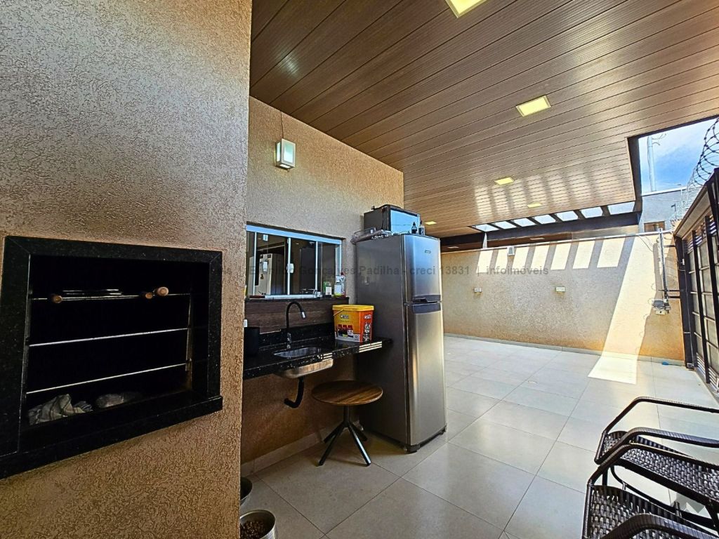 Linda casa térrea no Rita Vieira I, pronta para morar. 150 m² de área total, 93 m² de área construída, 2 vagas de garagem cobertas, 3 quartos sendo 1 suíte (suíte com armário planejado, todos os cômodos climatizados com ar-condicionado), sala de TV climatizada integrada à cozinha, cozinha planejada com armários, forno, cooktop e coifa, banheiro social com box de vidro, espaço gourmet com churrasqueira e pia, ideal para reunir família e amigos.