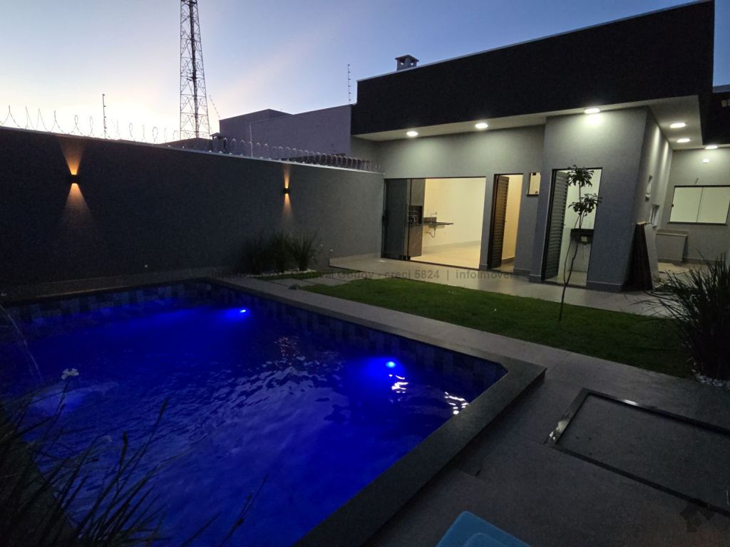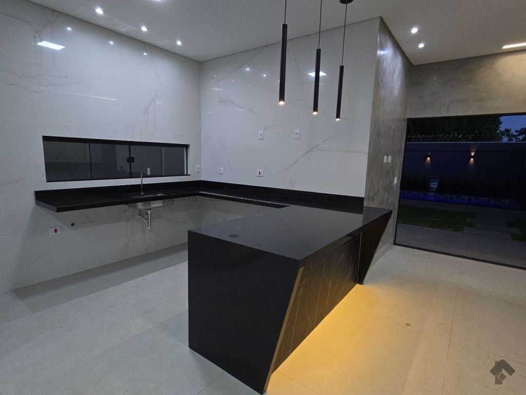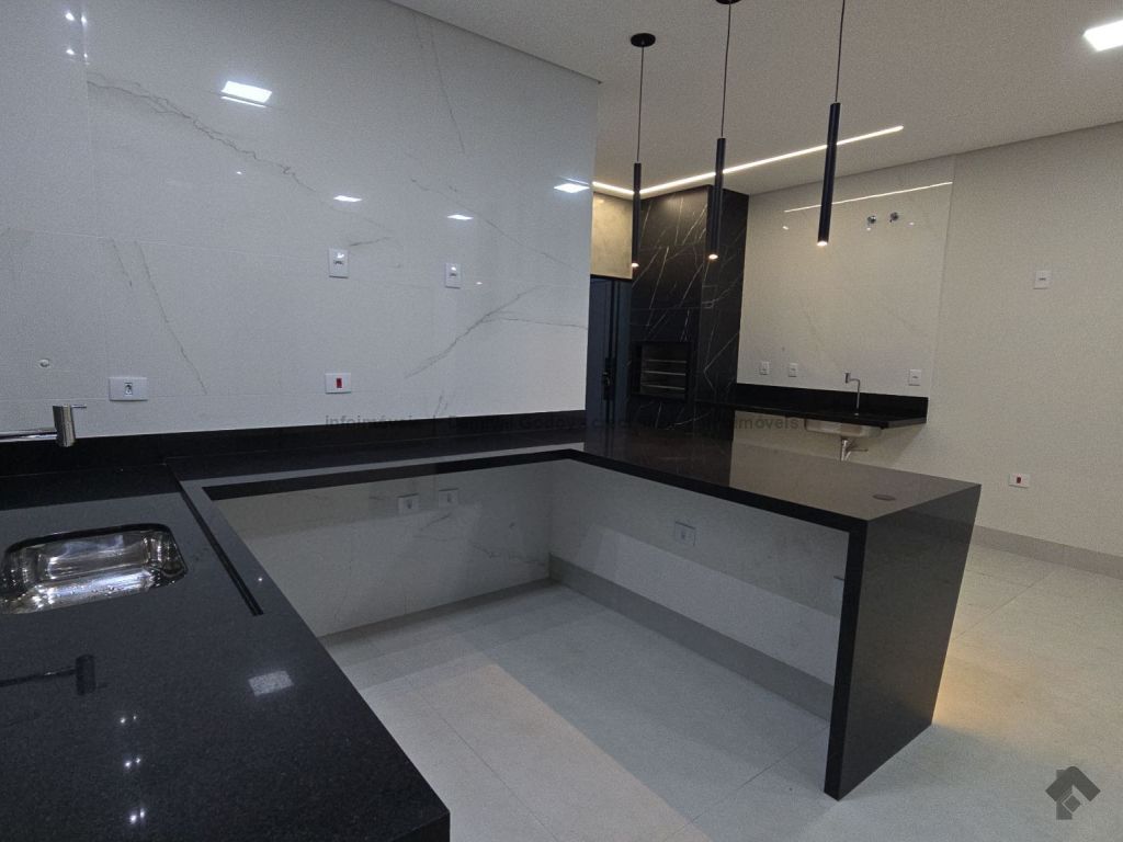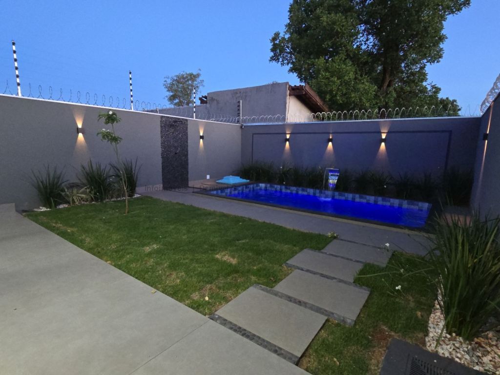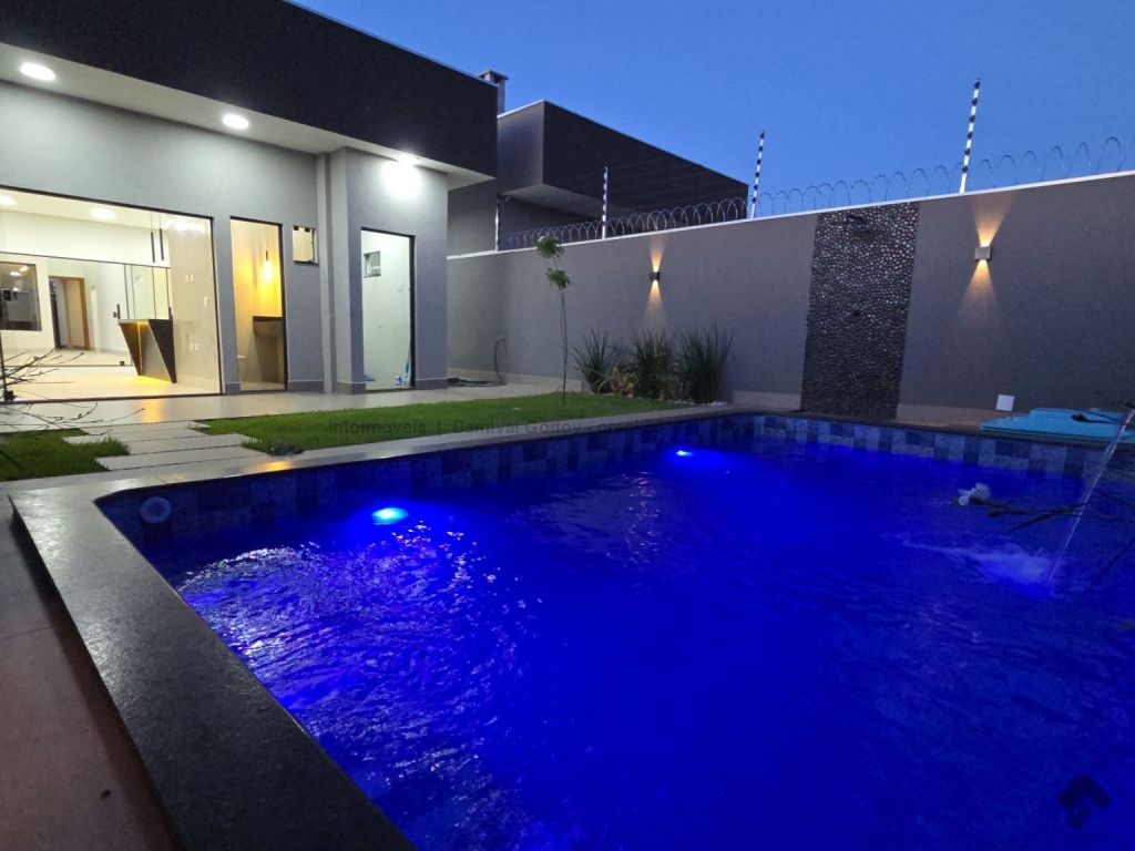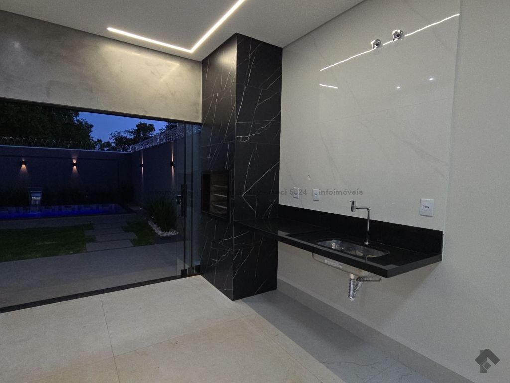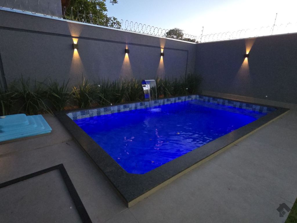 Cômodos maiores que os convencionais, 285 m² de terreno, 142 m² construídos, garagem para quatro carros, sala para três ambientes com pé direito alto, jardim de inverno, uma suíte com seis metros de comprimento, total de três suítes, cozinha ampla e integrada, área gourmet fechada para climatização, piscina com luz de LED, hidromassagem e cascata, lavabo, área de serviço fechada, porta da sala em madeira maciça e fechadura eletrônica, porcelanatos de 1,20 x 1,20, preparação de água quente na casa, preparação de aquecimento da piscina, preparação de instalação dos aparelhos de ar-condicionado, gás tubulado, que fica na área externa.