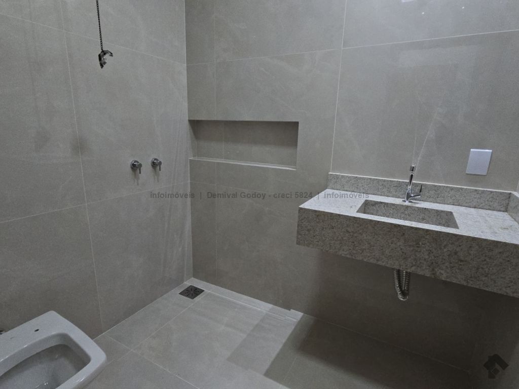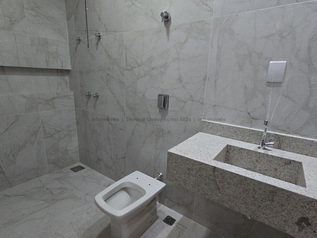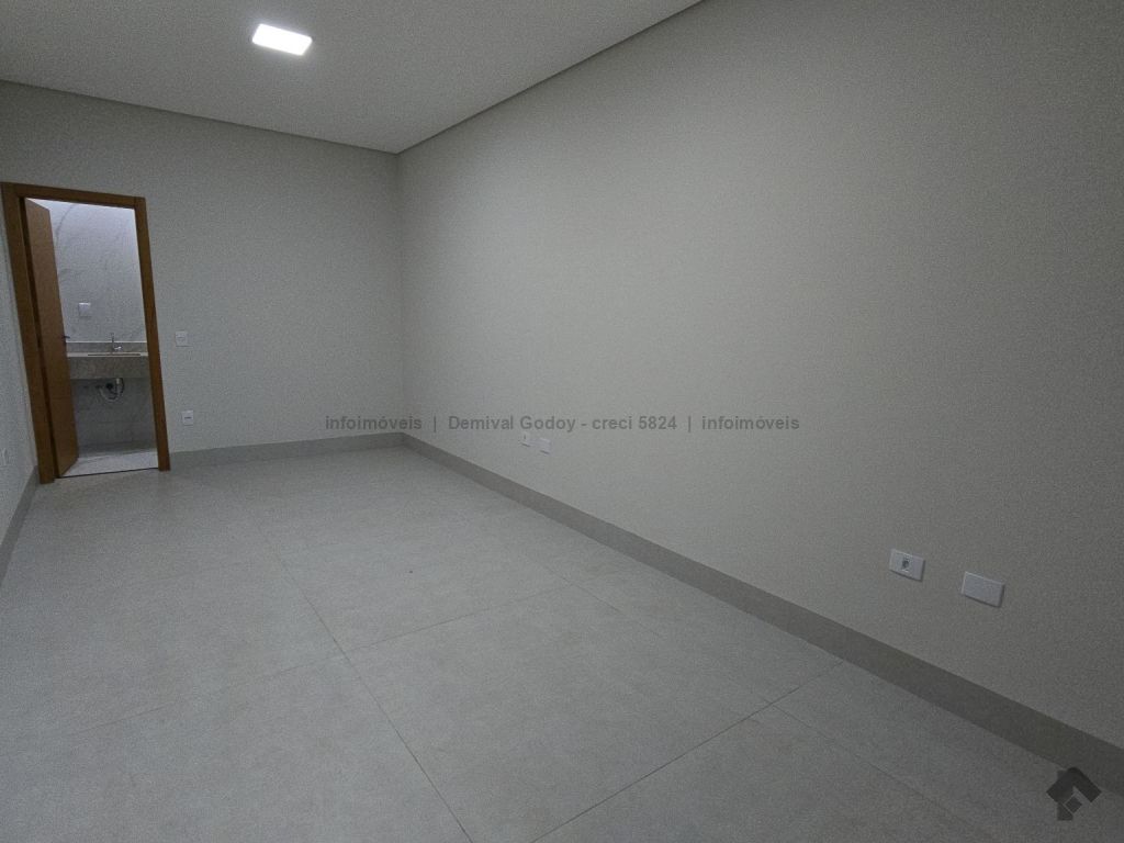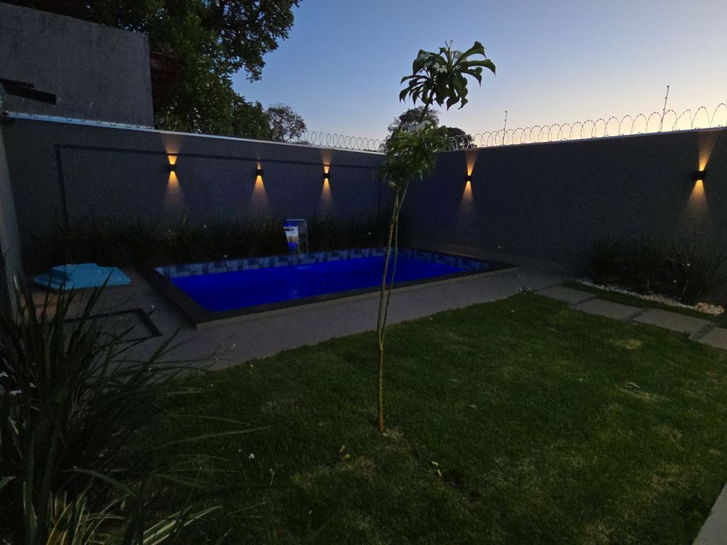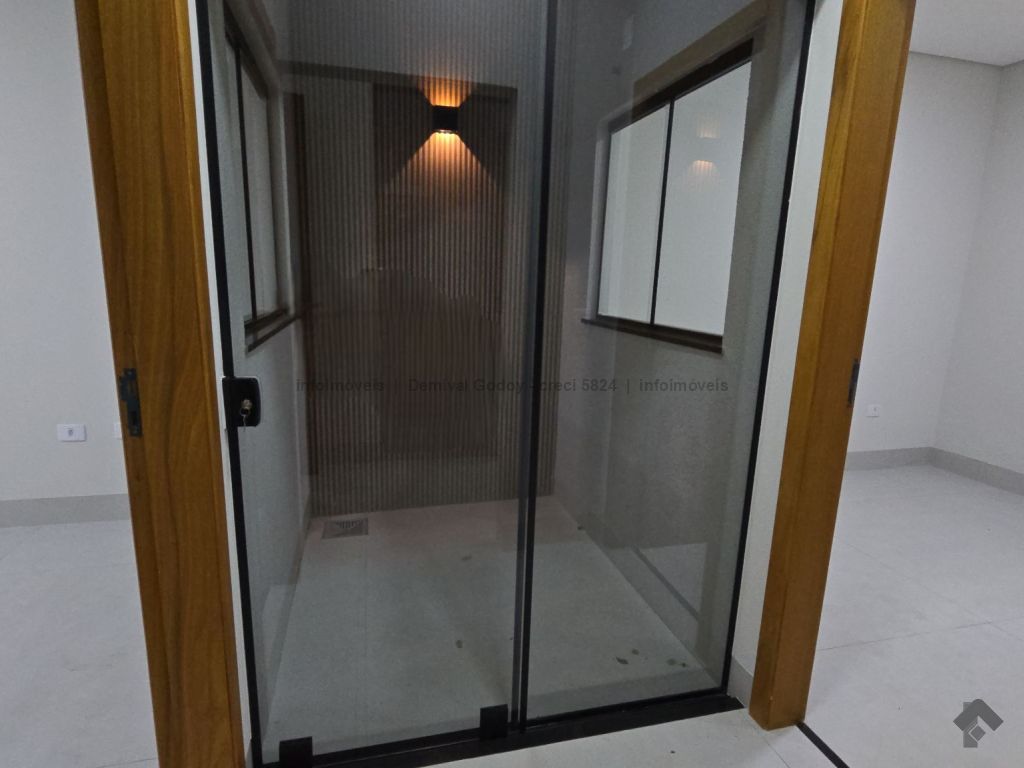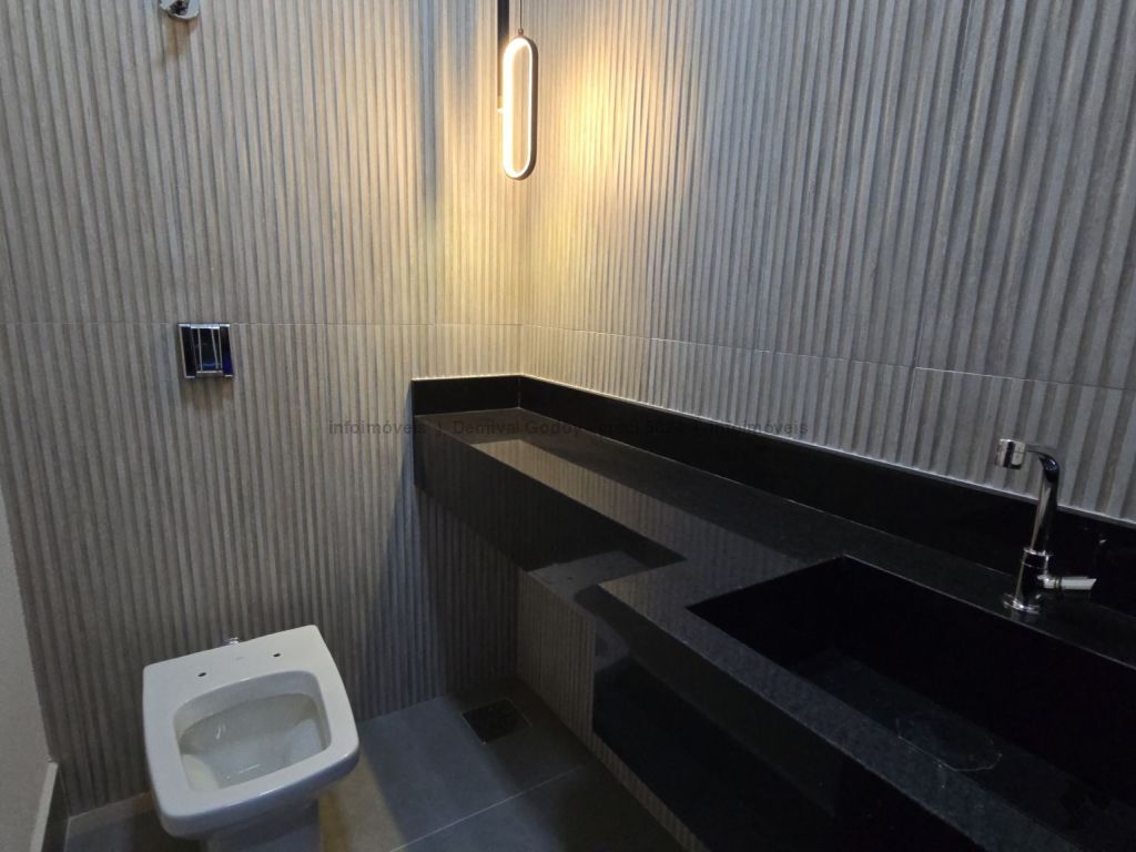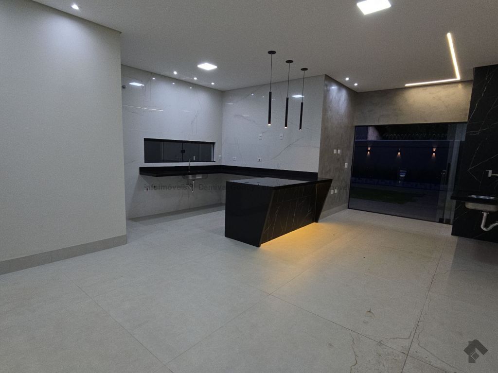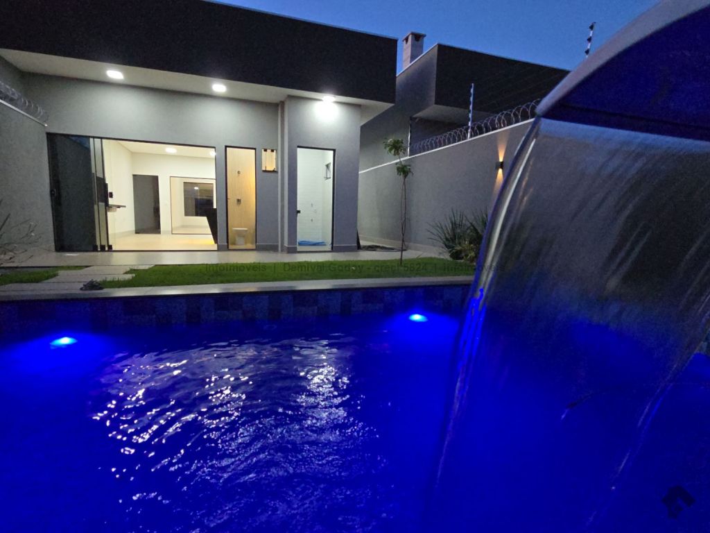 Cômodos maiores que os convencionais, 285 m² de terreno, 142 m² construídos, garagem para quatro carros, sala para três ambientes com pé direito alto, jardim de inverno, uma suíte com seis metros de comprimento, total de três suítes, cozinha ampla e integrada, área gourmet fechada para climatização, piscina com luz de LED, hidromassagem e cascata, lavabo, área de serviço fechada, porta da sala em madeira maciça e fechadura eletrônica, porcelanatos de 1,20 x 1,20, preparação de água quente na casa, preparação de aquecimento da piscina, preparação de instalação dos aparelhos de ar-condicionado, gás tubulado, que fica na área externa.