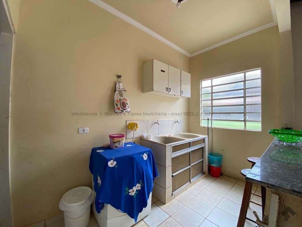 Casa térrea possui sala de tv, sala de jantar, 1 suíte, 2 quartos, wc social, cozinha, lavanderia coberta e enorme terreno nos fundos. Garagem coberta para 1 carro. Portão de elevação.