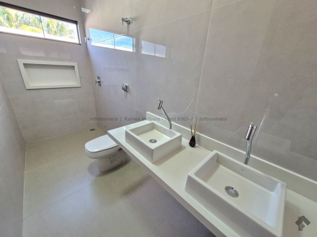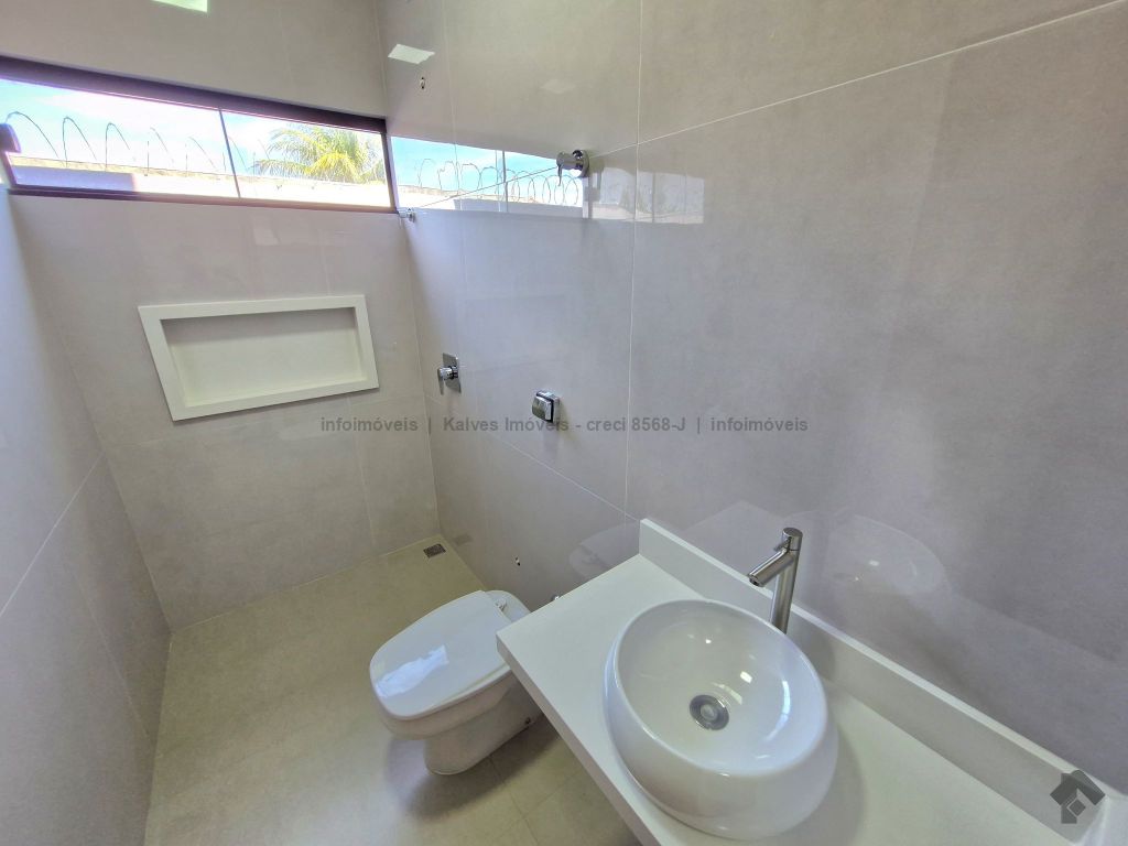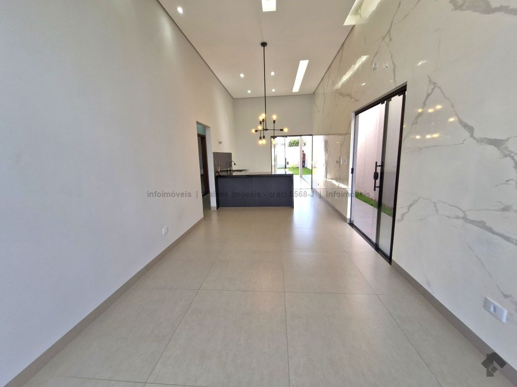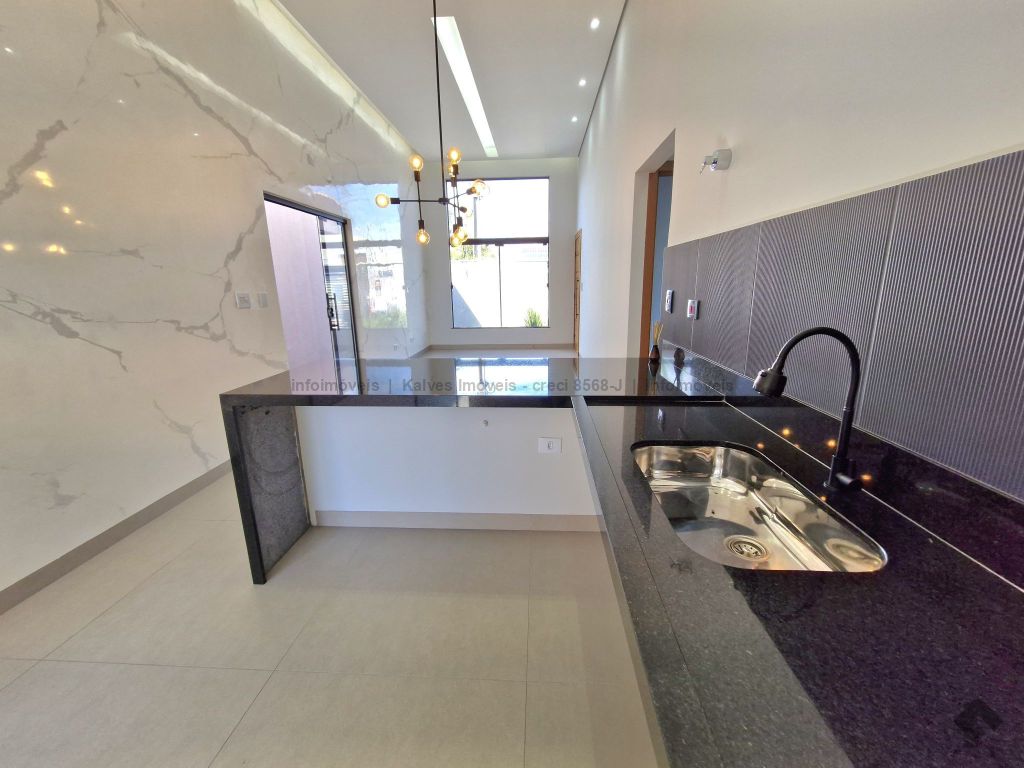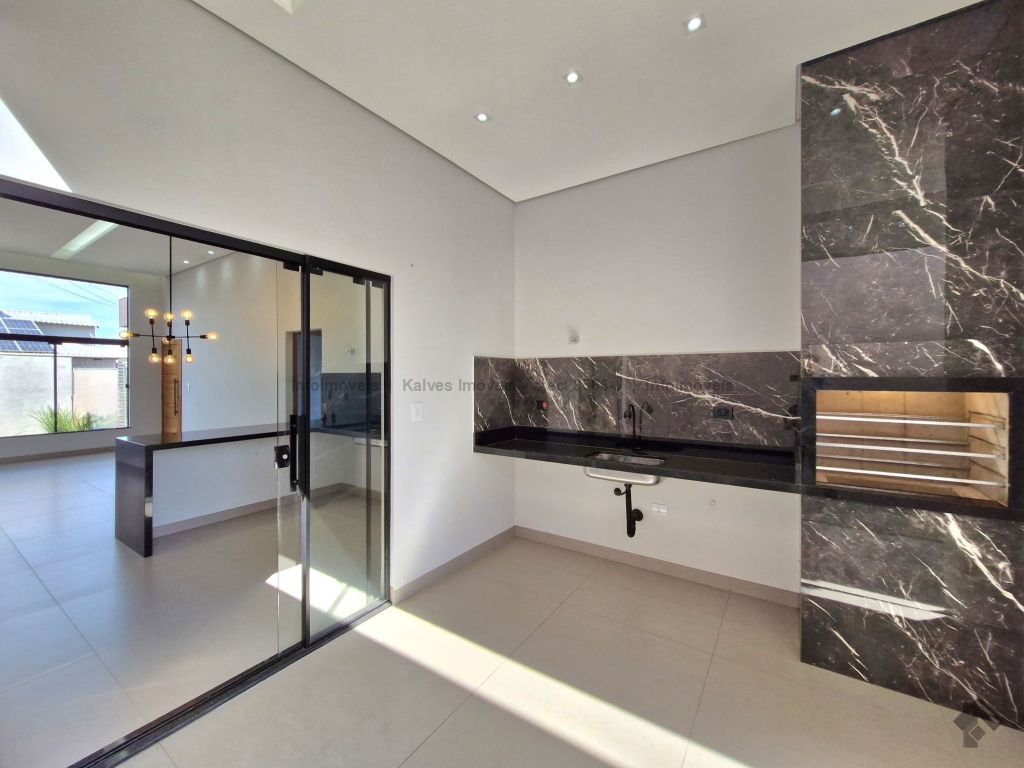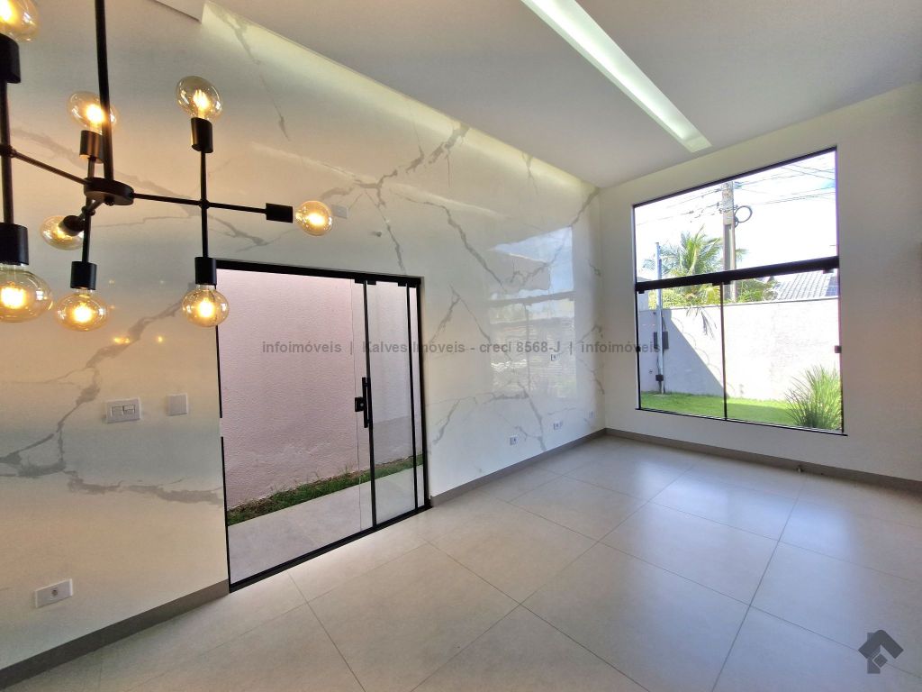 Sala ampla, separada dos quartos para maior privacidade. Lustre na sala e acabamento em gesso na laje. Iluminação 100% LED em todos os ambientes. Pisos em porcelanato. Cozinha moderna com bancada em granito preto São Gabriel. Área gourmet com pia e churrasqueira em granito preto São Gabriel. Fachada imponente com jardim e detalhes em blindex. Portas de blindex na entrada lateral e nos fundos, porta principal em madeira. Concertina para maior segurança. Amplo espaço no fundo para futuras ampliações.