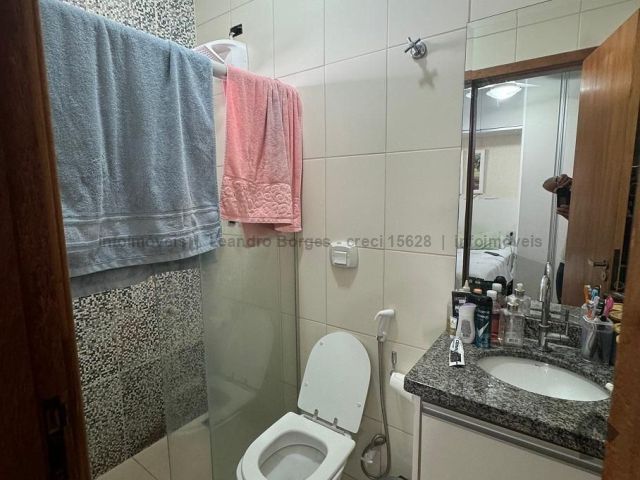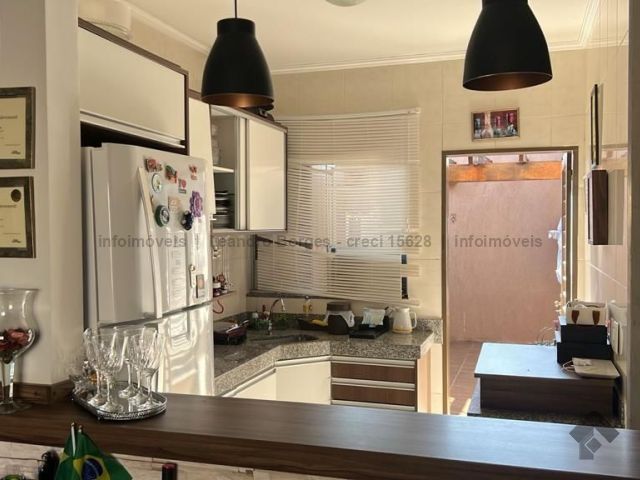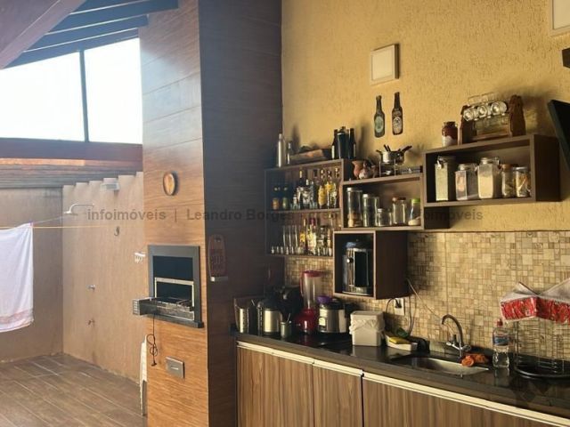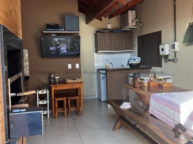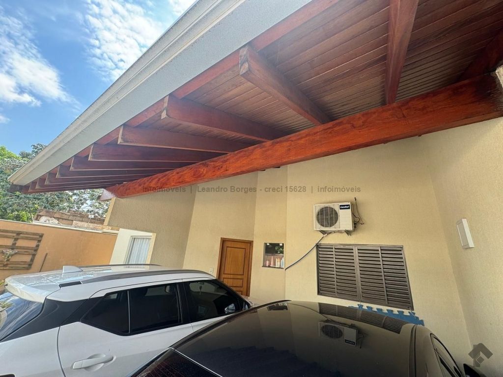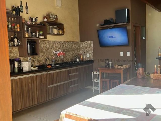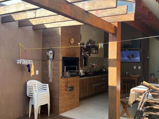 Todo em laje com detalhe em gesso, pias, bancadas e balcão em granito, janelas da sala e cozinha e box dos banheiros em vidro temperado, janelas dos quartos em veneziana, suíte, quartos, lavanderia e área gourmet com armário embutido, gourmet com churrasqueira e pia com armário, suíte e um quarto com ventilador, beirais e varandas em forro de madeira, possui sistema de produção de energia solar.
