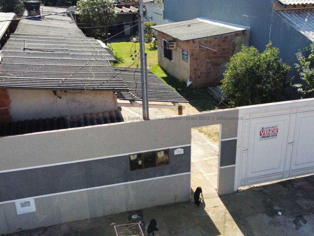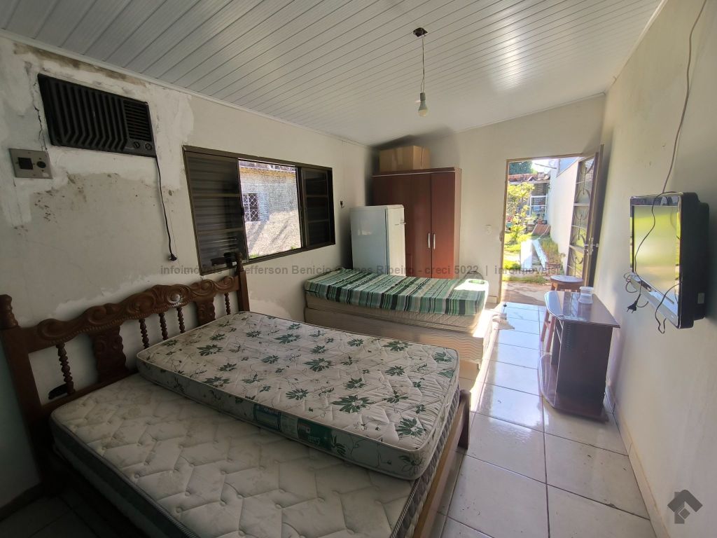 Terreno de 12 x 36 m, totalizando 432 m², composto pelas seguintes construções: casa com lavanderia, cozinha e suíte. Casa com garagem coberta, cozinha, sala de TV, banheiro social, dois quartos, depósito, varanda e churrasqueira. Suíte independente.