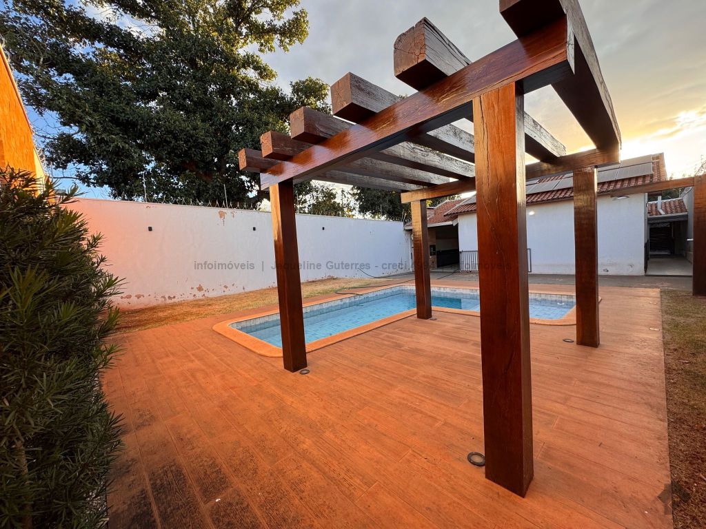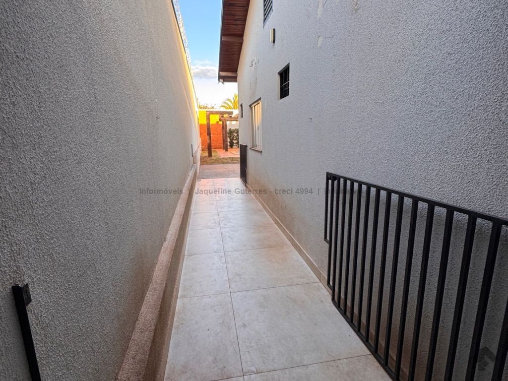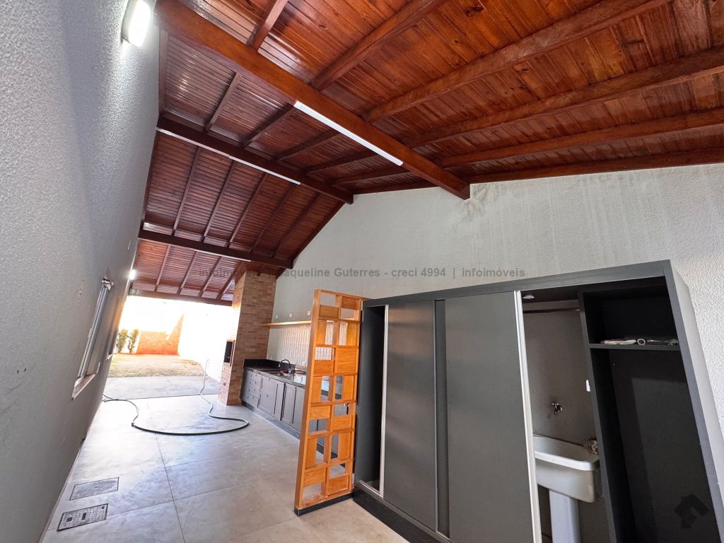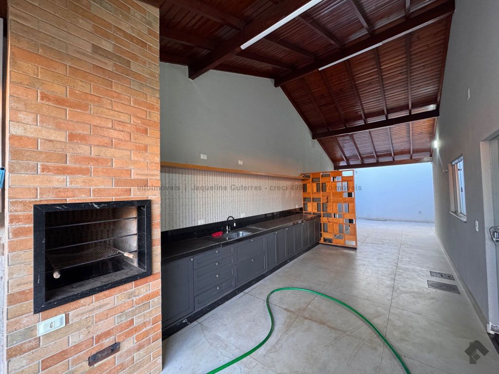 Linda casa térrea, projeto funcional, possui 1 suíte mais 2 quartos, banheiro social, cozinha integrada à sala e ampla área gourmet, acabamento na garagem e área gourmet com madeiramento em pé direito alto que embeleza e proporciona conforto térmico, amplo quintal com pergolado e piscina com prainha. Muito espaço para ampliação se houver necessidade. Possui energia fotovoltaica e preparo para aquecimento da piscina, cerca elétrica e câmeras de segurança.