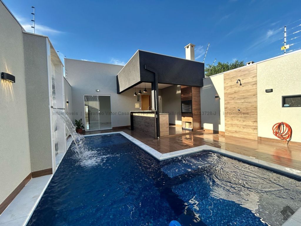 Veja alguns diferenciais: 3 suítes amplas, uma linda área gourmet completa com piscina, um corredor lateral largo que proporciona vários benefícios, mas o principal é a ventilação proporcionada para o imóvel, com pisos de cor madeirada para manter a beleza e facilitar a higienização.
