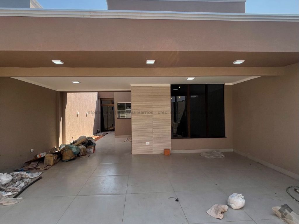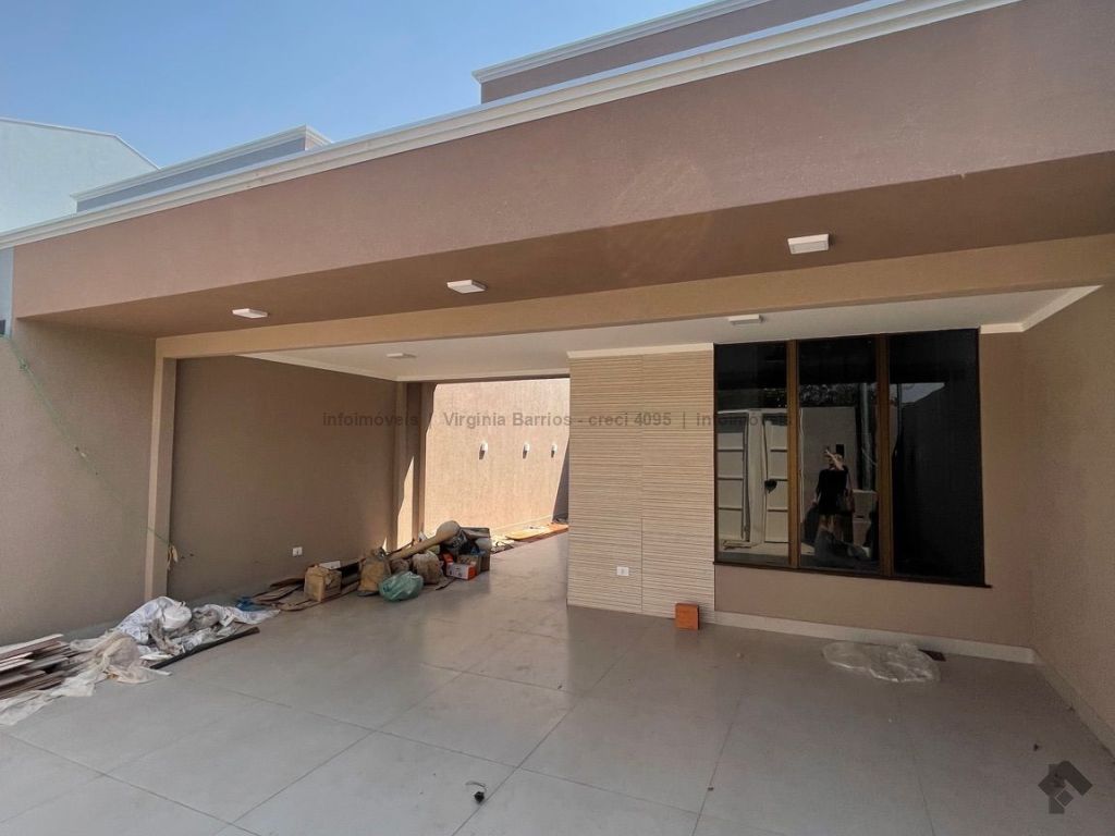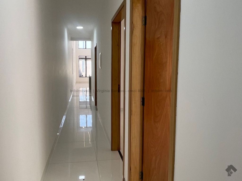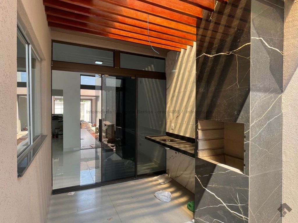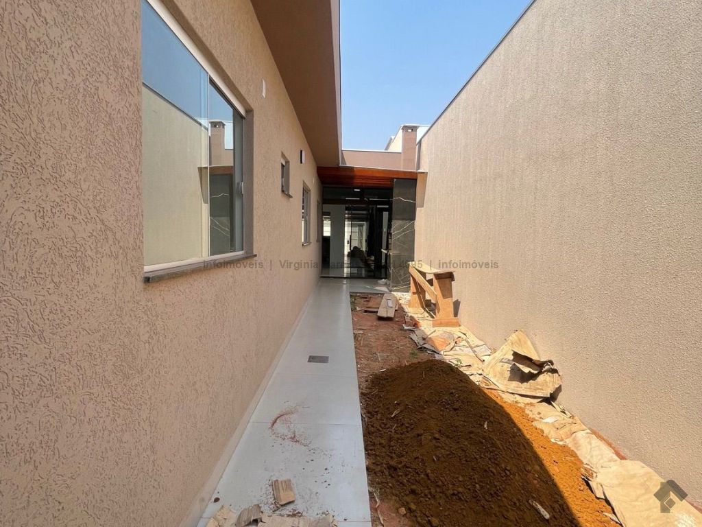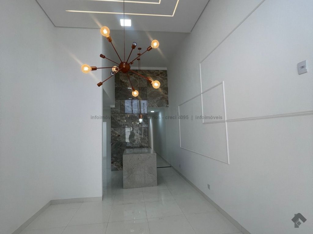 Belíssima casa térrea, com pé direito duplo na sala, ampla cozinha com acesso à churrasqueira, 2 suítes + 1 quarto, banheiro social, área de serviço, garagem para 3 veículos, projeto de iluminação encantador e fachada moderna.