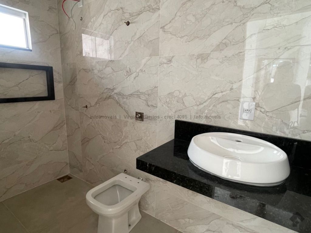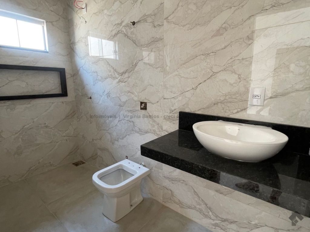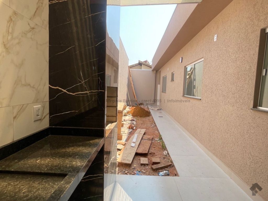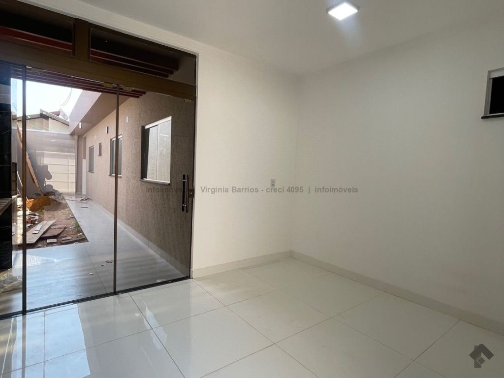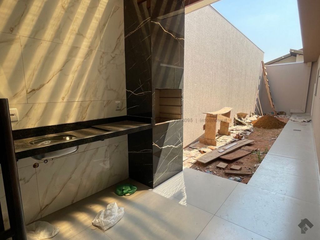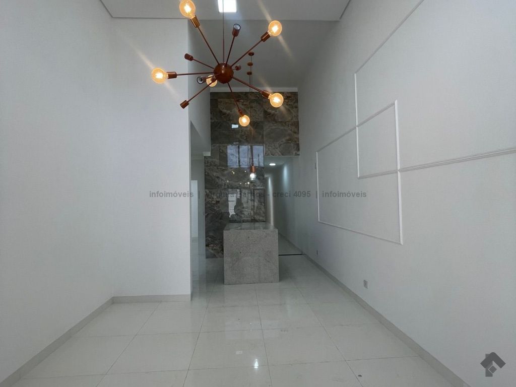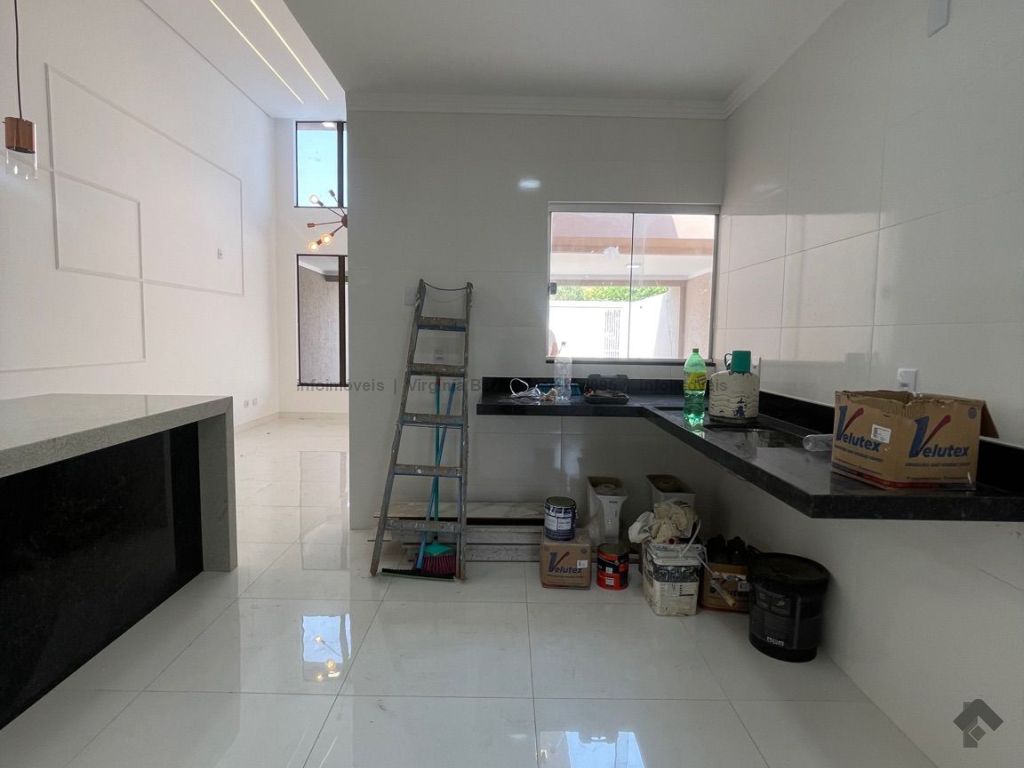 Belíssima casa térrea, com pé direito duplo na sala, ampla cozinha com acesso à churrasqueira, 2 suítes + 1 quarto, banheiro social, área de serviço, garagem para 3 veículos, projeto de iluminação encantador e fachada moderna.