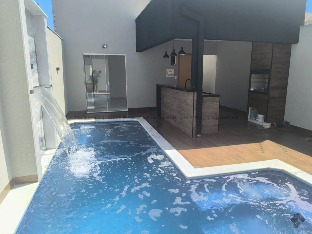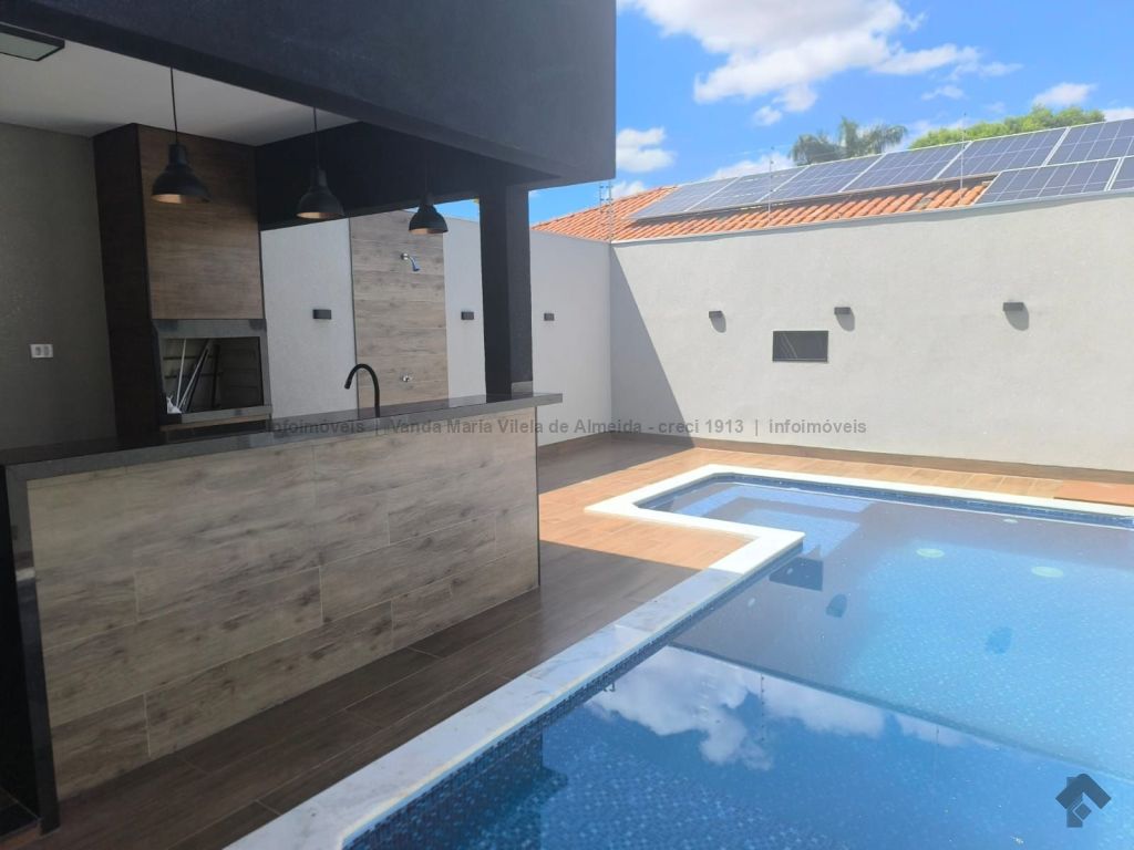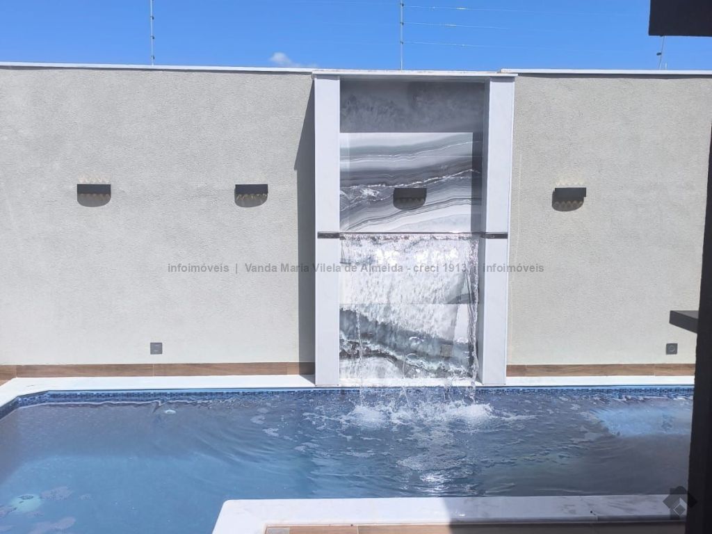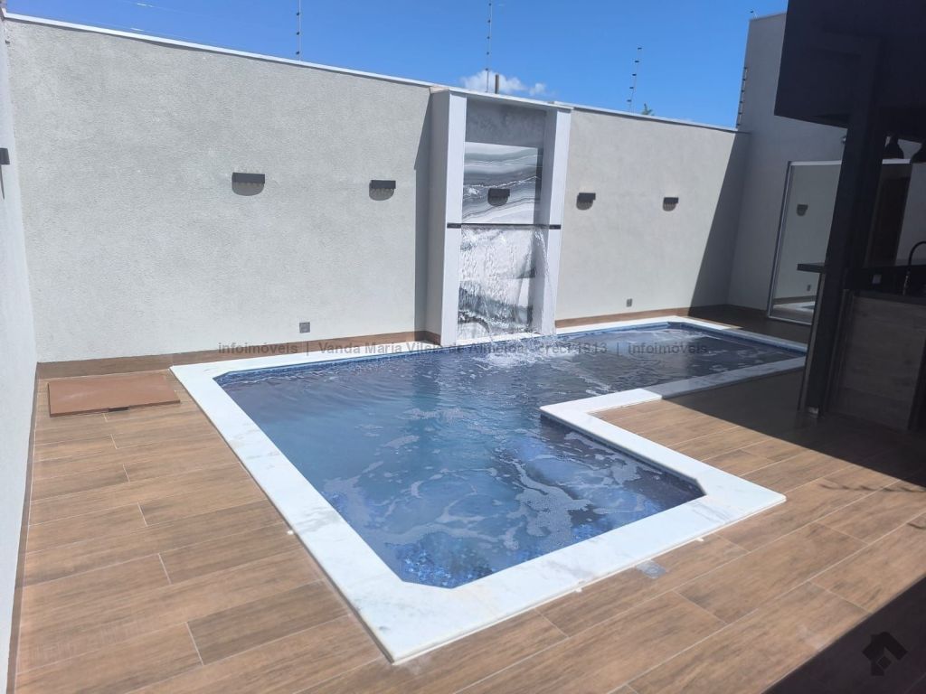Casa de alto padrão no bairro Santo Antônio, contendo três suítes, sala, cozinha, garagem, área gourmet e piscina com prainha, além de furo, com acabamento de primeira.