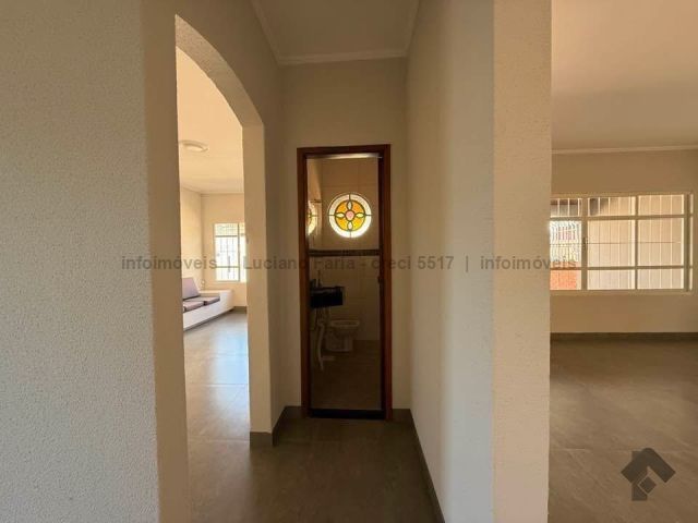 3 salas amplas com duas entradas independentes, lavabo, cozinha e 4 quartos (sendo 1 suíte) com armários e banheiro social. Cômodos amplos e bem distribuídos. Possui amplo espaço bem aproveitado nos fundos com piscina e churrasqueira coberta para receber seus amigos durante os finais de semana e 1 ambiente reversível com banheiro exclusivo para a área de lazer. Com 2 vagas de garagem e espaço para estacionamento interno para 4 carros.