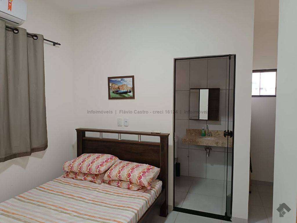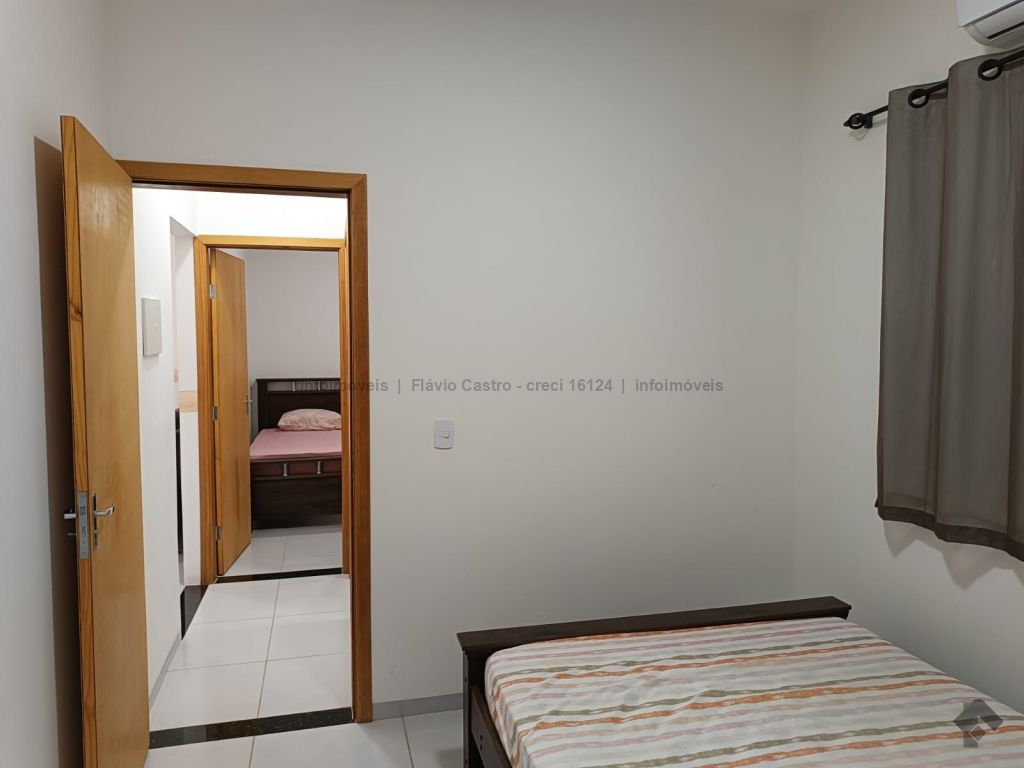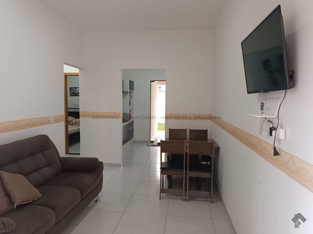 Dimensões do terreno de 7,50 x 17,50 m, área total de 131,25 m². Área total construída de 64,50 m², contendo sala, cozinha, uma suíte, banheiro social, hall de entrada, garagem aberta e área de serviço. Incluso toda a mobília da casa, sendo ar-condicionado nos quartos, cama, mesa, cozinha completa e armários nos banheiros, além dos utensílios domésticos.