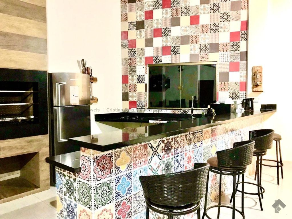 Casa no Solar dos Lagos I, 5 suítes espaçosas, piscina perfeita para os dias de sol, área gourmet completa com churrasqueira e fogão a lenha, ideal para receber amigos e família.