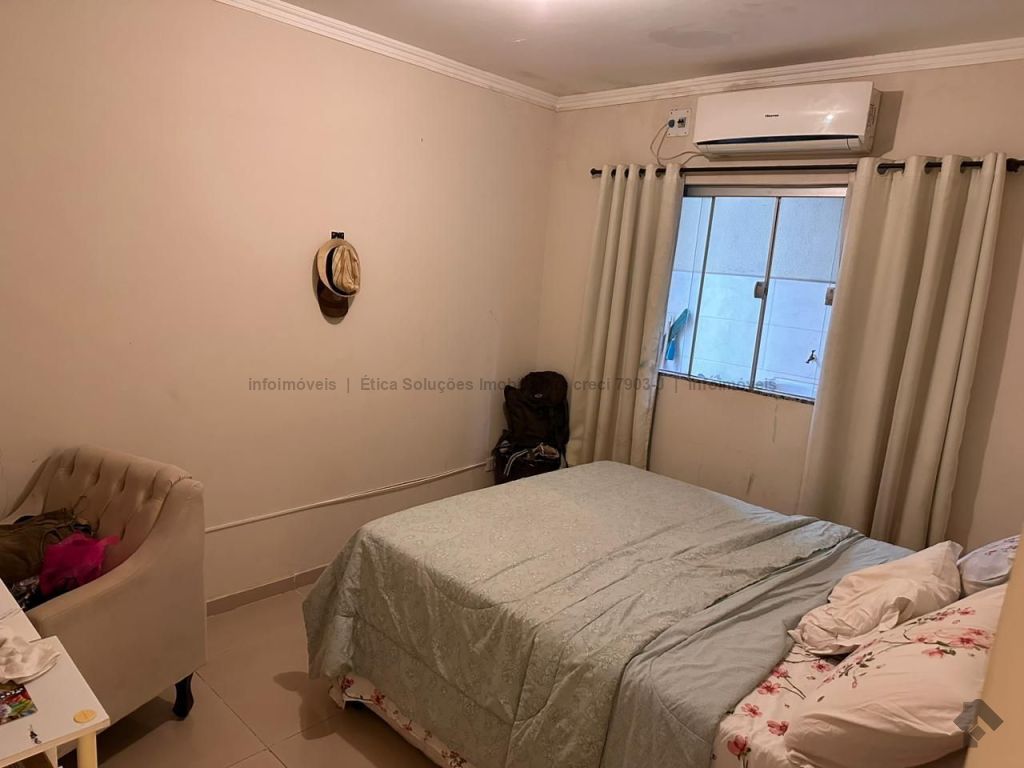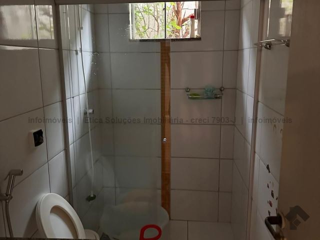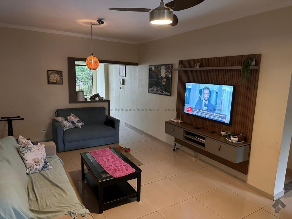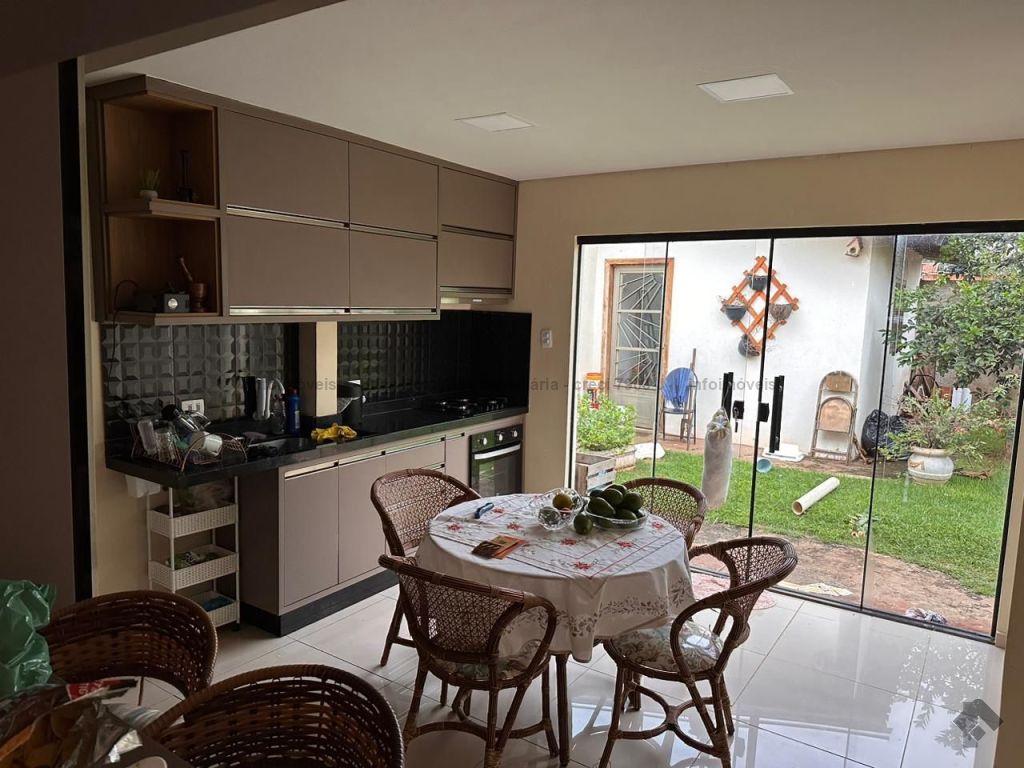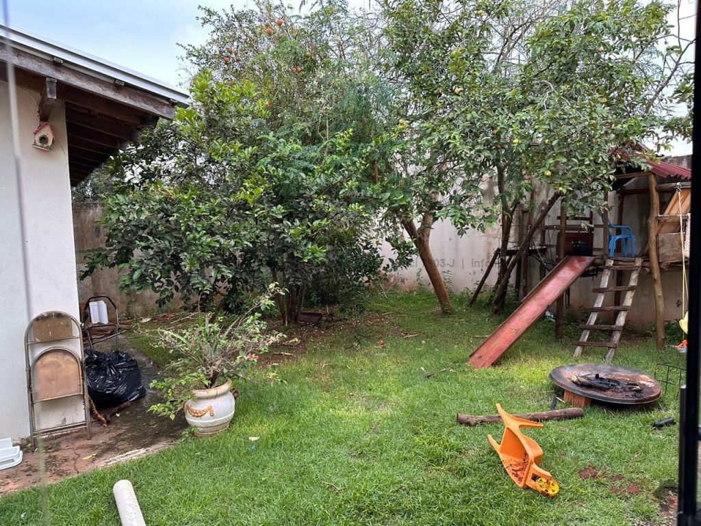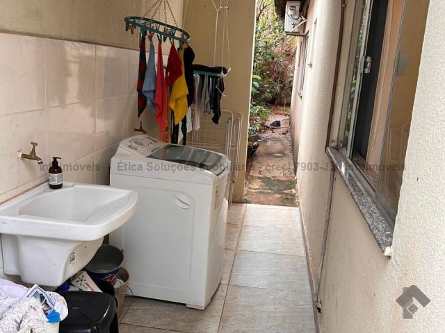 Casa térrea com 3 quartos sendo uma suíte, banheiro social e sala de estar/jantar, cozinha americana, varanda, quintal, lavanderia, quarto/depósito.