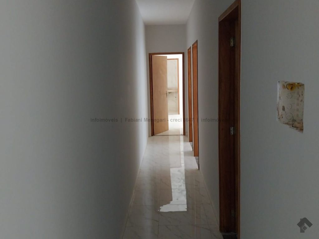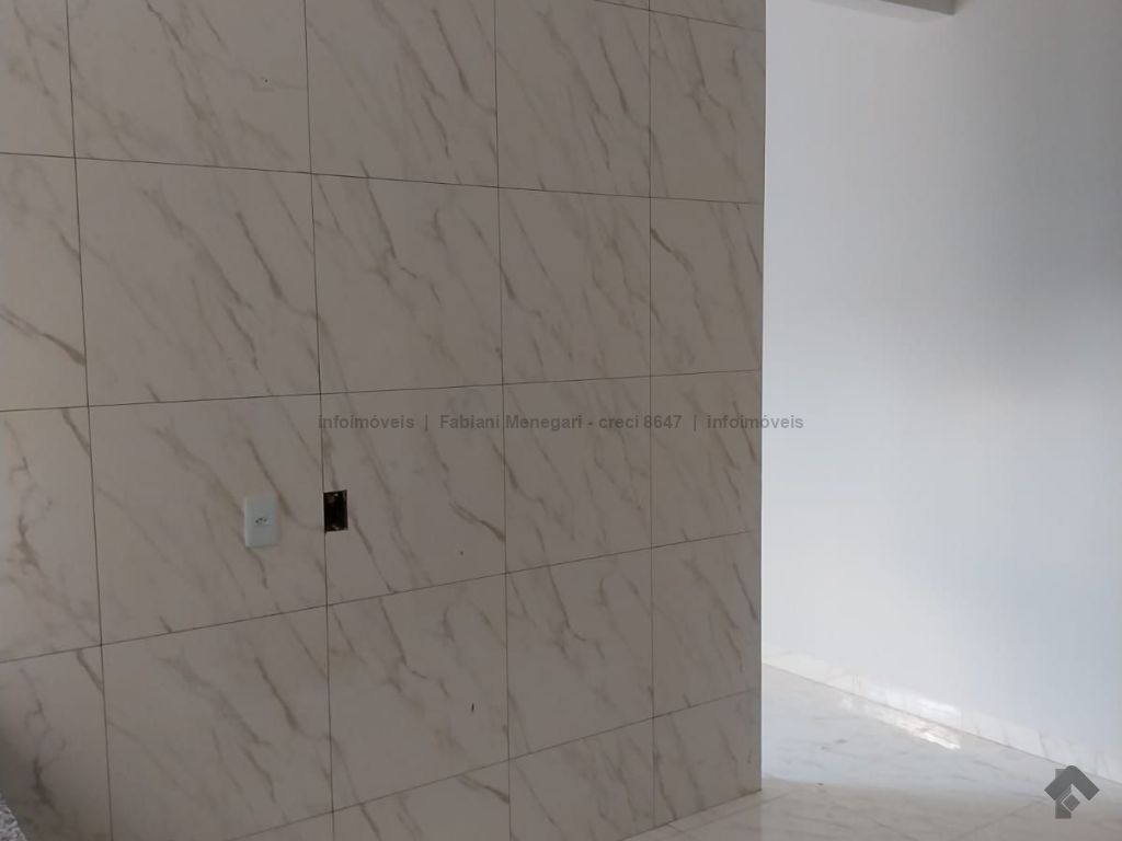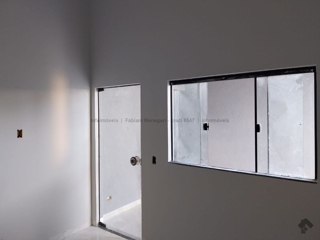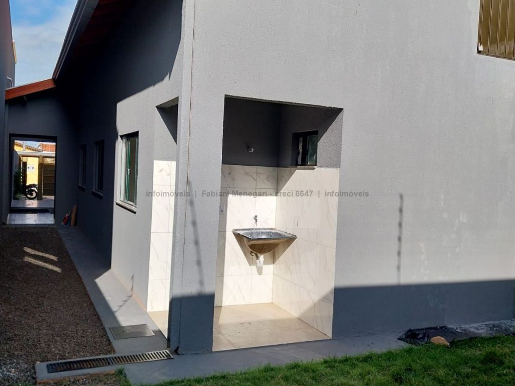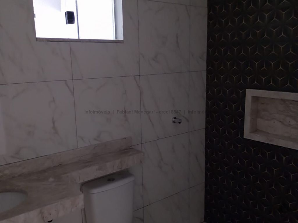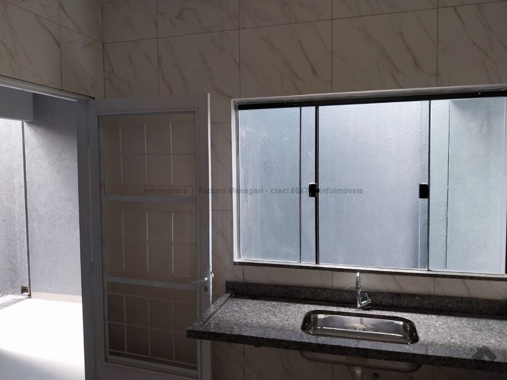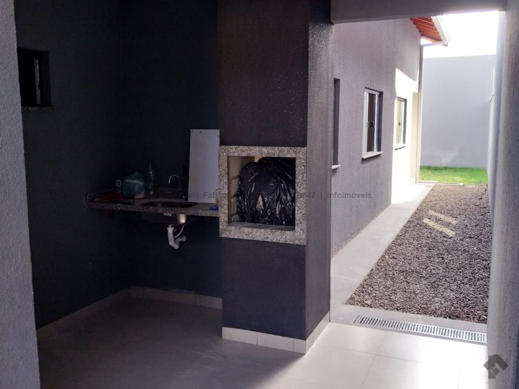 Espaço para 2 a 3 carros, dependendo do tamanho, sala com pé direito alto, cozinha toda revestida com saída para o espaço gourmet, banheiro social, 3 quartos sendo 1 suíte, lavanderia nos fundos, bom espaço nos fundos, calçada interna até a garagem no piso, revestimento em 3D na fachada externa, 180 m² de área total, 90 m² de área construída.