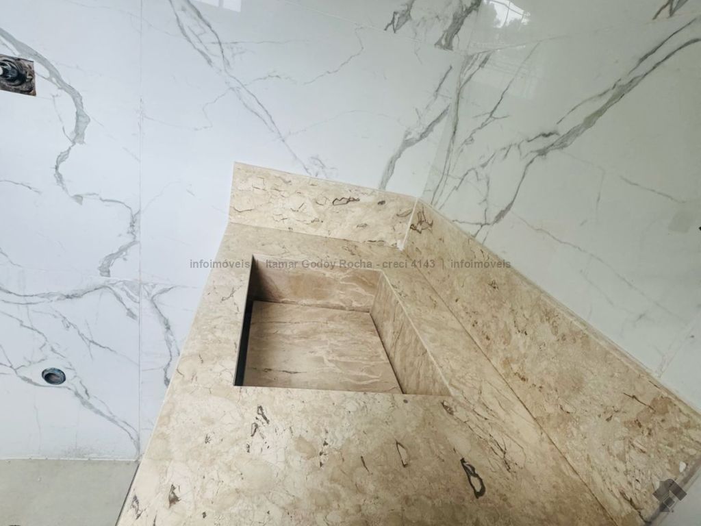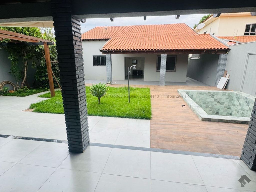 Imóvel todo em porcelanato, com 2 suítes, 2 quartos, sala de tv, sala de jantar, cozinha rica em mármore com ilha, banheiro social, piscina, jardim com iluminação e arvore frutífera, pergolado, churrasqueira, pia e balcão em mármore na área gourmet, banheiro externo, quarto na edícula, area de serviço coberta, garagem para 2 carros, corredor dos 2 lados da casa.