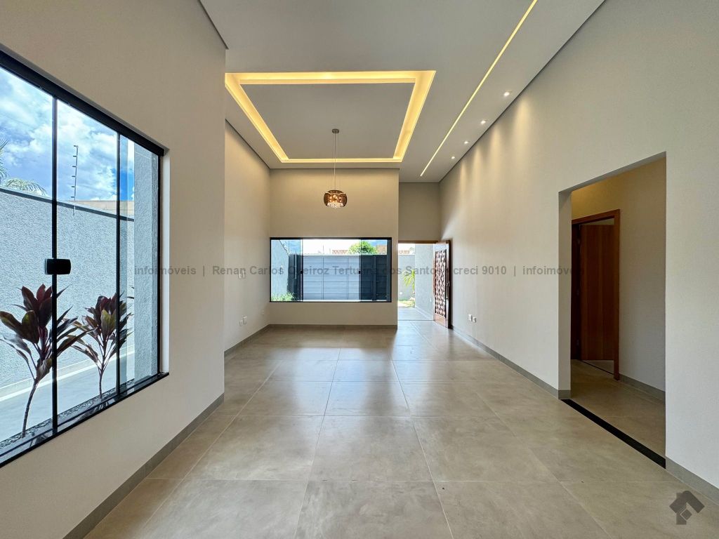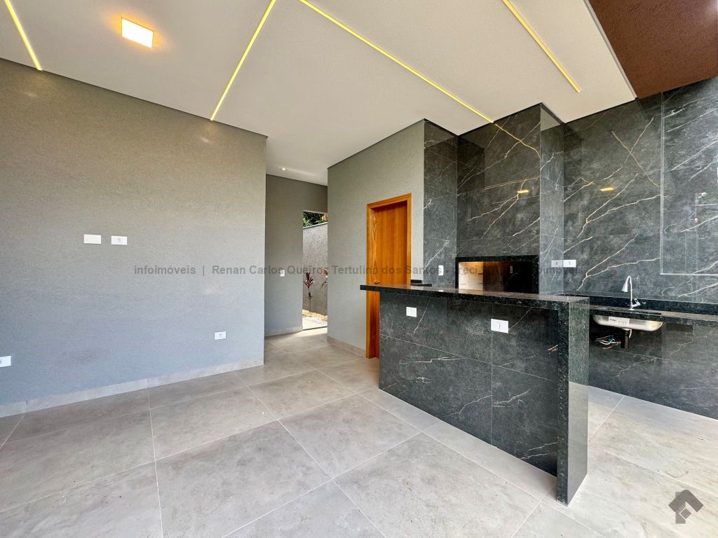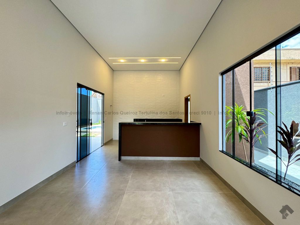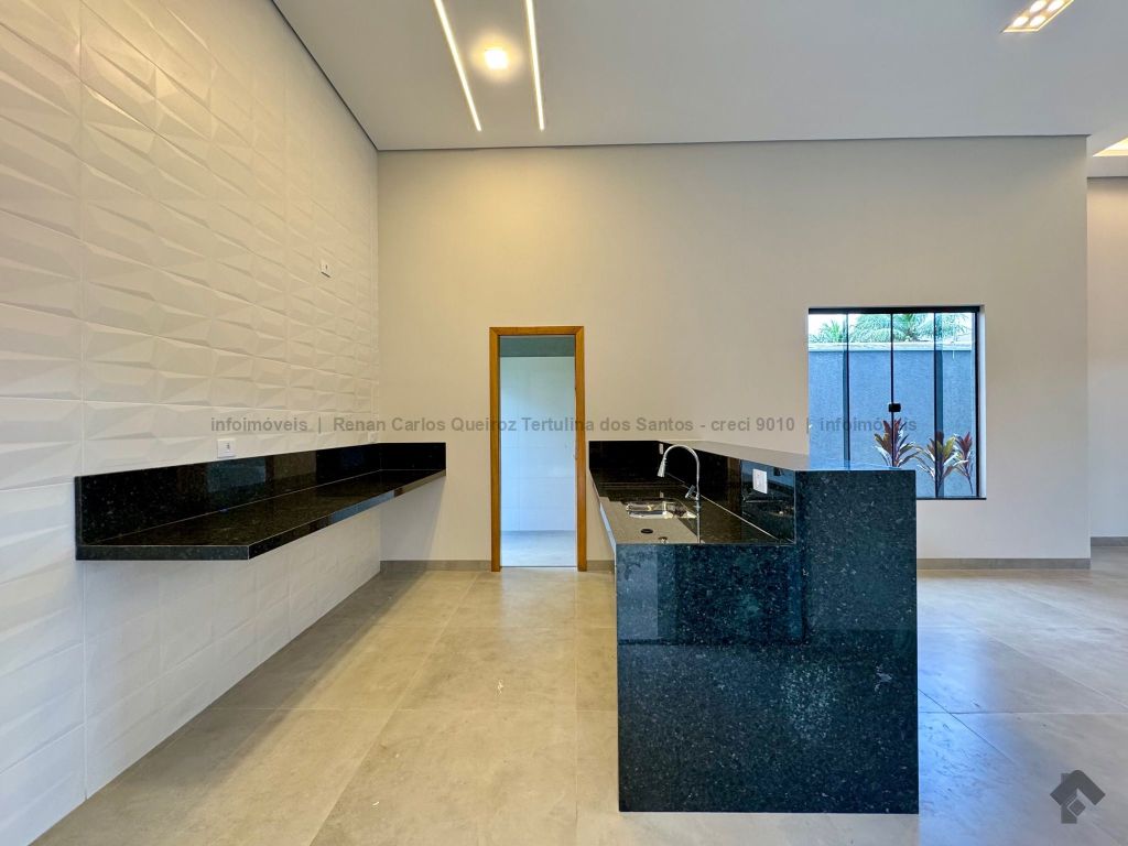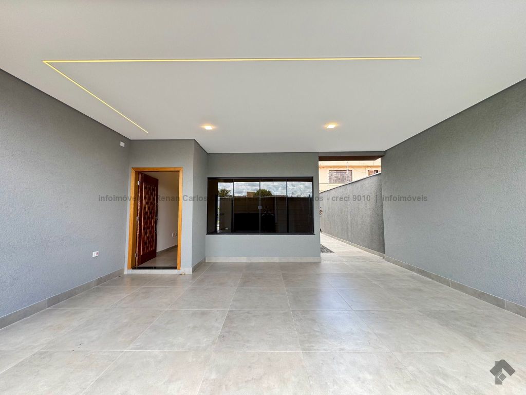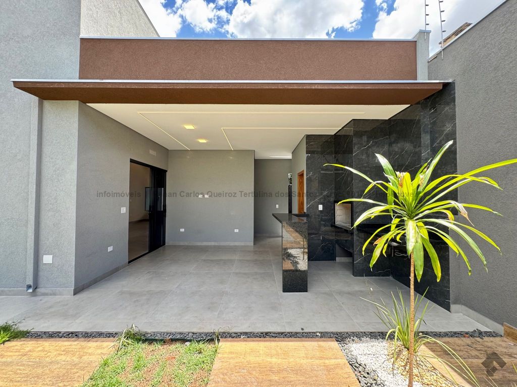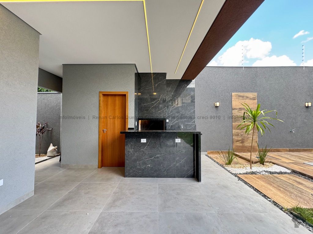 Casa moderna e sofisticada, fachada imponente com volumetria alta. Sala com dois ambientes, pé direito elevado, cozinha, área de serviço. Uma suíte com closet, dois quartos, um banheiro. Varanda gourmet com lavabo. Quintal amplo, piscina com prainha, hidromassagem. Projeto de iluminação e paisagismo, garagem ampla.