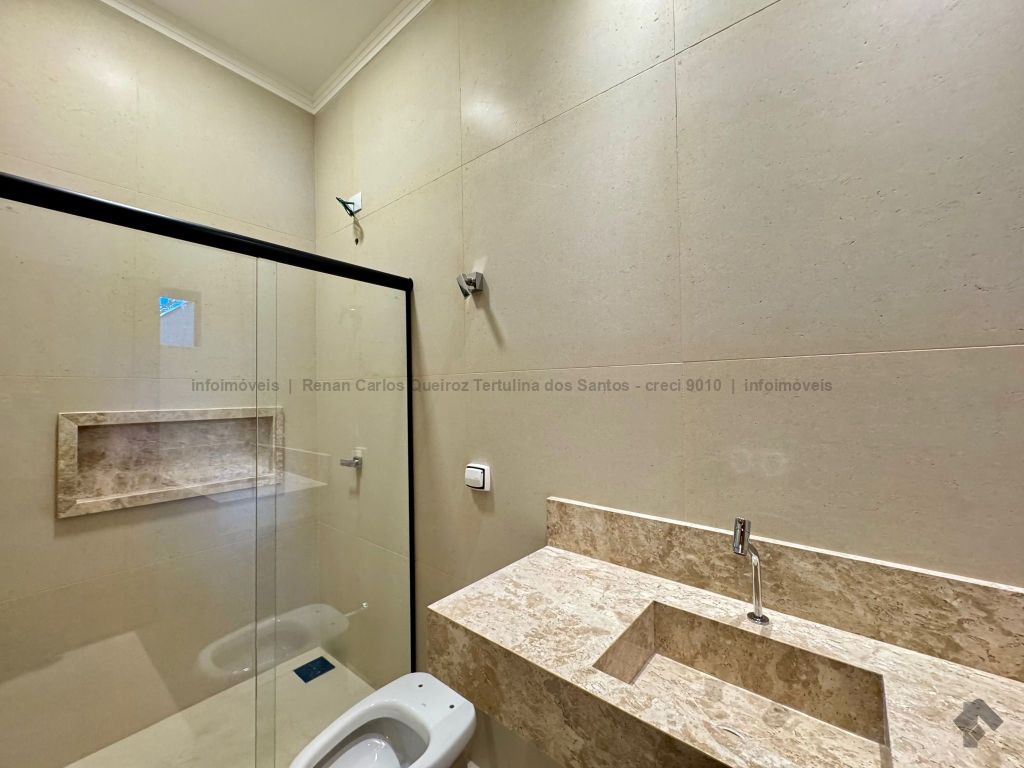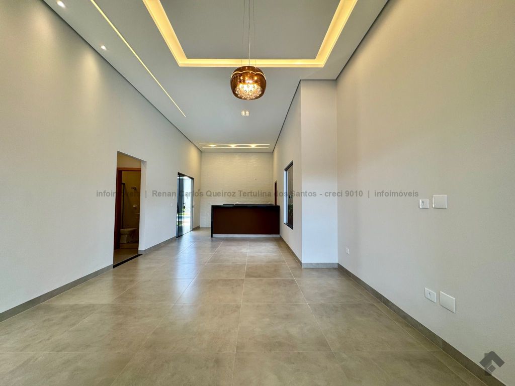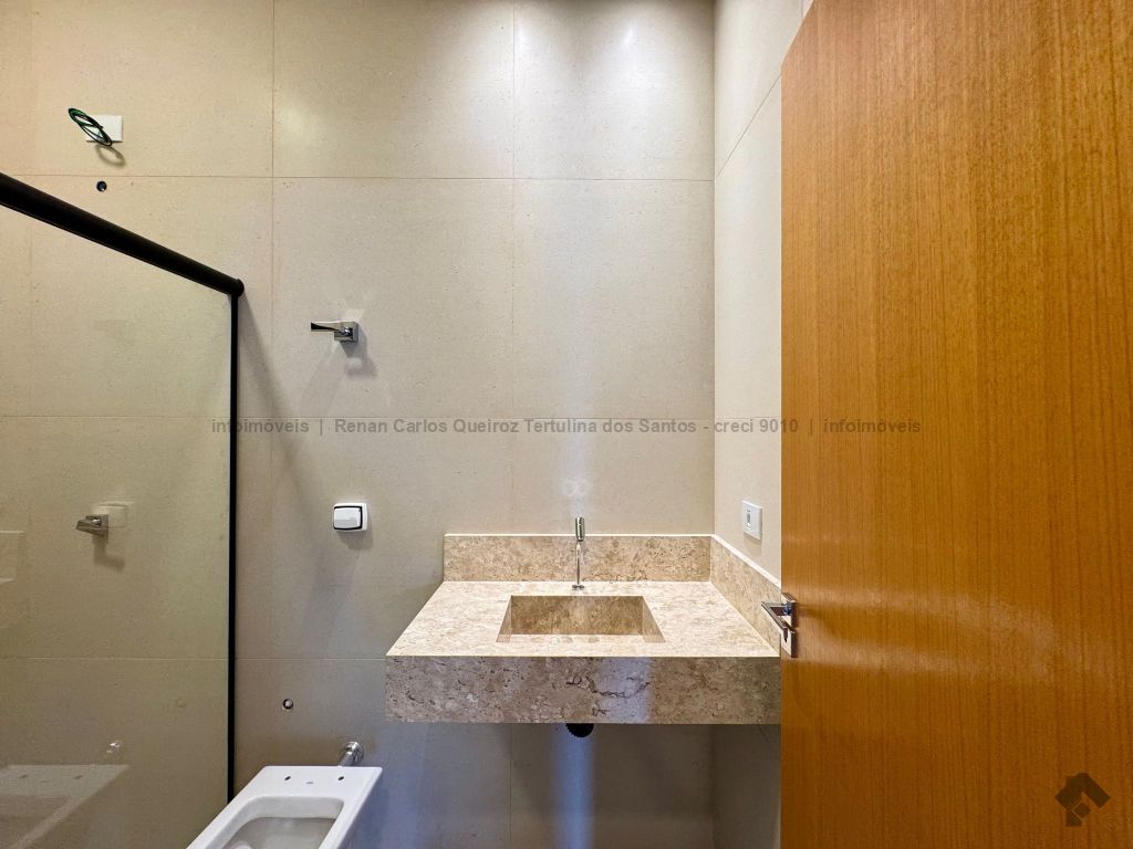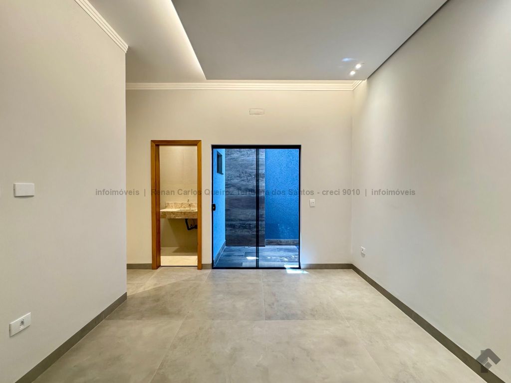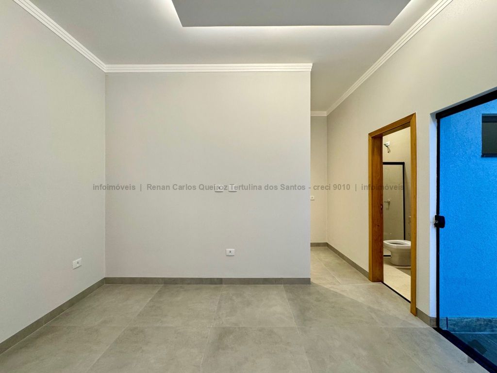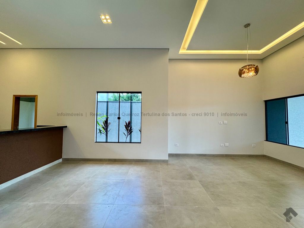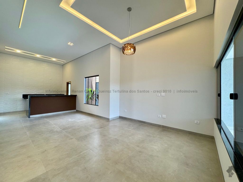 Casa moderna e sofisticada, fachada imponente com volumetria alta. Sala com dois ambientes, pé direito elevado, cozinha, área de serviço. Uma suíte com closet, dois quartos, um banheiro. Varanda gourmet com lavabo. Quintal amplo, piscina com prainha, hidromassagem. Projeto de iluminação e paisagismo, garagem ampla.