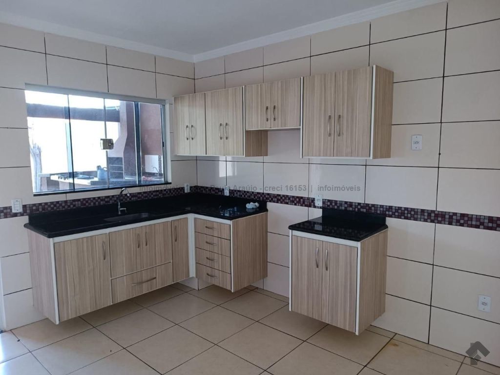 Sala, cozinha com armário, 2 quartos, 1 suíte, WC social, área de serviço, churrasqueira, garagem coberta para 3 carros. Ampla área verde e aconchegante.