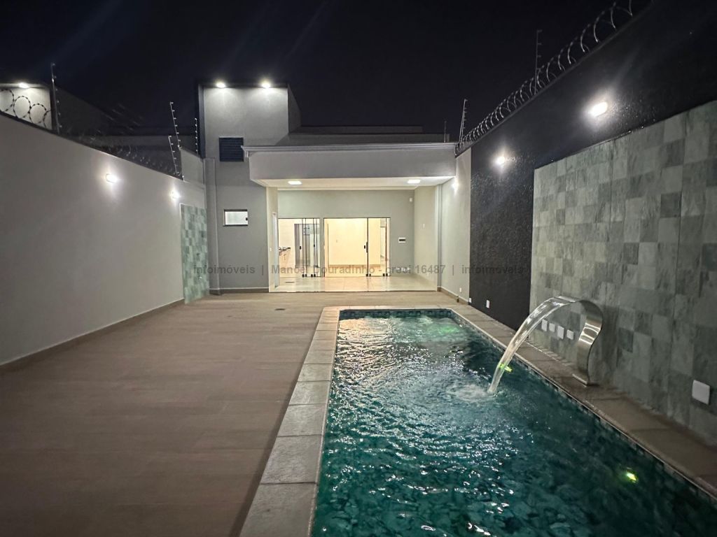 Imóvel novo com excelente acabamento, portão de elevação, garagem para dois veículos, piscina moderna e ótima localização no bairro.