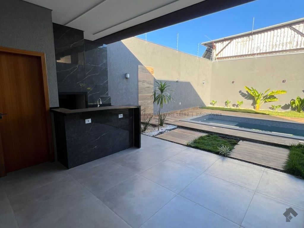 Casa térrea com 1 suíte com closet, 2 quartos, banheiro social, cozinha integrada com 2 salas de ambientes, churrasqueira, lavabo no gourmet e piscina. Casa com muito espaço. Uma varanda espaçosa e um lindo paisagismo.