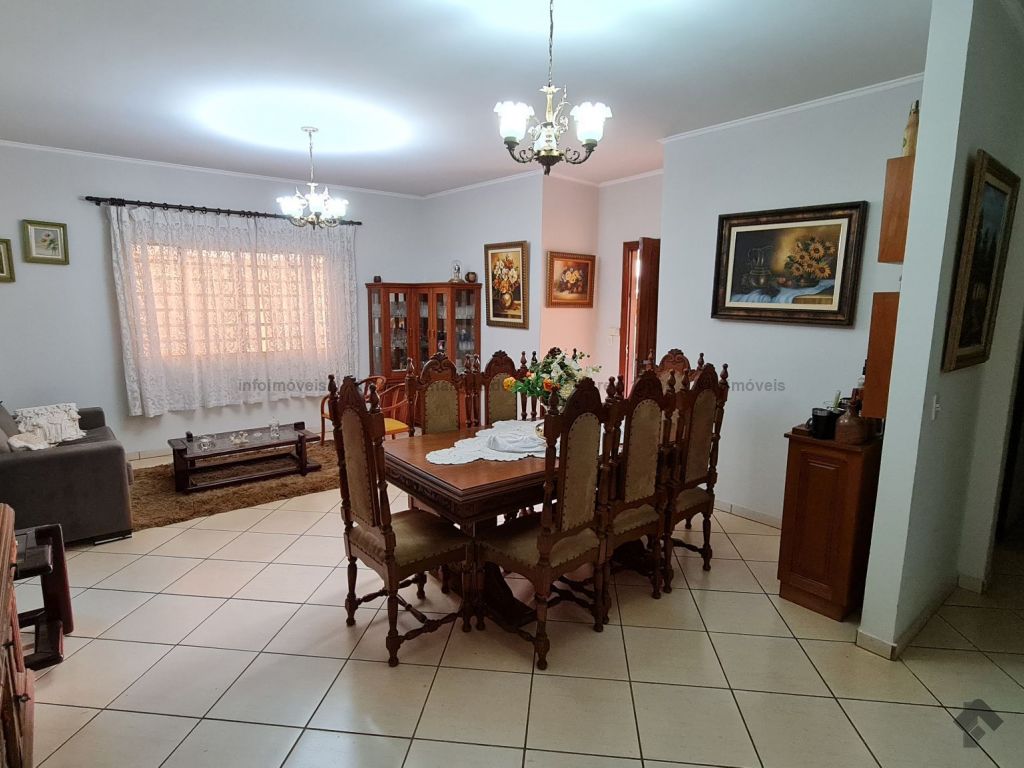 Casa térrea ampla com 300m² de construção e terreno de 12x50m = 600m². Possui garagem coberta para até 4 carros, sala 2 ambientes, sala de tv, 5 dormitórios, sendo 2 suítes, 2 banheiros, cozinha com armários planejados, lavanderia com espaço reservado, varanda gourmet com cozinha auxiliar e churrasqueira, piscina e quintal.