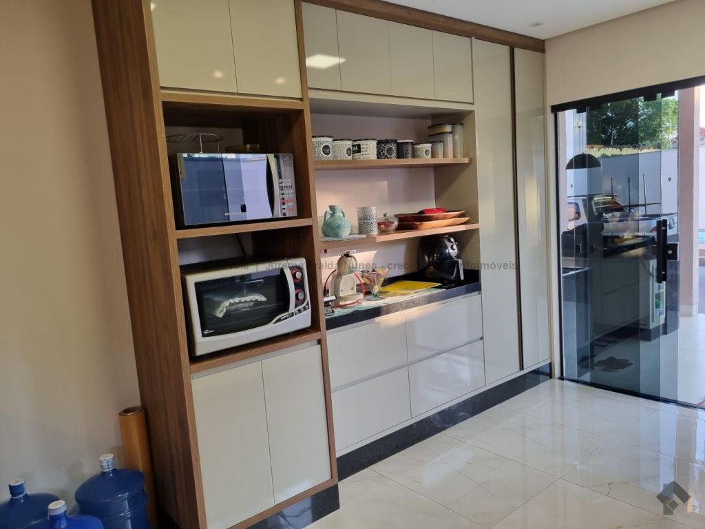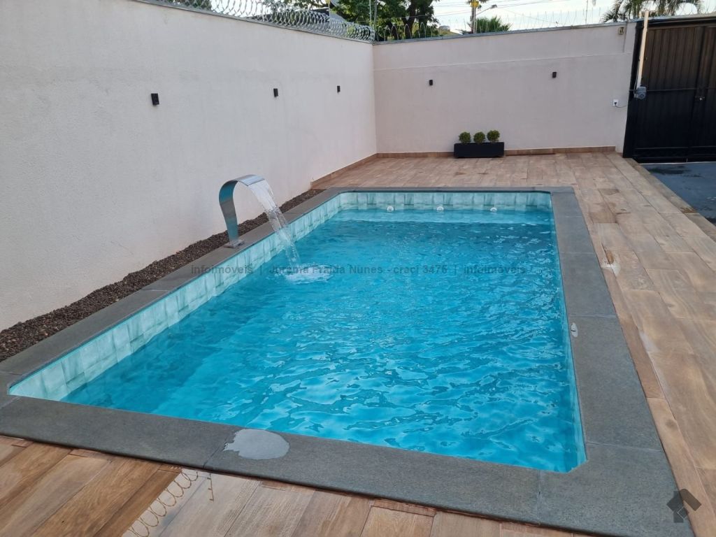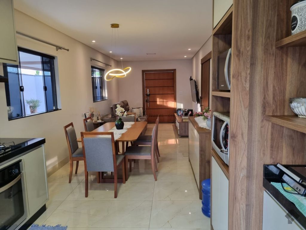 Belíssima casa, com três quartos sendo uma suíte com closet, sala dois ambientes, cozinha planejada com fogão e forno, e espaço gourmet, piscina e garagem, acabamento de excelência.