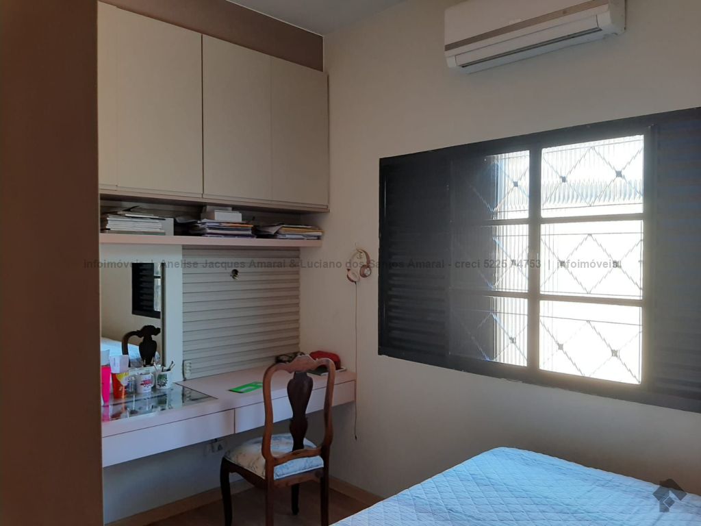 Casa repleta de armários, ar condicionado nos quartos. Com câmera de segurança e alarme. Suíte com closet e banheira de hidromassagem. Na parte dos fundos uma construção com cozinha, sala, WC e quarto independente da casa.