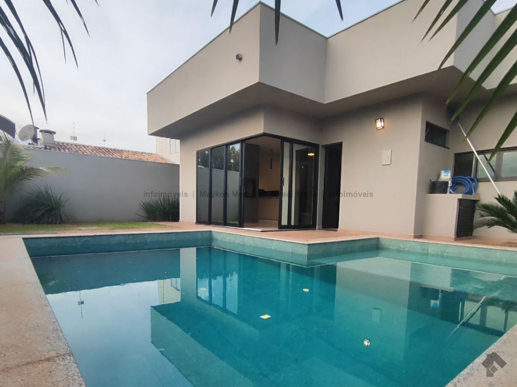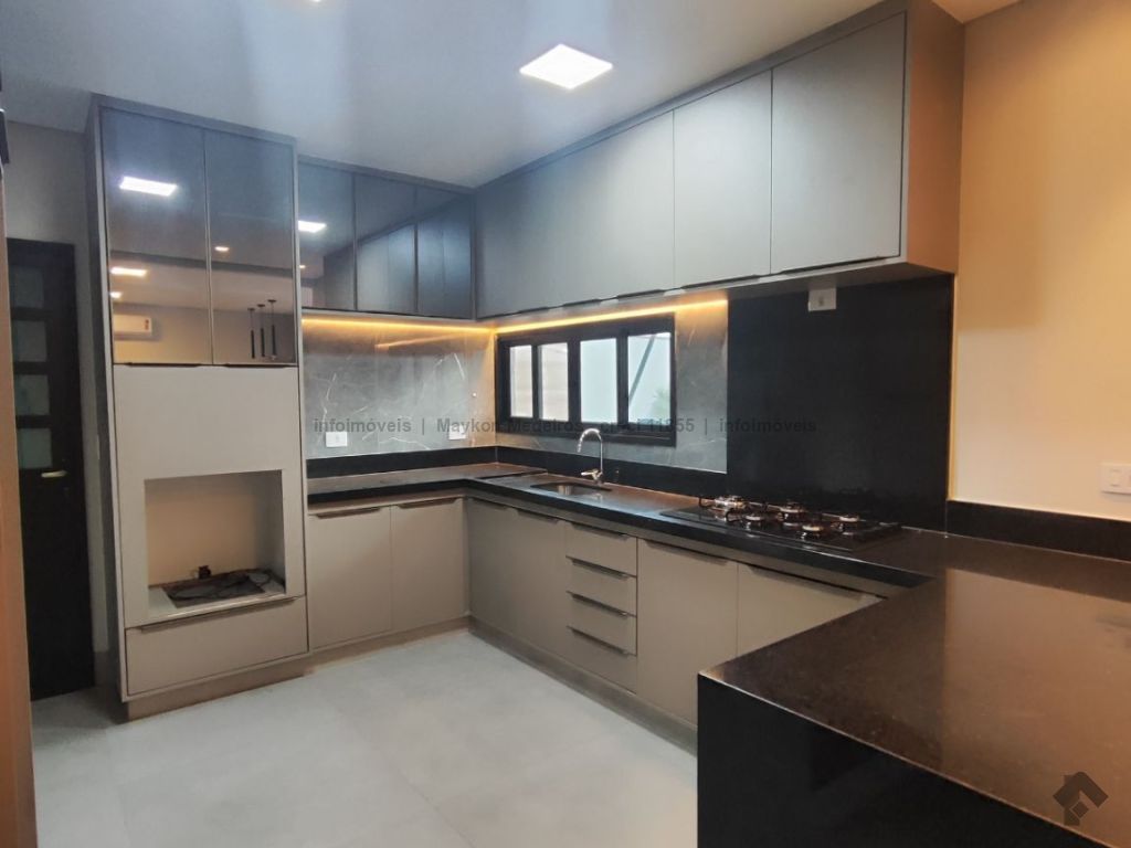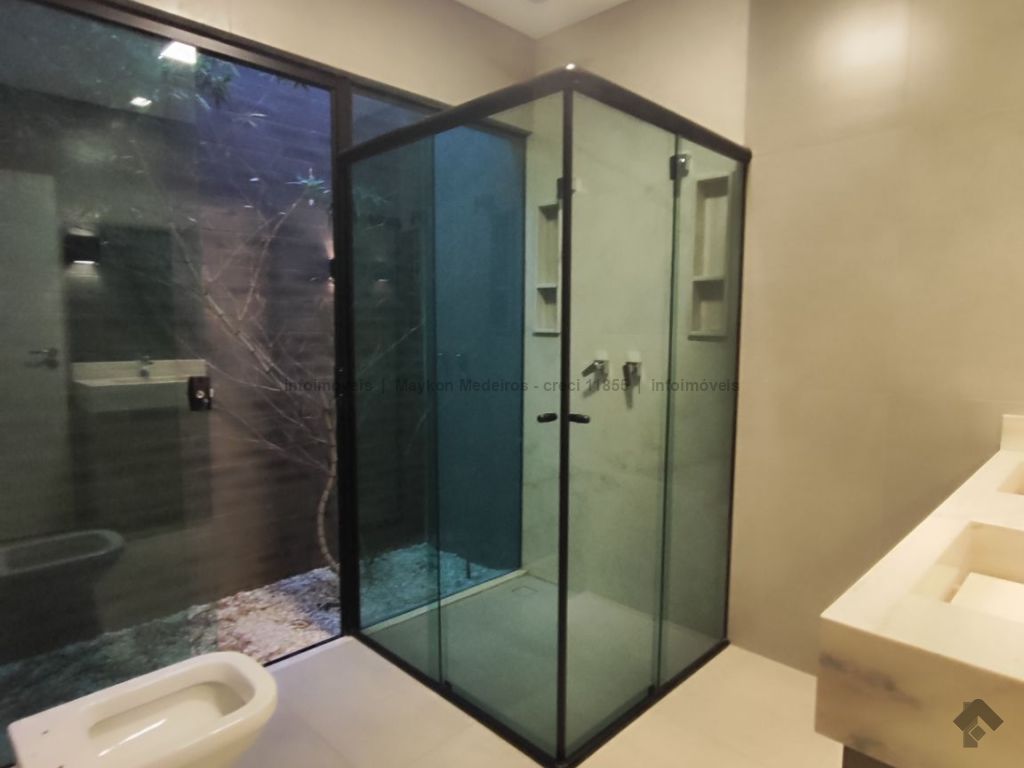 Casa arejada e com cômodos amplos e bem distribuídos. Vaga de garagem ampla para até 04 carros, rol de entrada com lavabo, sala de estar ampla com pé direito alto climatizada, cozinha gourmet com armários, churrasqueira, despensa climatizada, área de serviço coberta e reservada com armário, piscina com hidromassagem e cascata. Suíte master com armários, banheiro com jardim interno e já climatizada. 02 suítes amplas já com armários e climatizadas.
