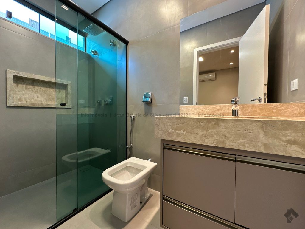 Esse imóvel conta com robustez na construção e detalhes modernos na arquitetura, garagem ampla para até quatro carros, sala ampla para dois ambientes já climatizada, são três suítes incluindo uma com closet e jardim de inverno no banheiro, todos os quartos com armários planejados, cozinha e área gourmet integrados também climatizados, despensa, área de serviço ampla com entrada pelo corredor, piscina aquecida, banheiro completo, já entregue com energia fotovoltaica.