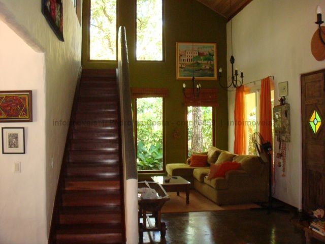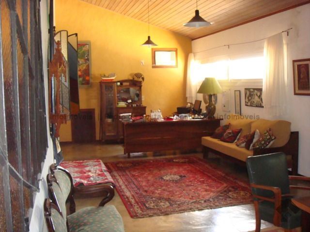 O total do terreno, 5.810,00 m². Área total construída é superior a 400m², sendo a casa uma unidade, a garagem com apartamento de caseiro conjugados, uma segunda unidade, essas duas unidades interligadas por uma ampla varanda privativa, mais uma unidade formada por ateliê (pintura, costura, etc) e quarto de máquinas, ferramentas e despejo. O conjunto das construções é de 488m² mais a piscina(+/-36m²), totalizando assim mais de 520m².