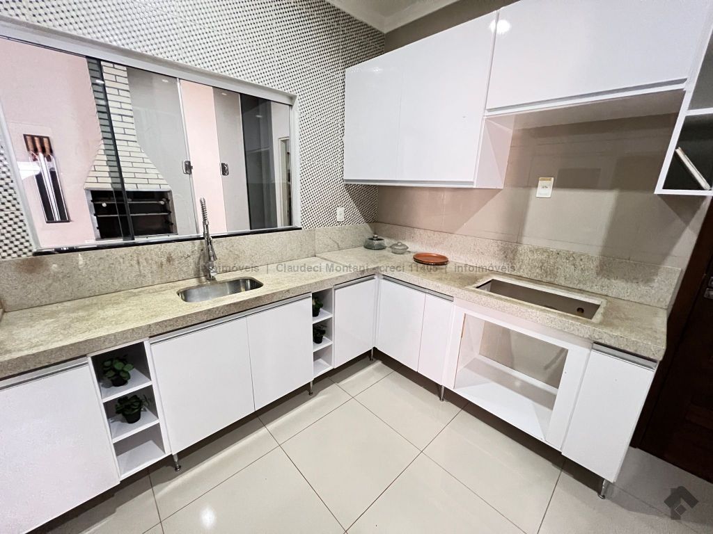Imóvel de alto padrão, casa rica em armários, portas em madeira maciça feitas sob encomenda, toda em porcelanato, aquecedor solar nos banheiros e torneiras da cozinha, pé direito de 3m, vaga de garagem: 3 carros. Torneira gourmet na cozinha.